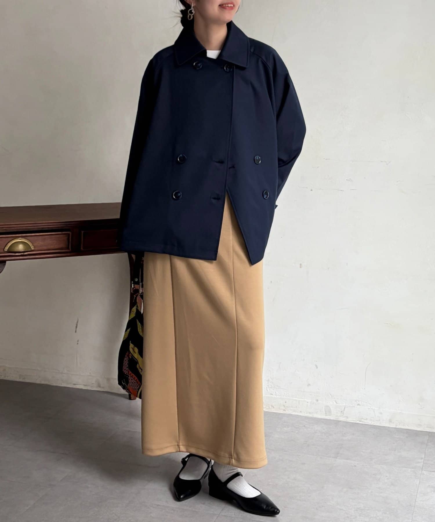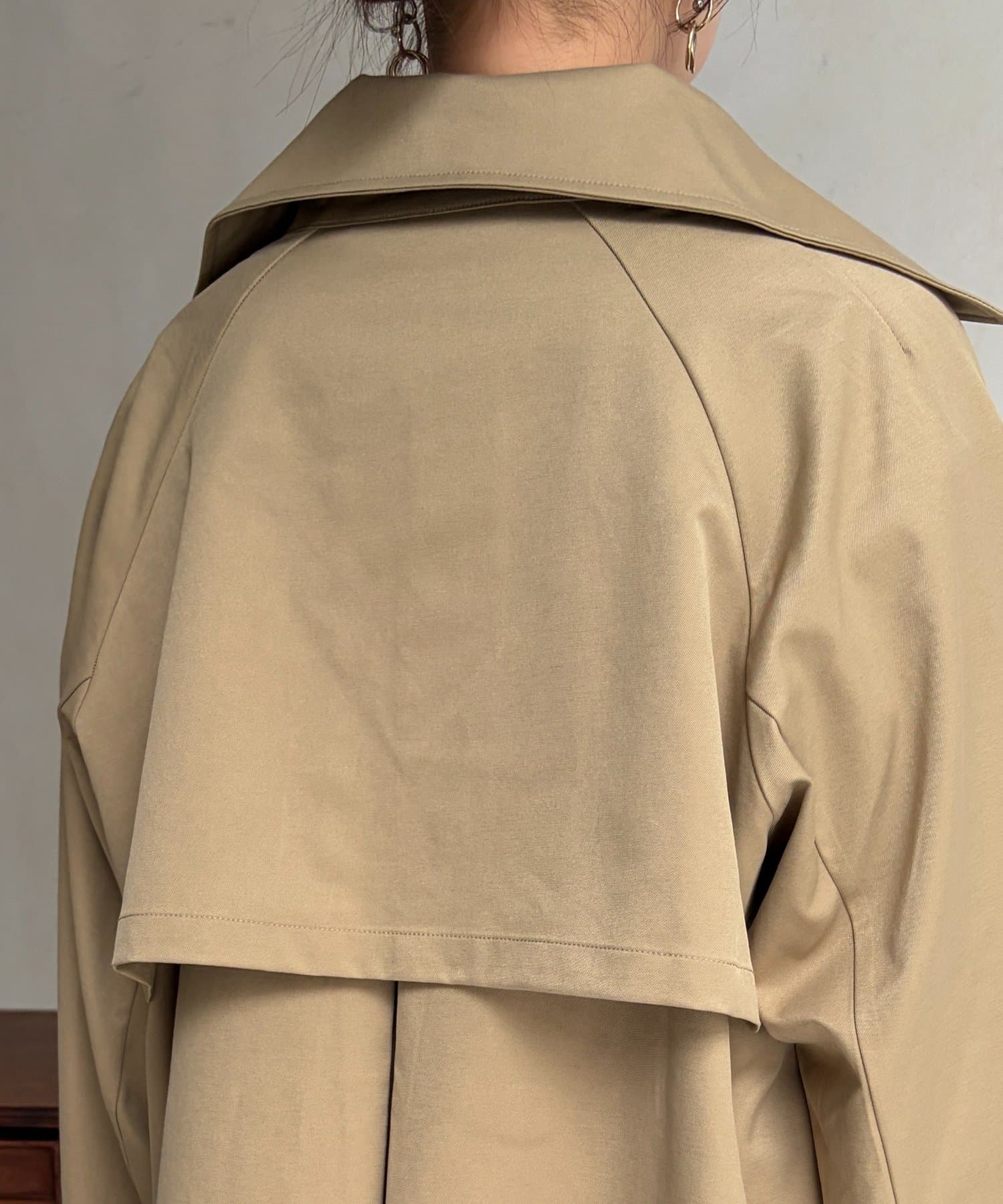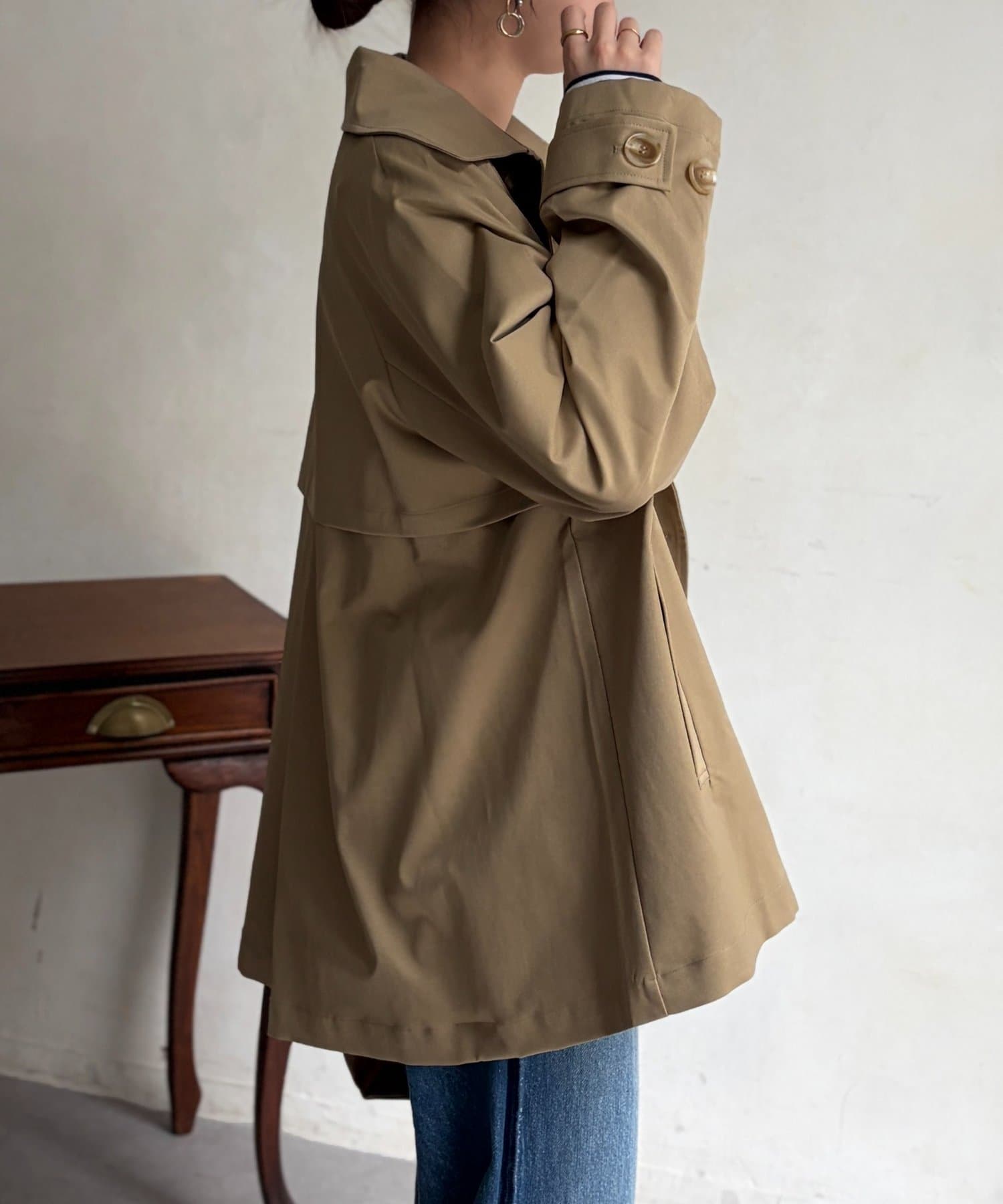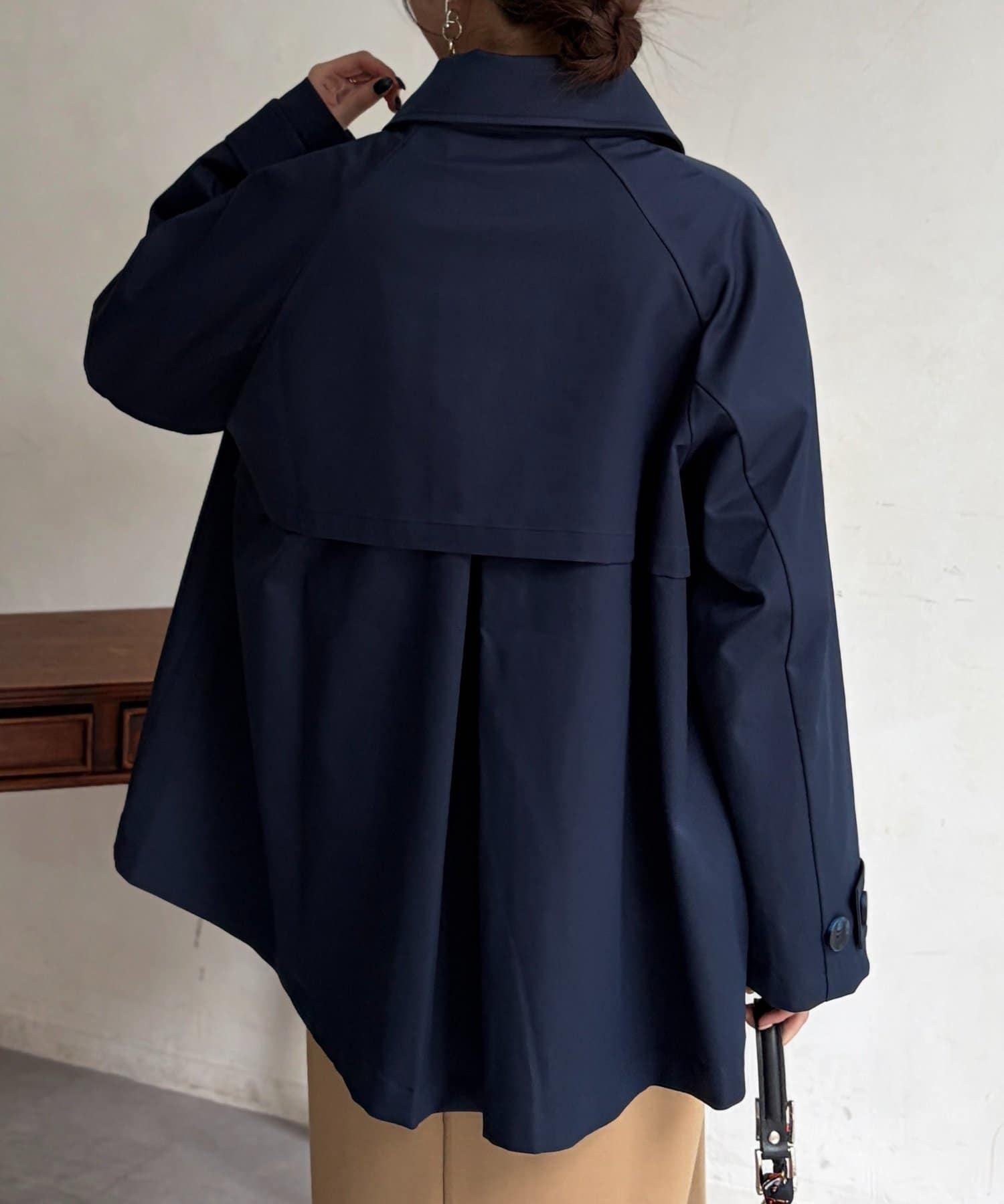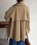 大きめカラーにゆったりシルエットのバックフレアラインコート。