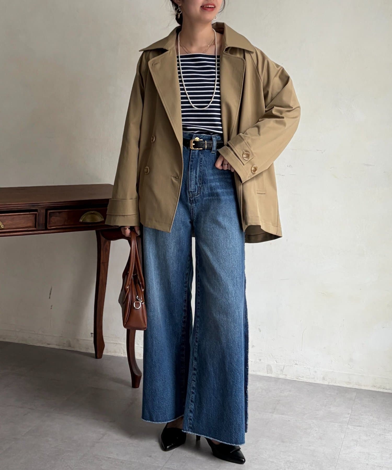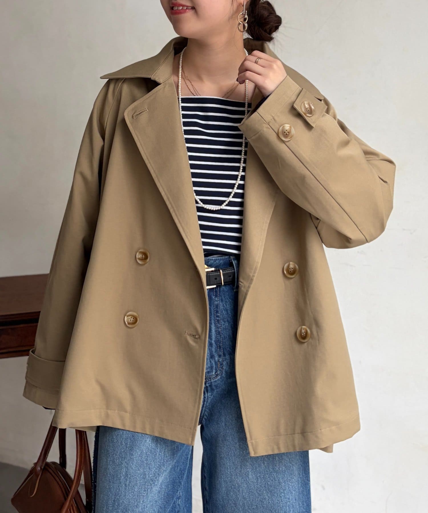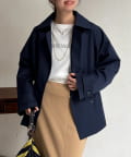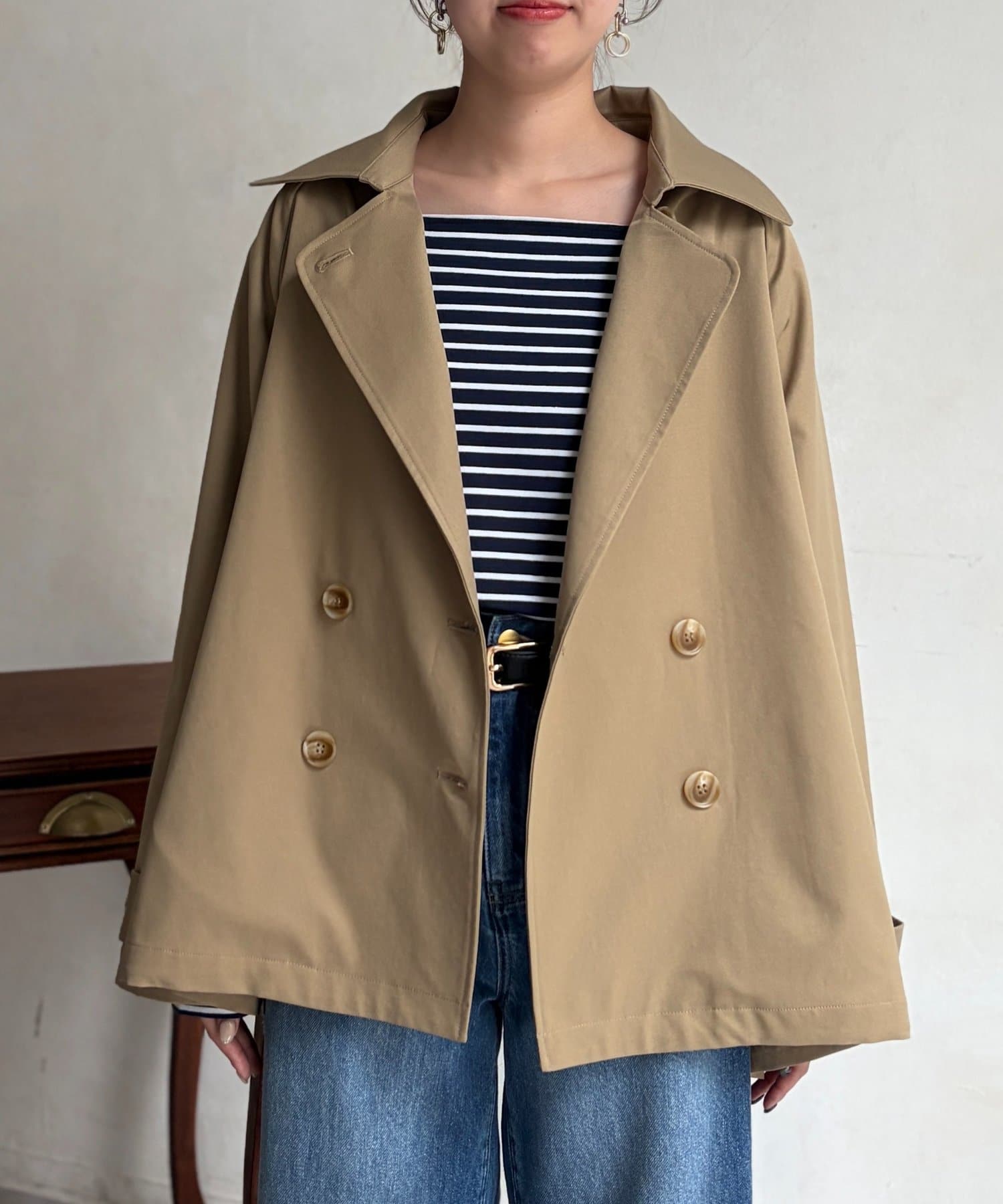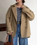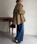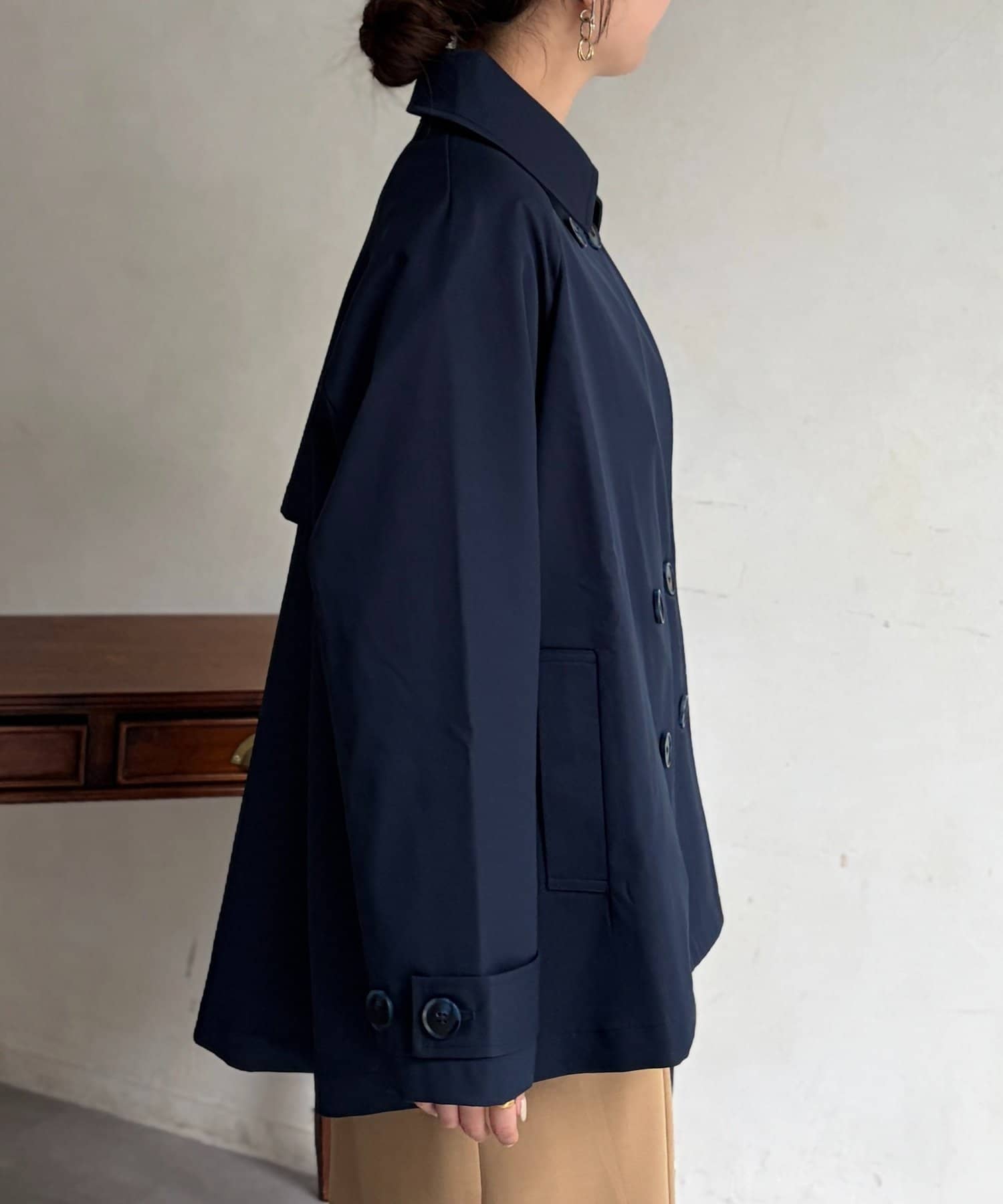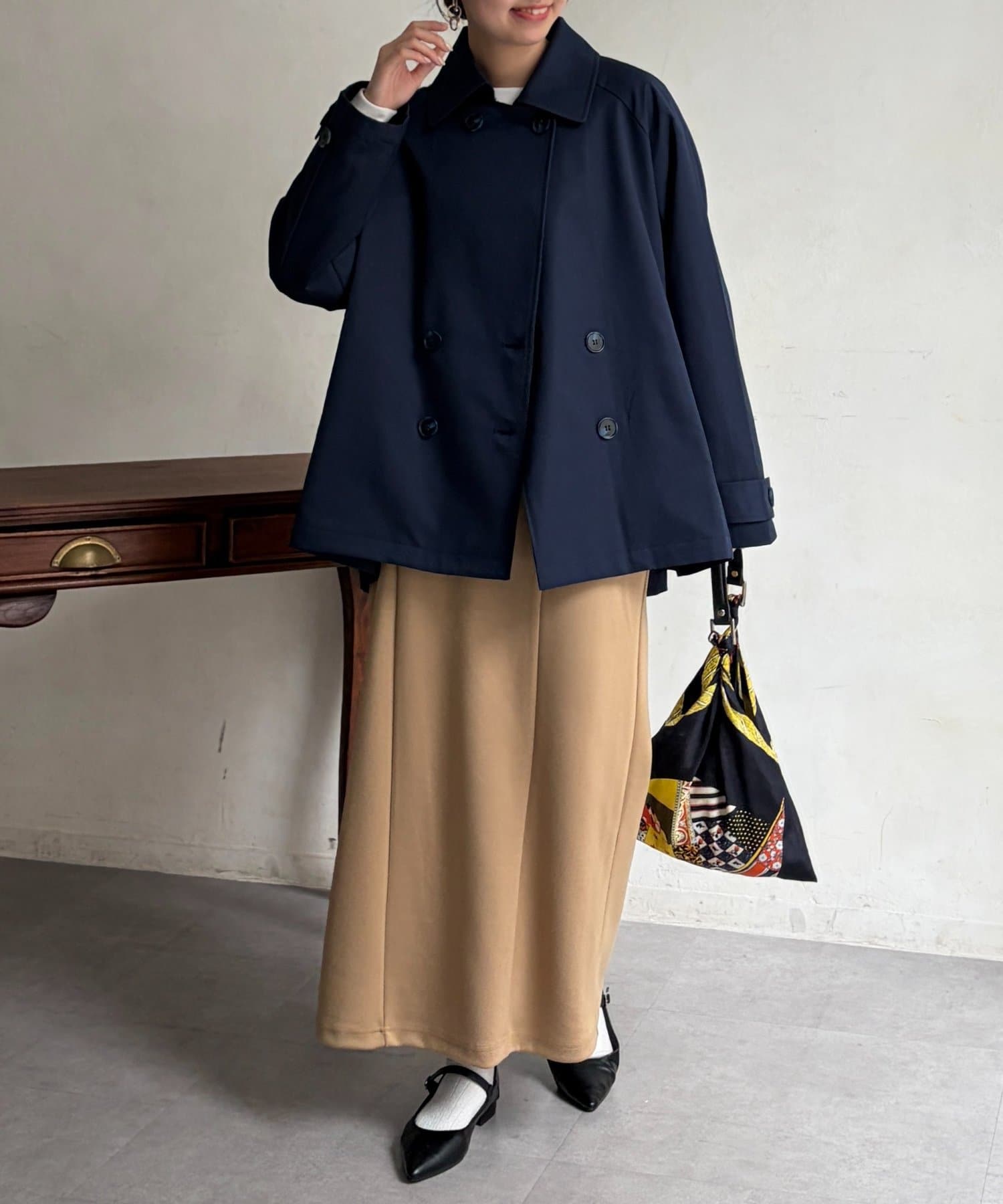 大きめカラーにゆったりシルエットのバックフレアラインコート。