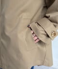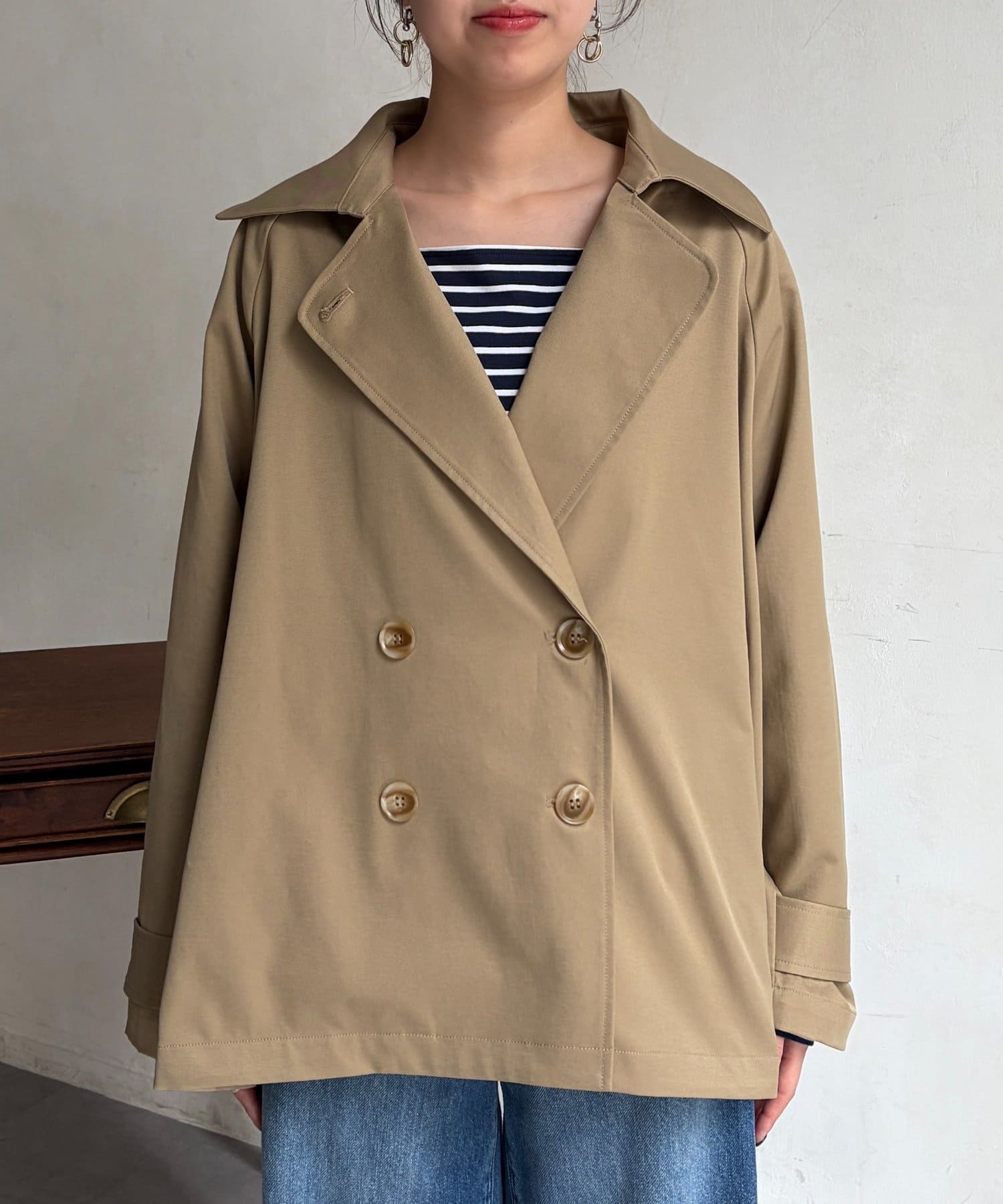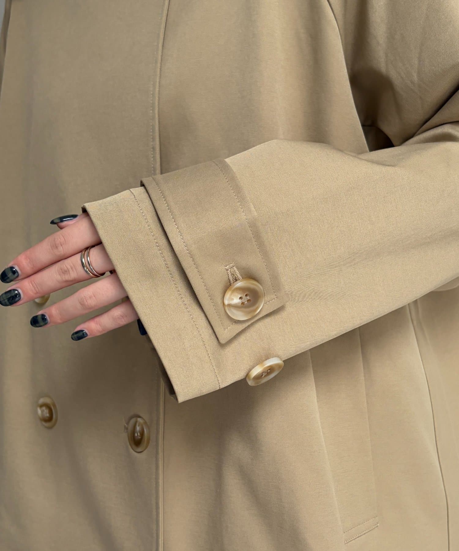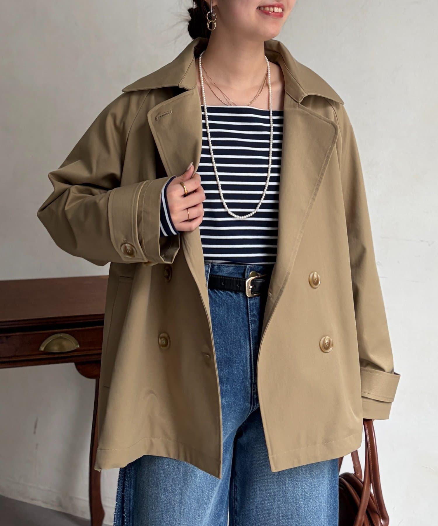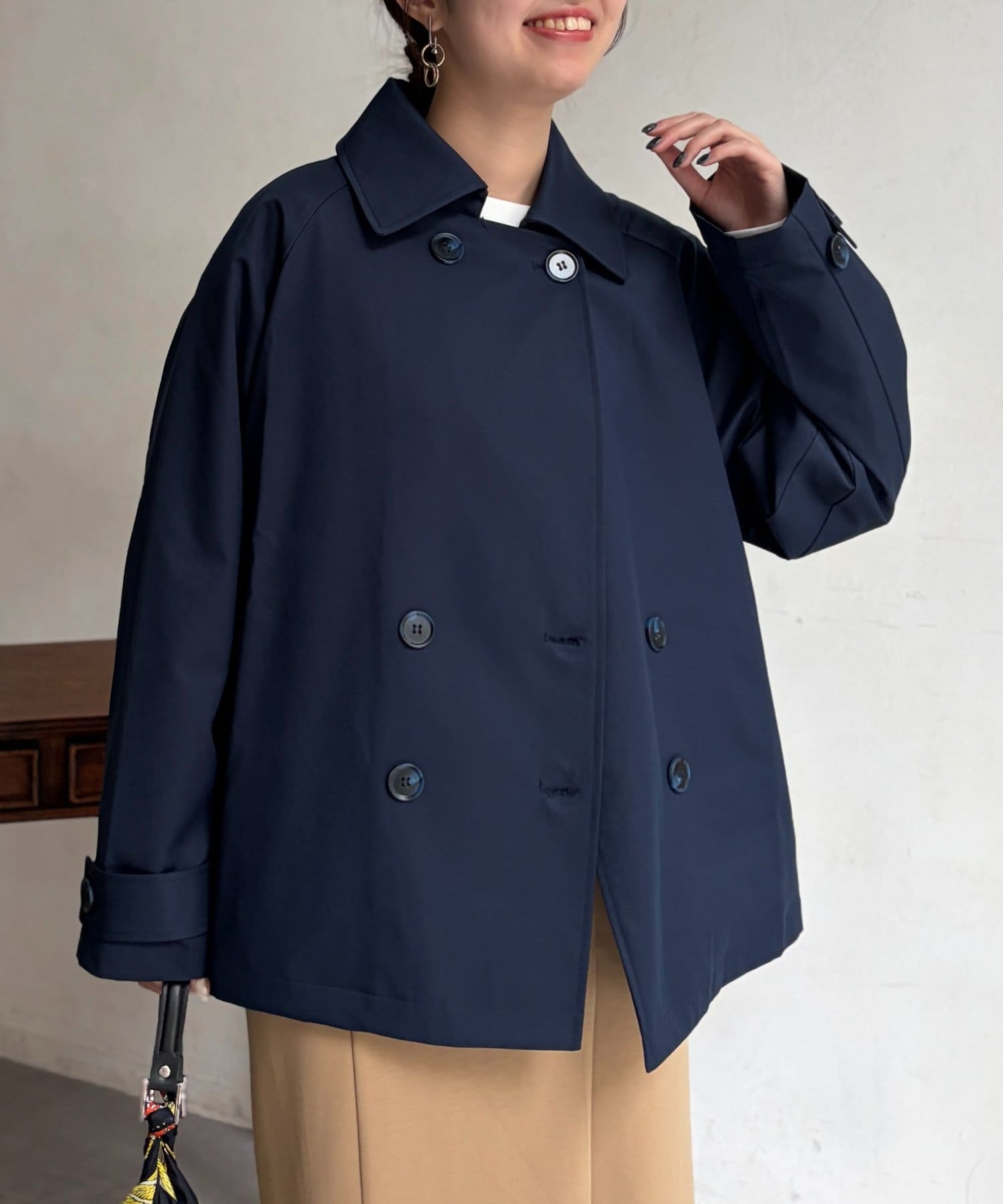 大きめカラーにゆったりシルエットのバックフレアラインコート。