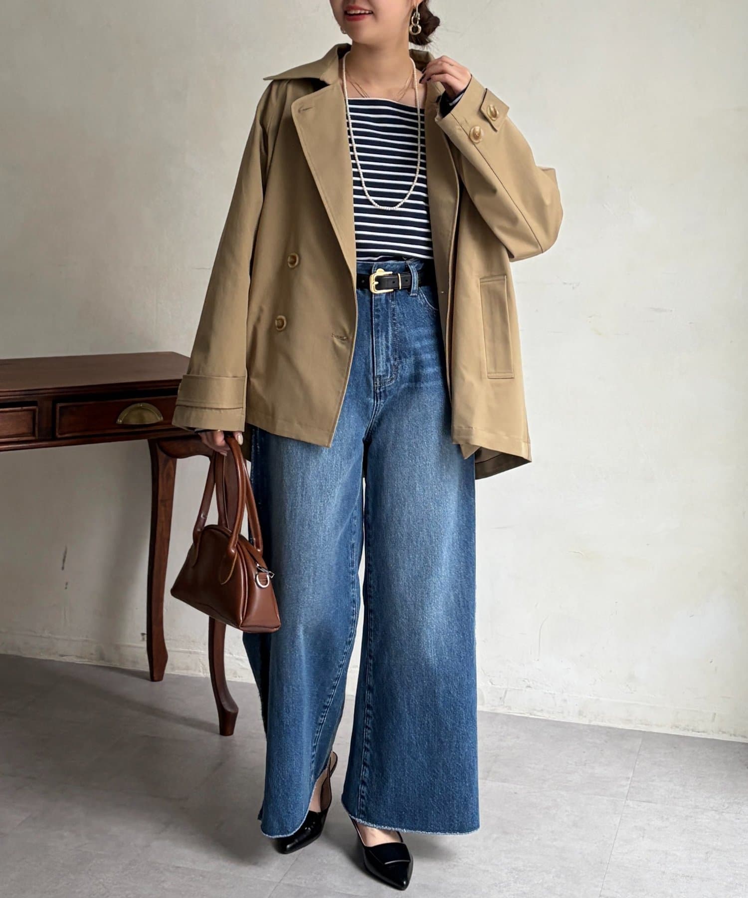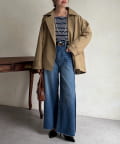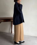 ゆったりサイズなので、コンパクトなトップスだけでなくニットや、スウェットでももたつかずに着用できます!