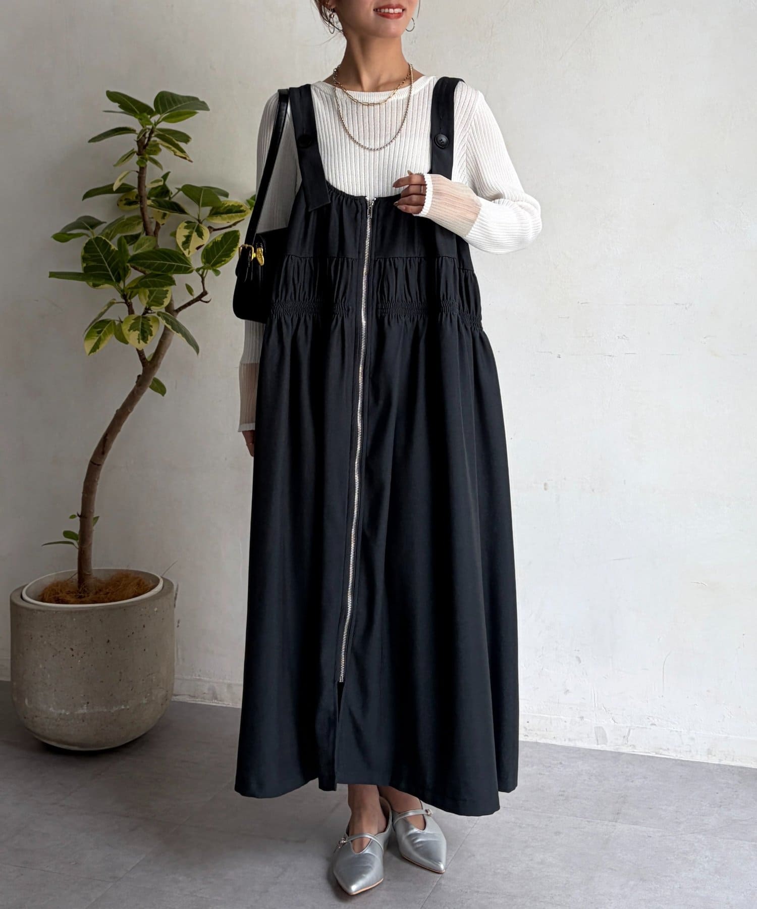 TOP > Chez toi > レディース > ワンピース > ジャンパースカート > フロントZIPジャンスカ