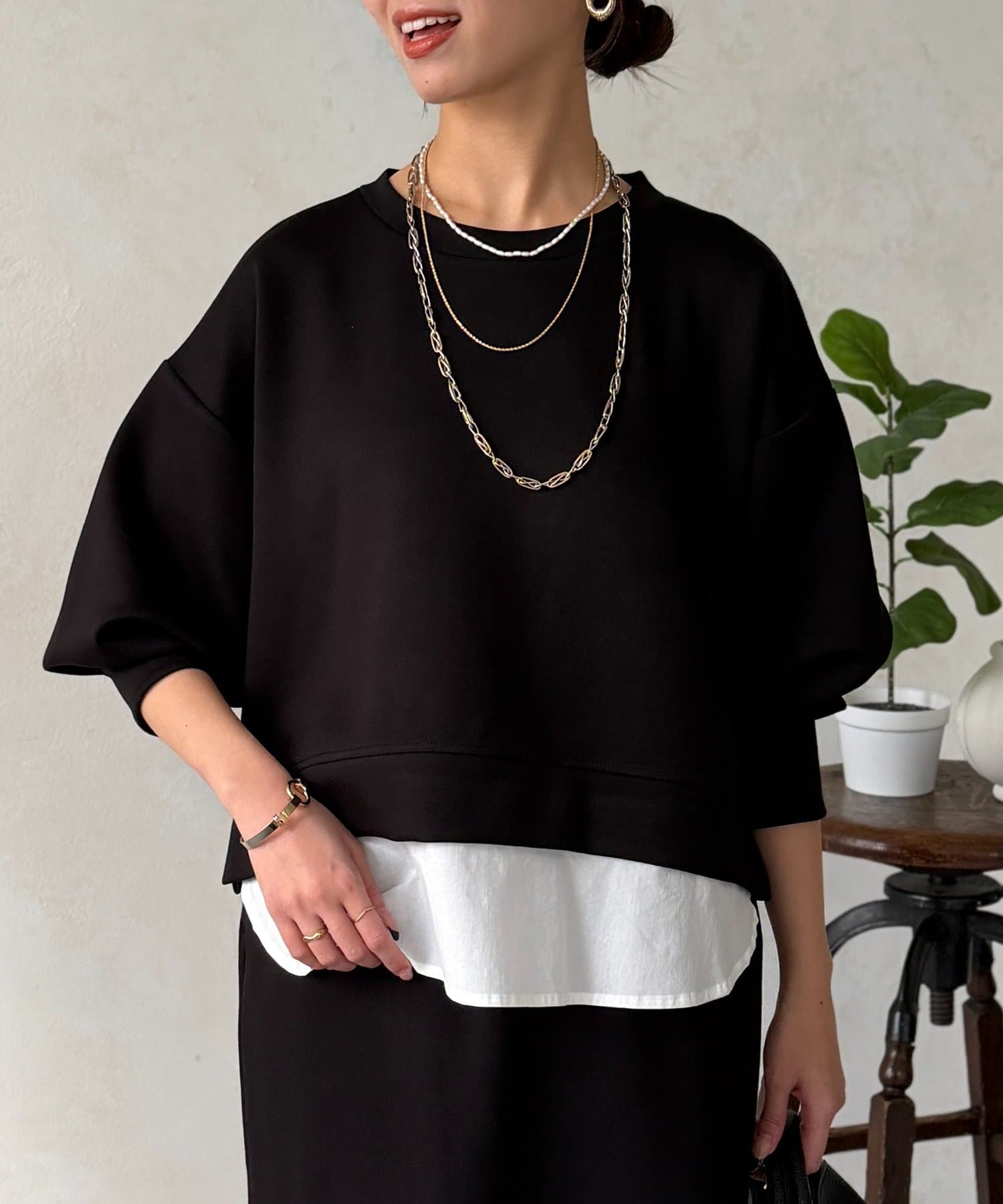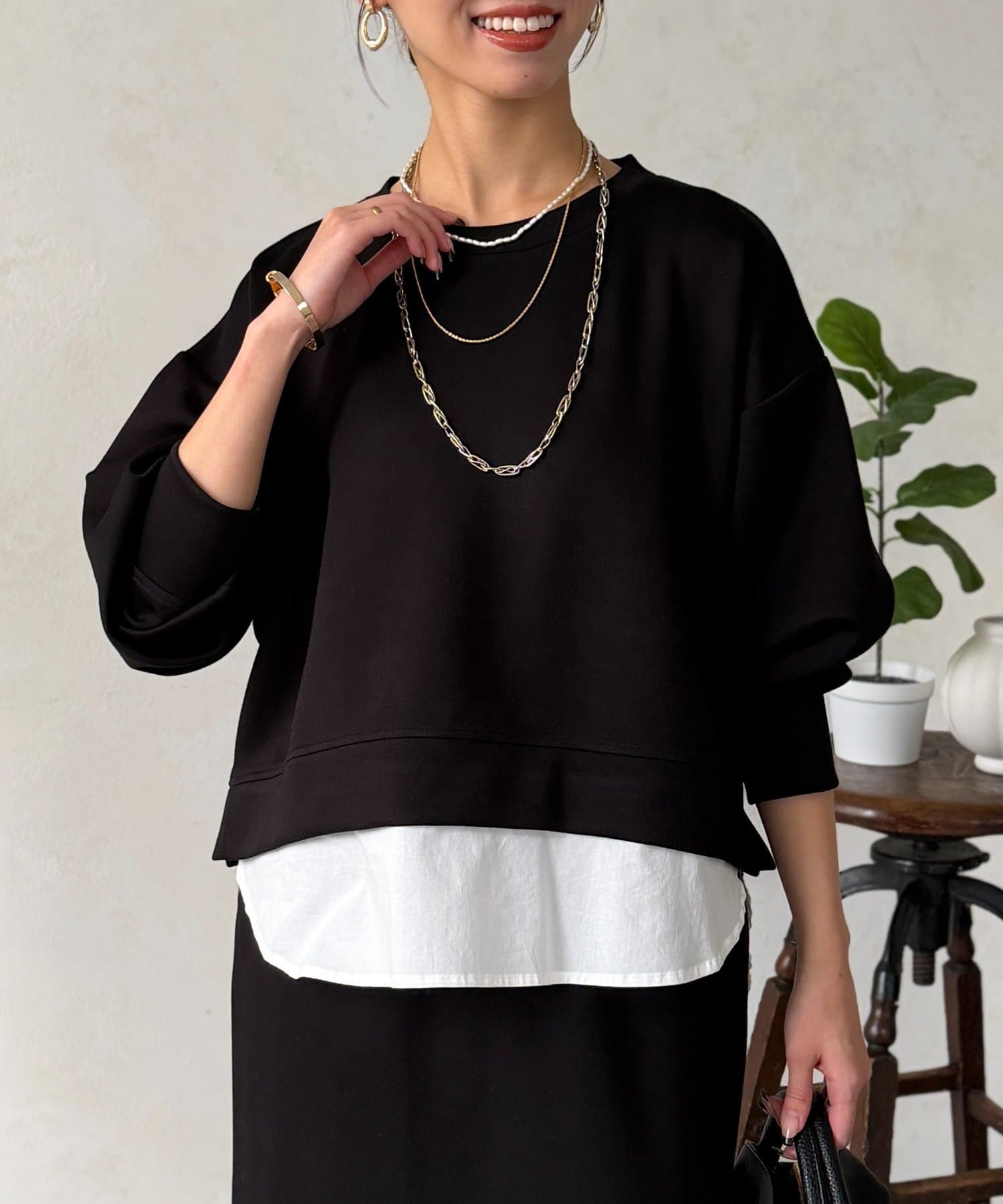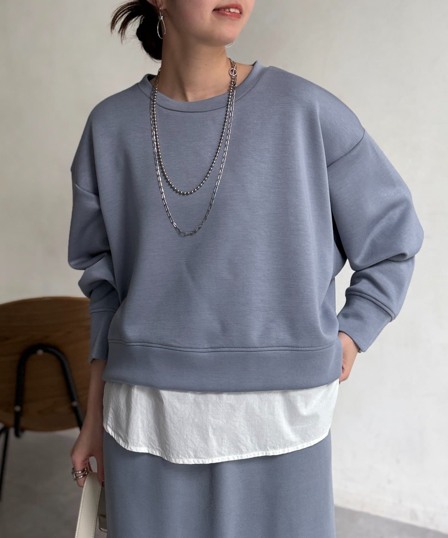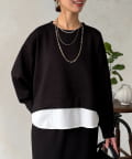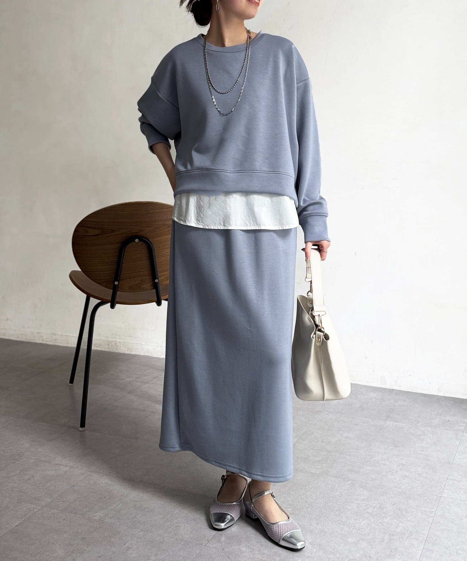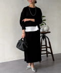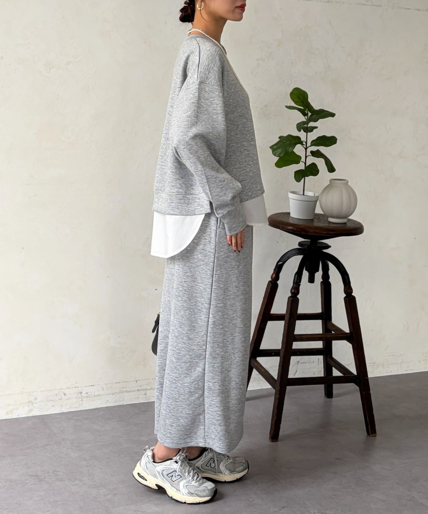 トップスはレイヤード見えするデザインなのでインしなくても様になる1着。