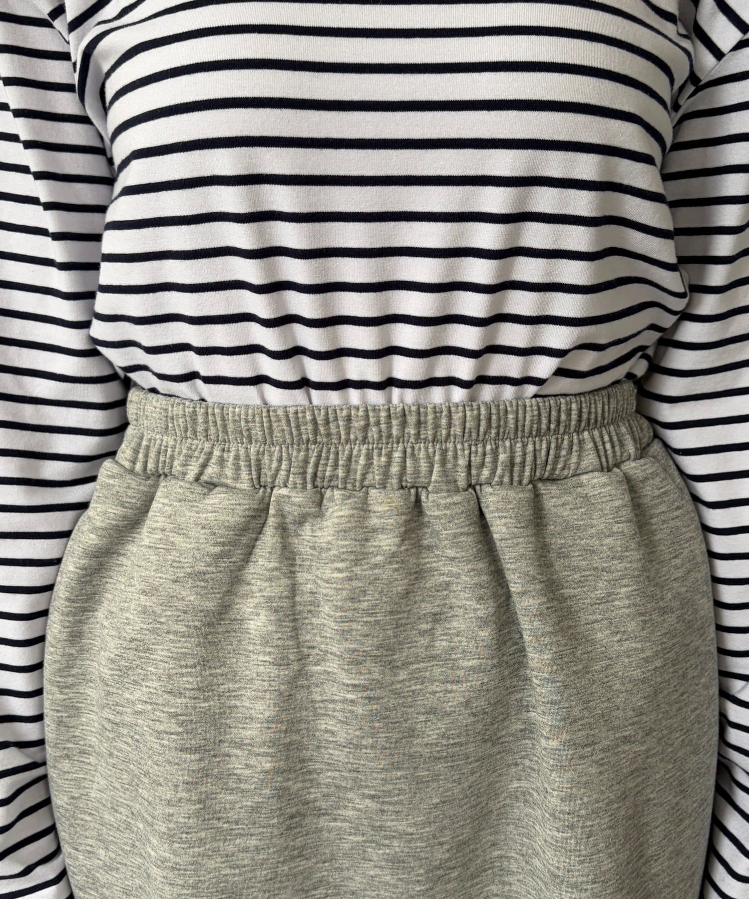 スカートは伸縮性抜群で、ウエストも総ゴムでストレスフリーな履き心地です!