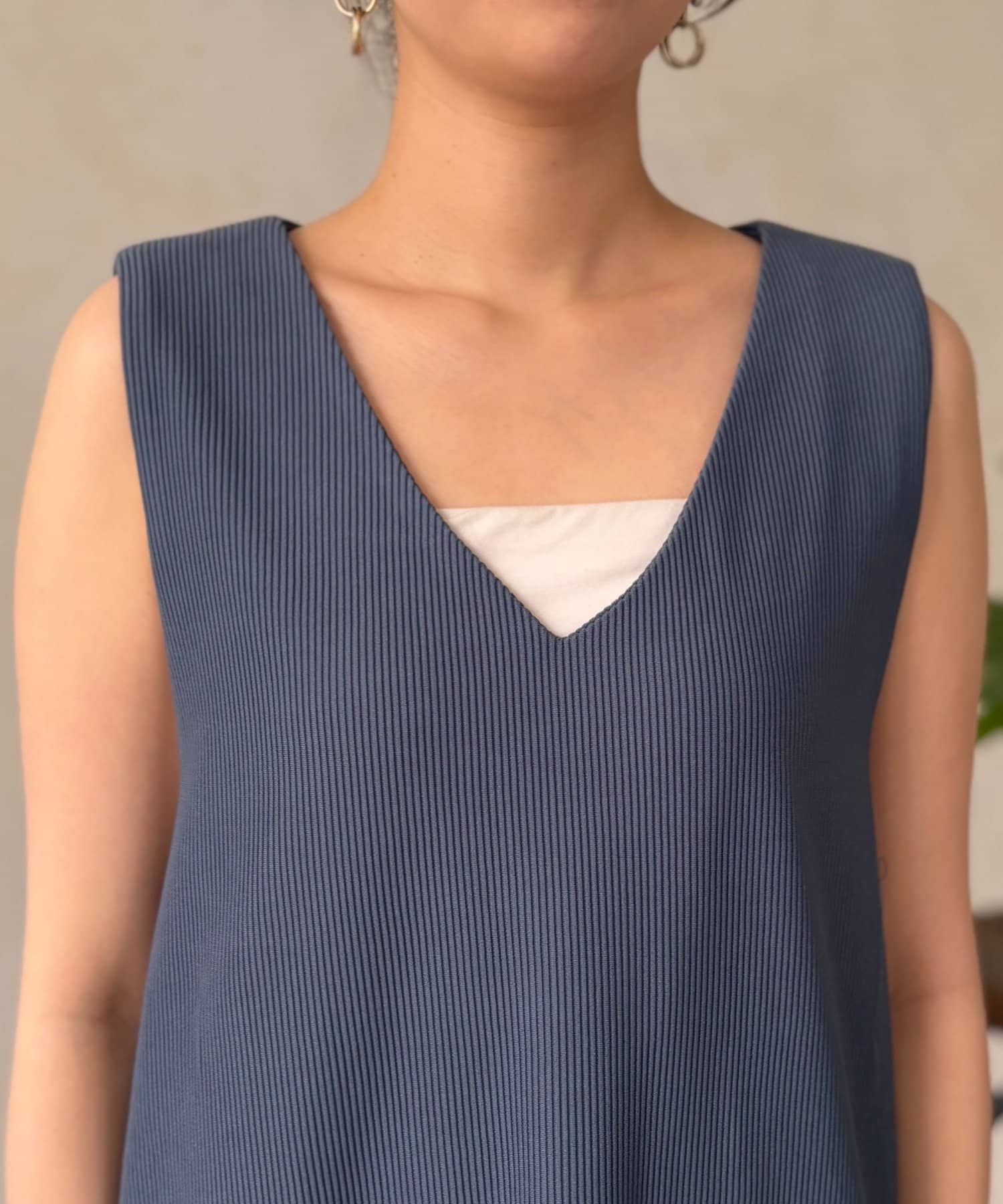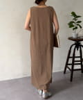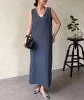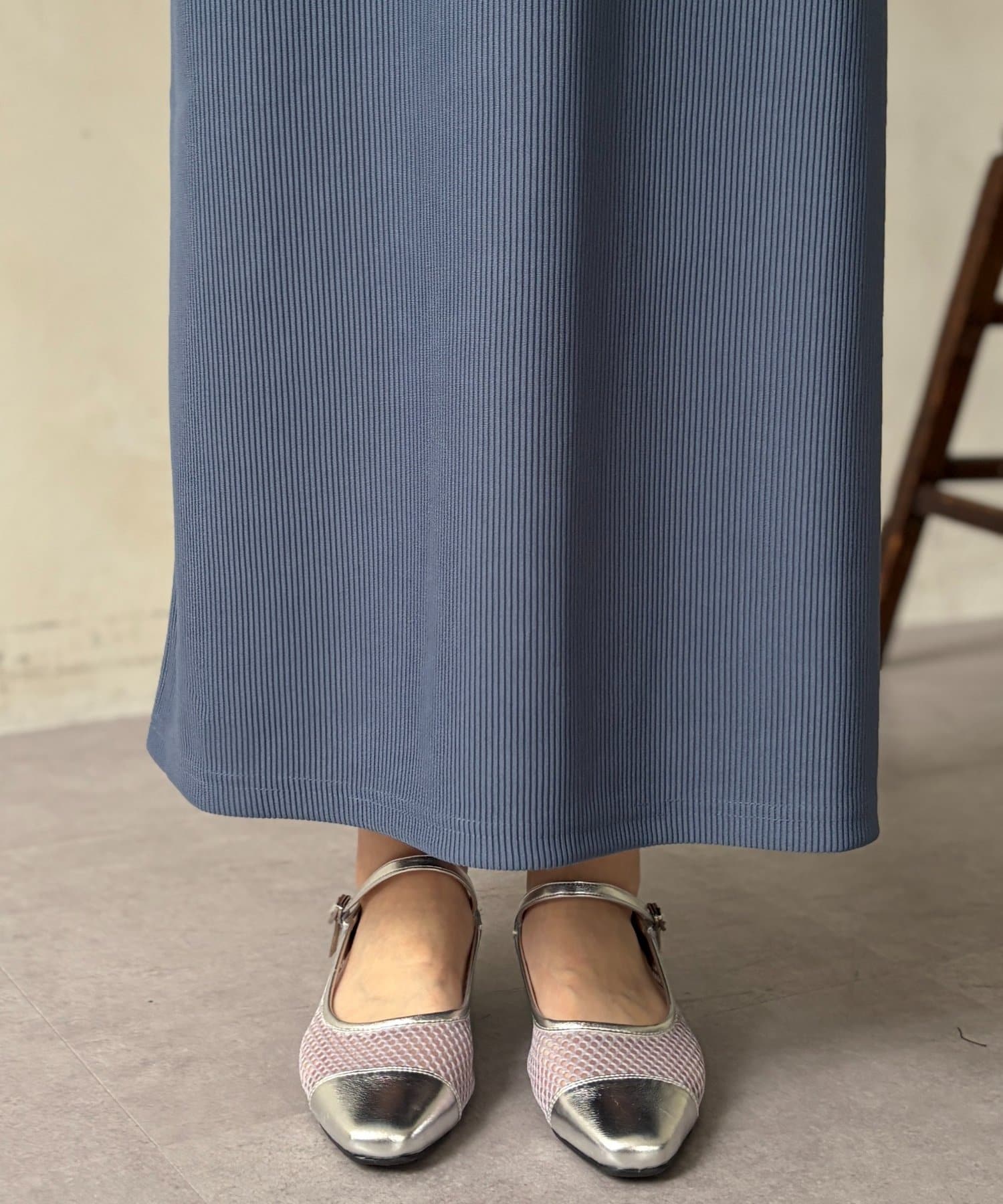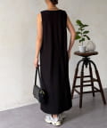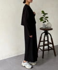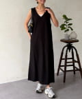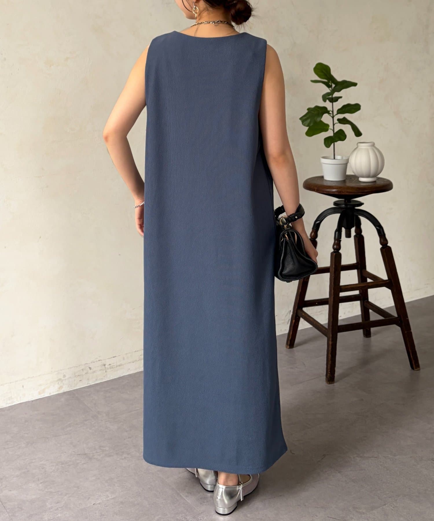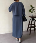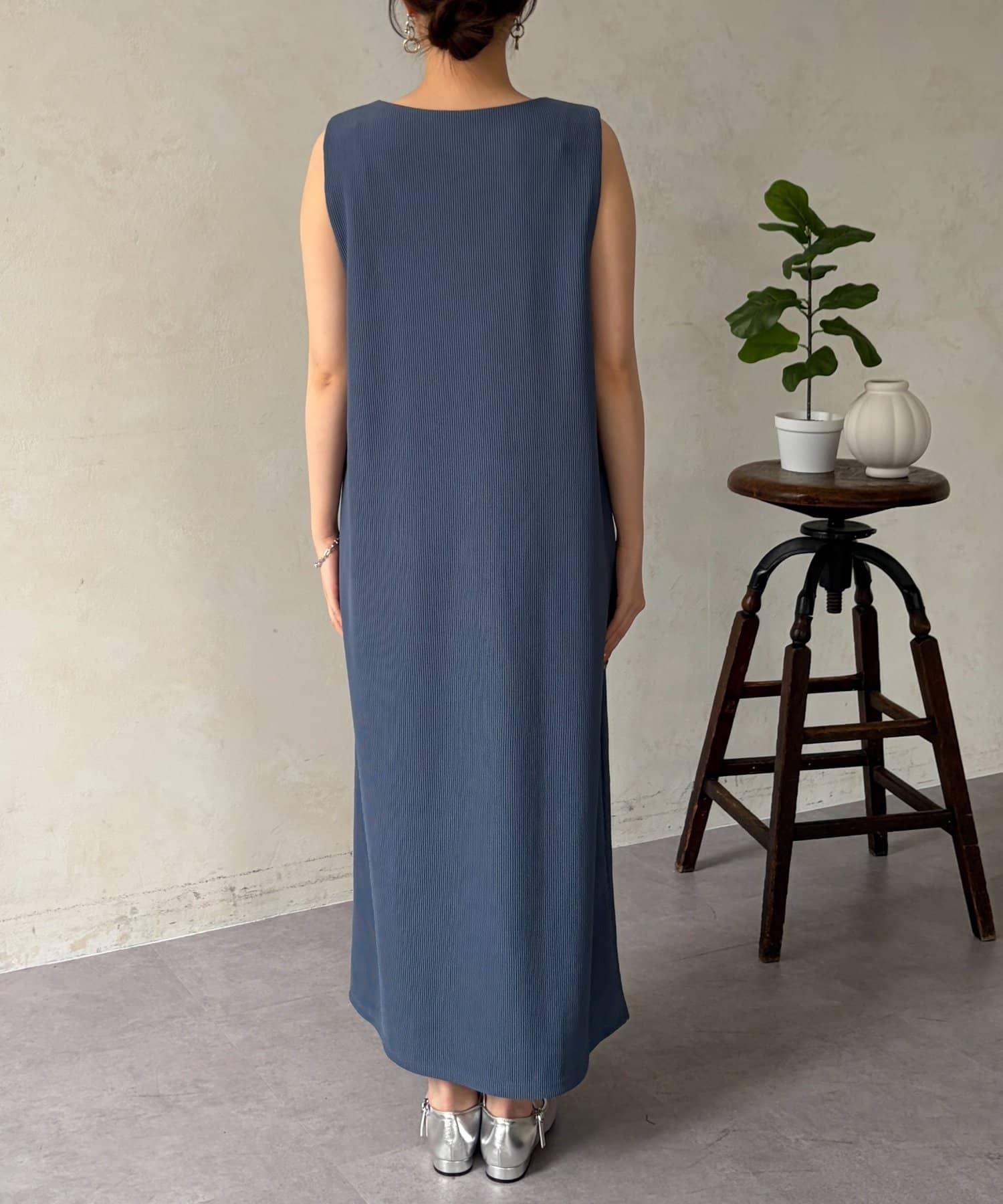 ワンピースはすっきりとした印象ながらタイトすぎないサイズ感で、体型を拾いにくいのが嬉しいポイント◎