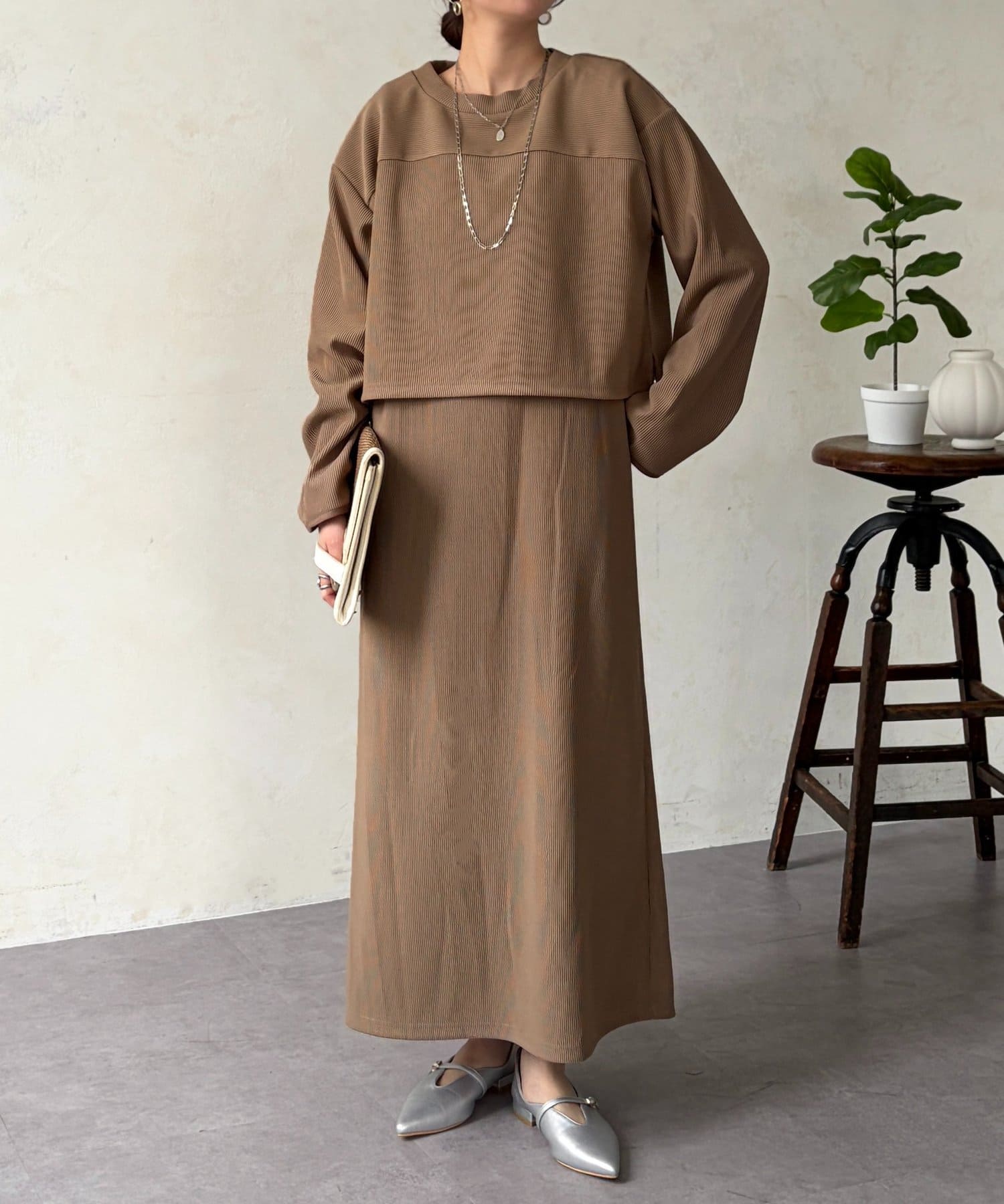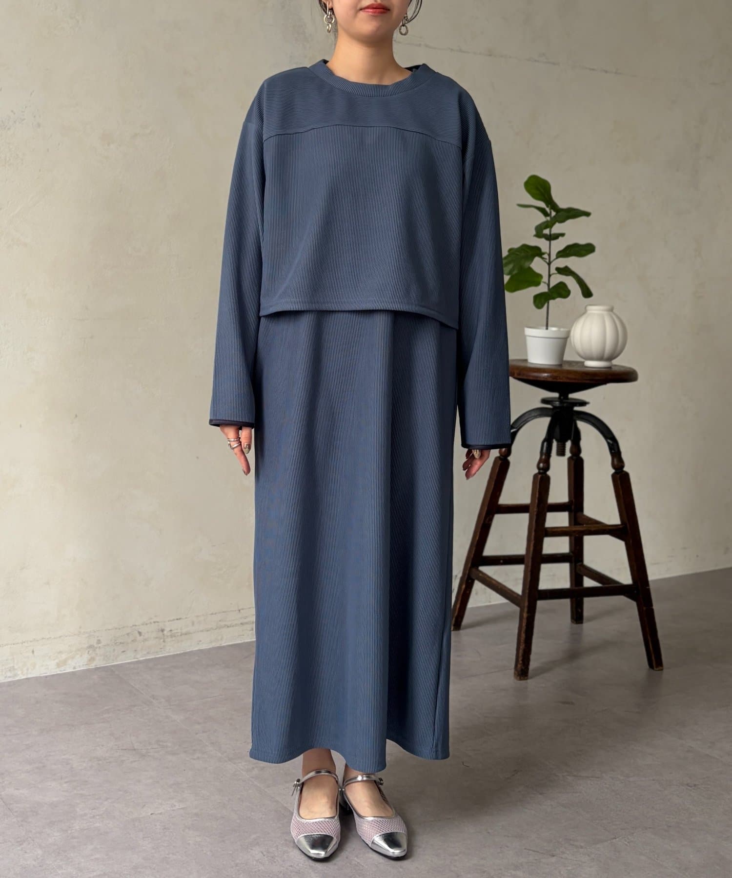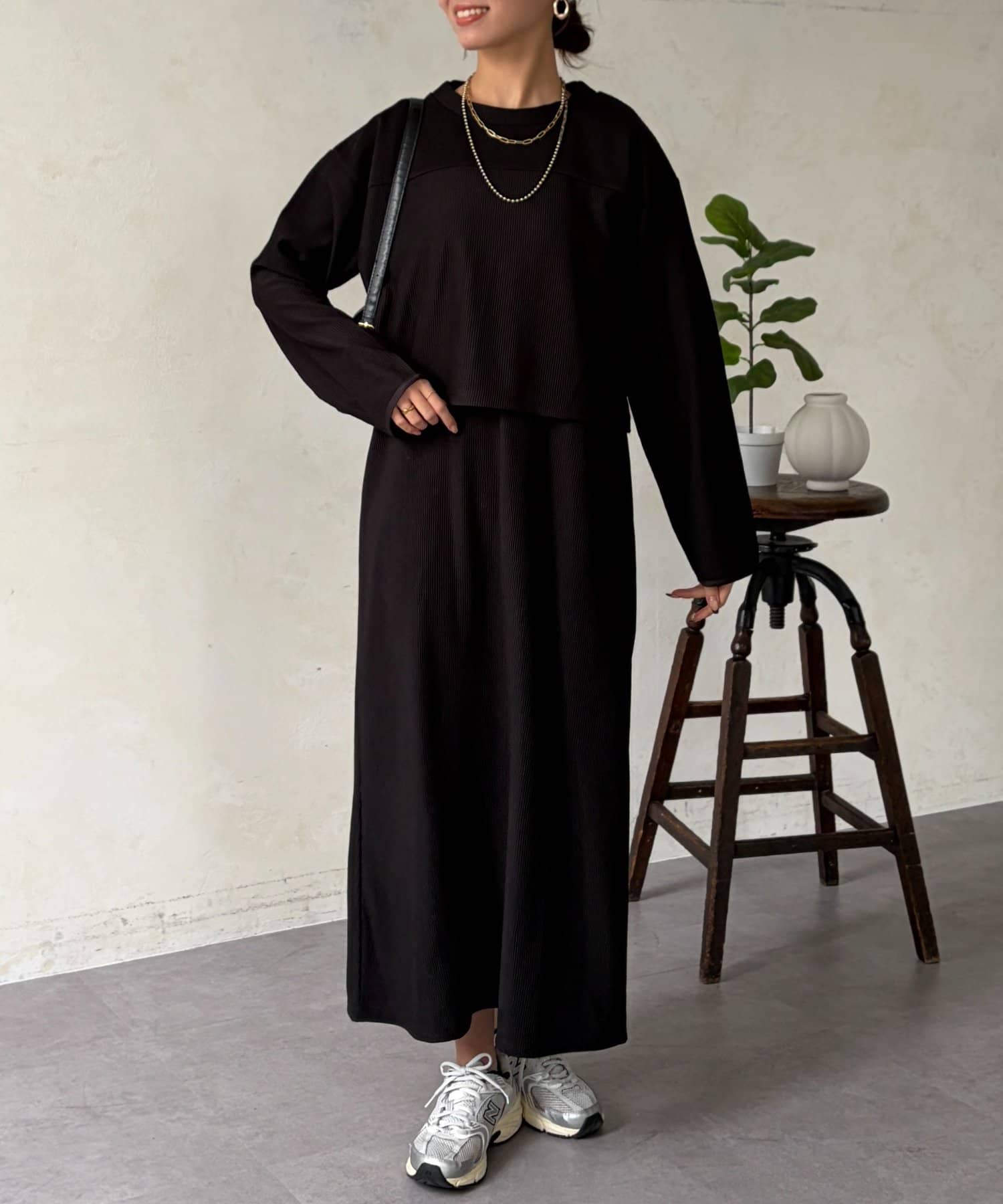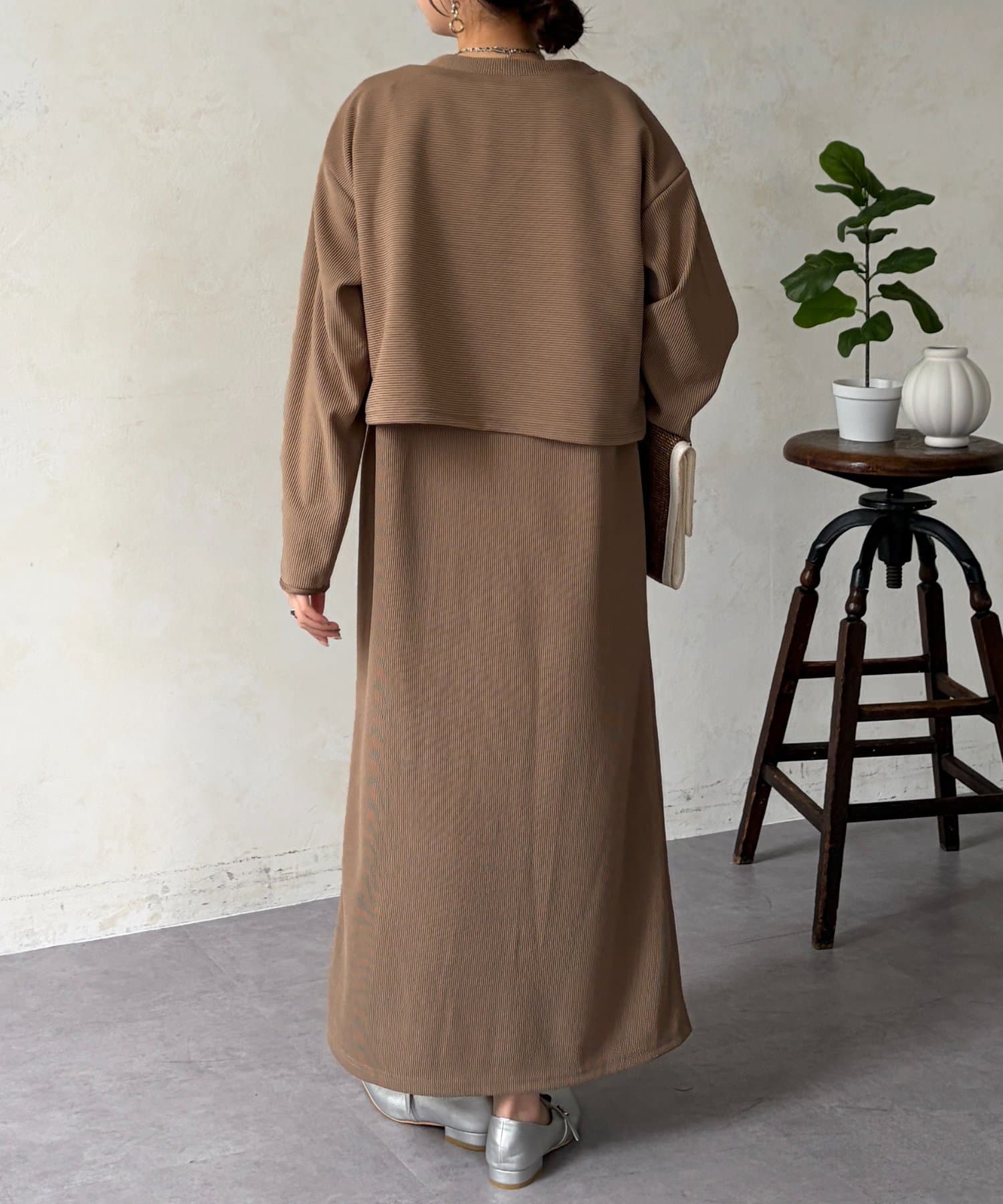キャミワンピースとショート丈ロンTがセットになったアイテム。