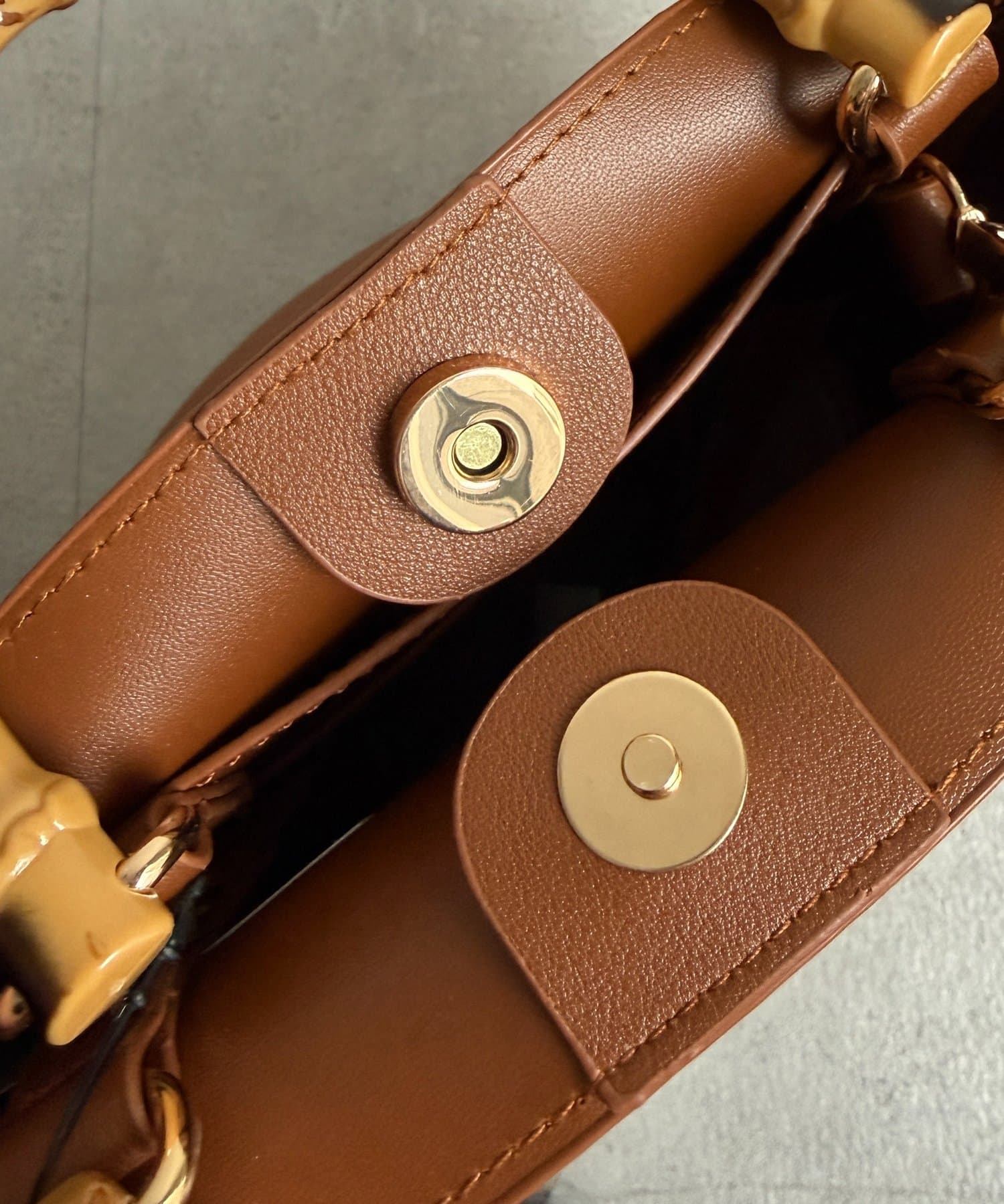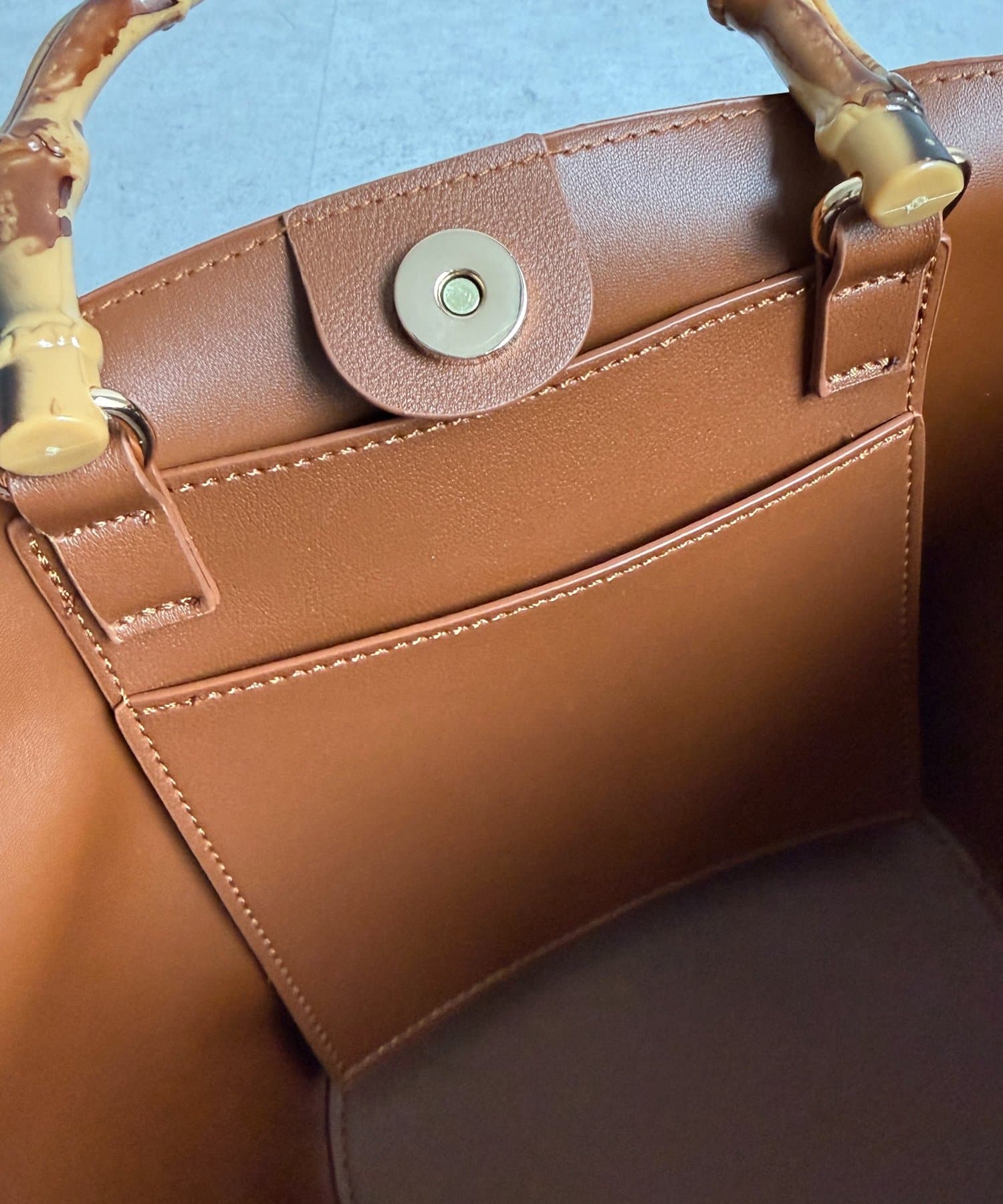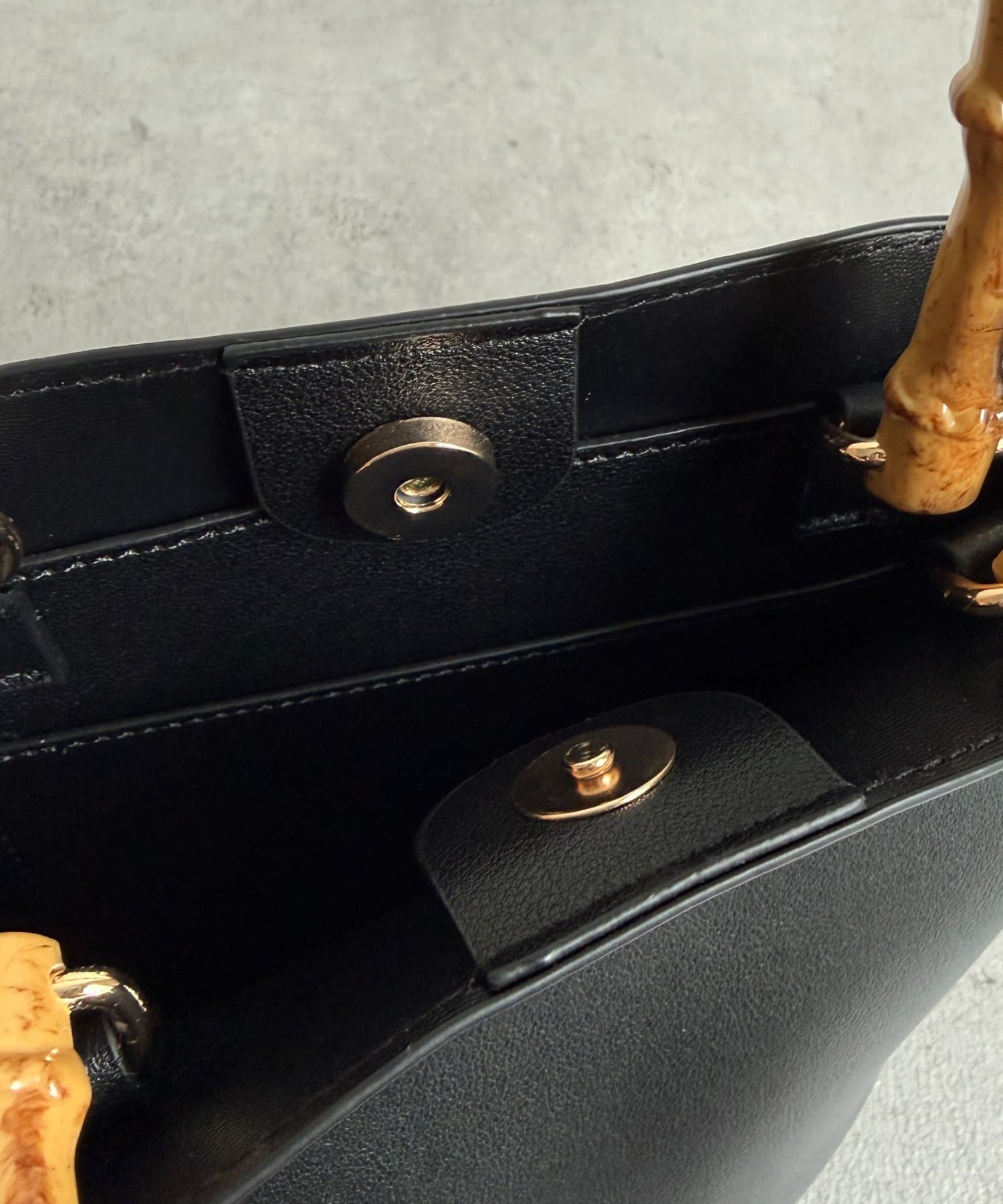 口元は開閉しやすいマグホック付きで、貴重品もしまえるファスナー付きポケット。