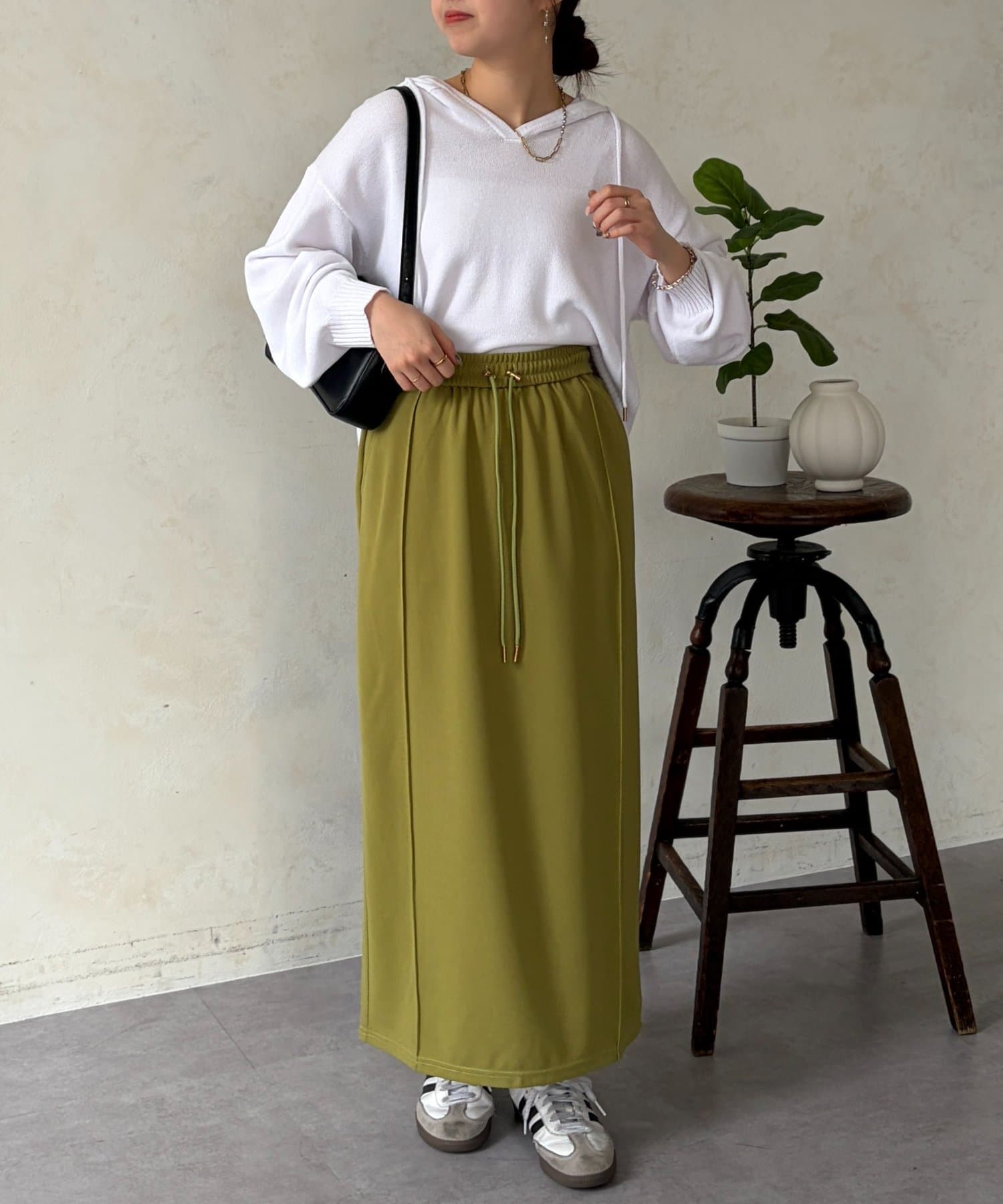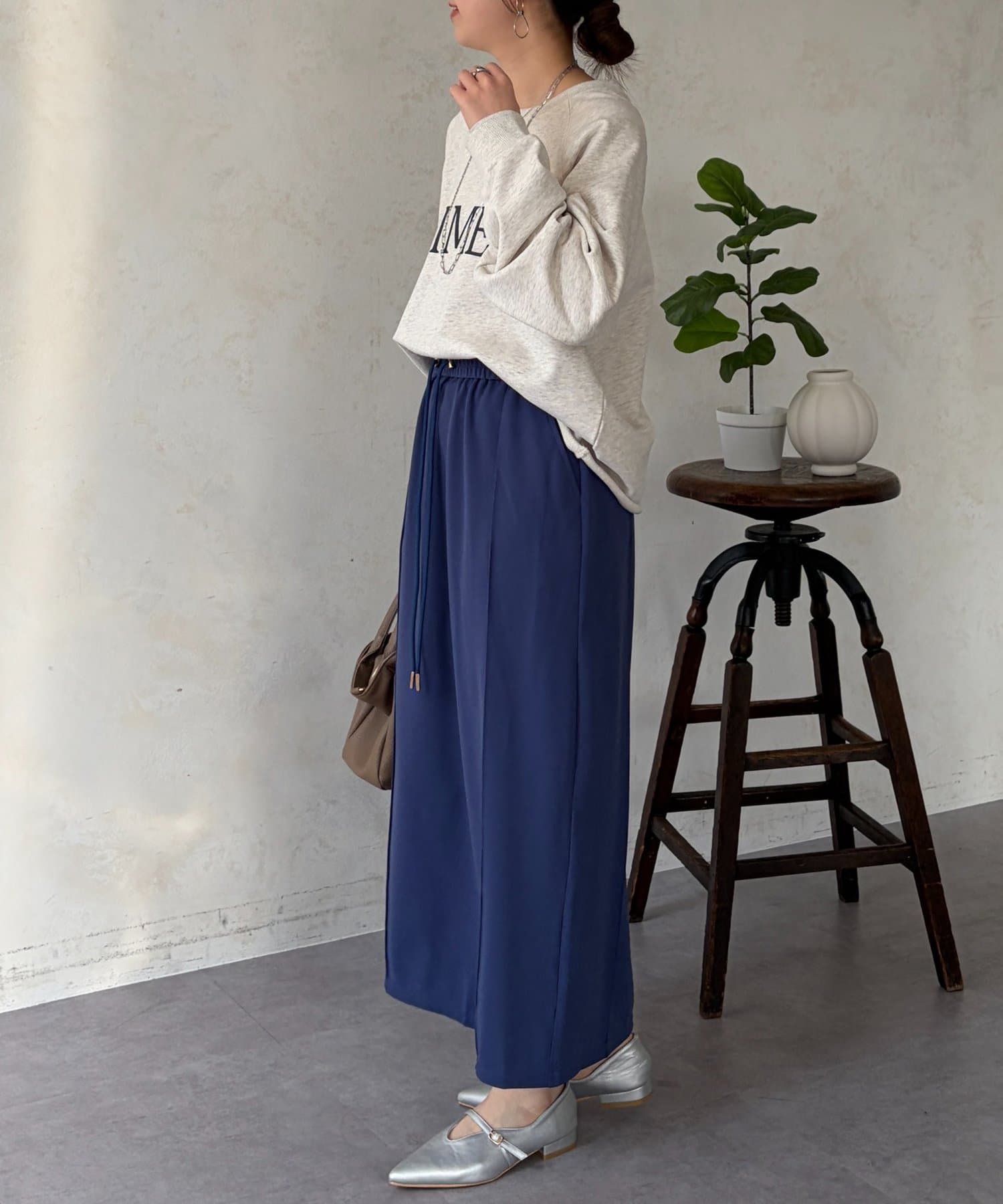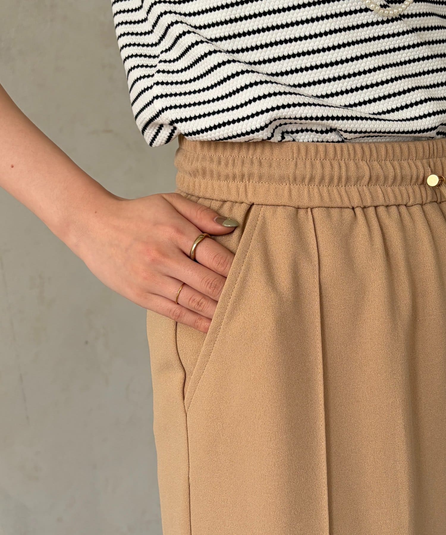 ウエストは総ゴム仕様でドロスト紐も付いているので、ストレスフリーに履いていただけます。