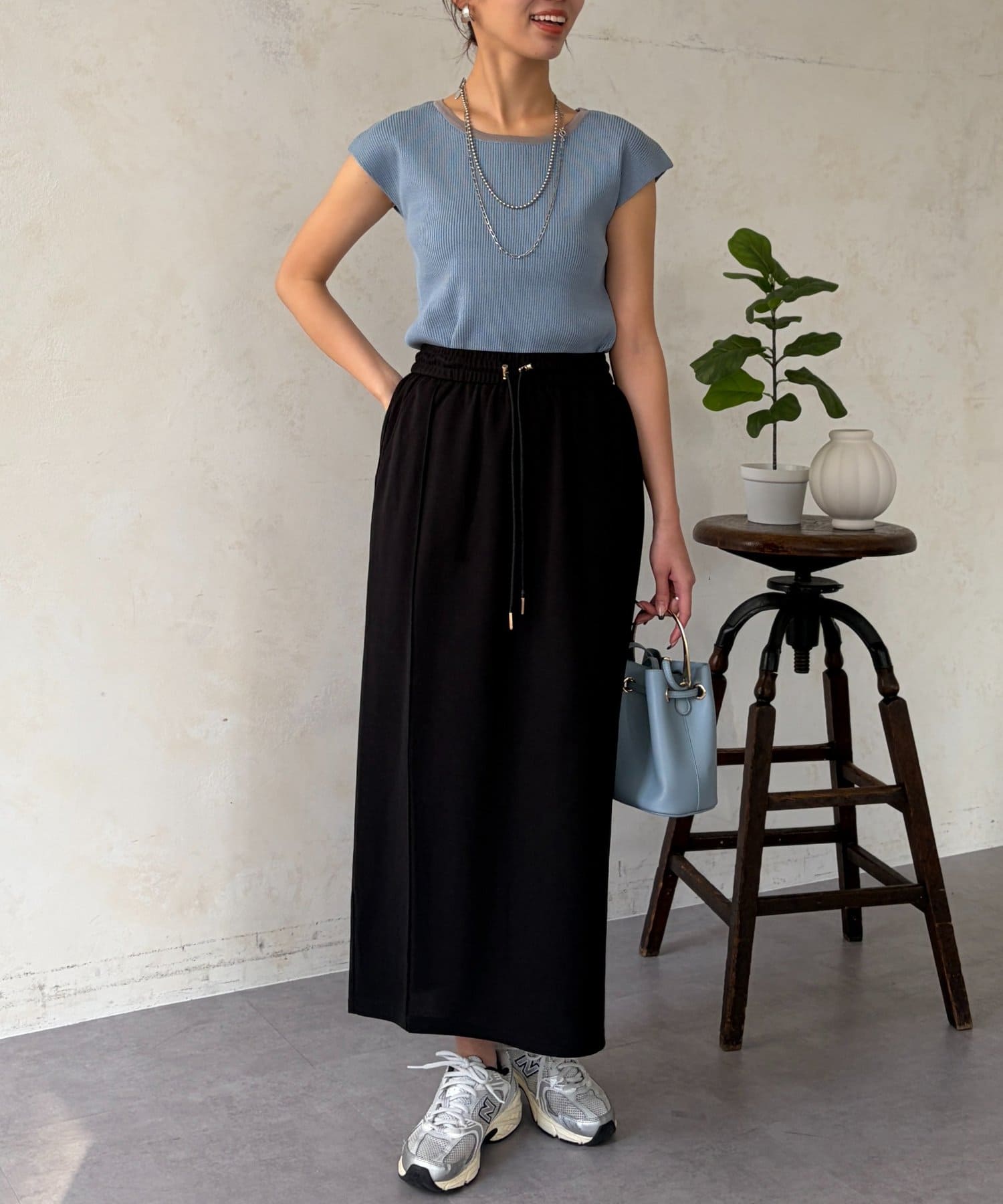 シャツやブラウスを合わせた綺麗めコーデから、Tシャツやタンクトップ+サマーニットなどを