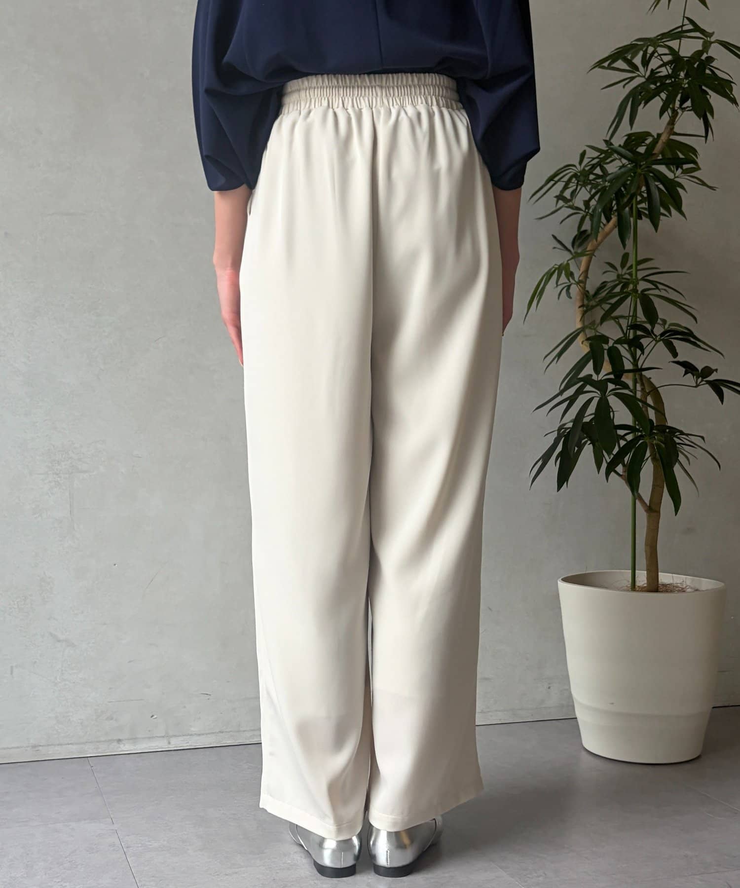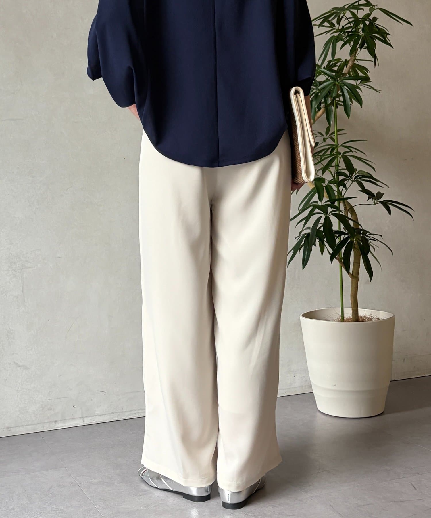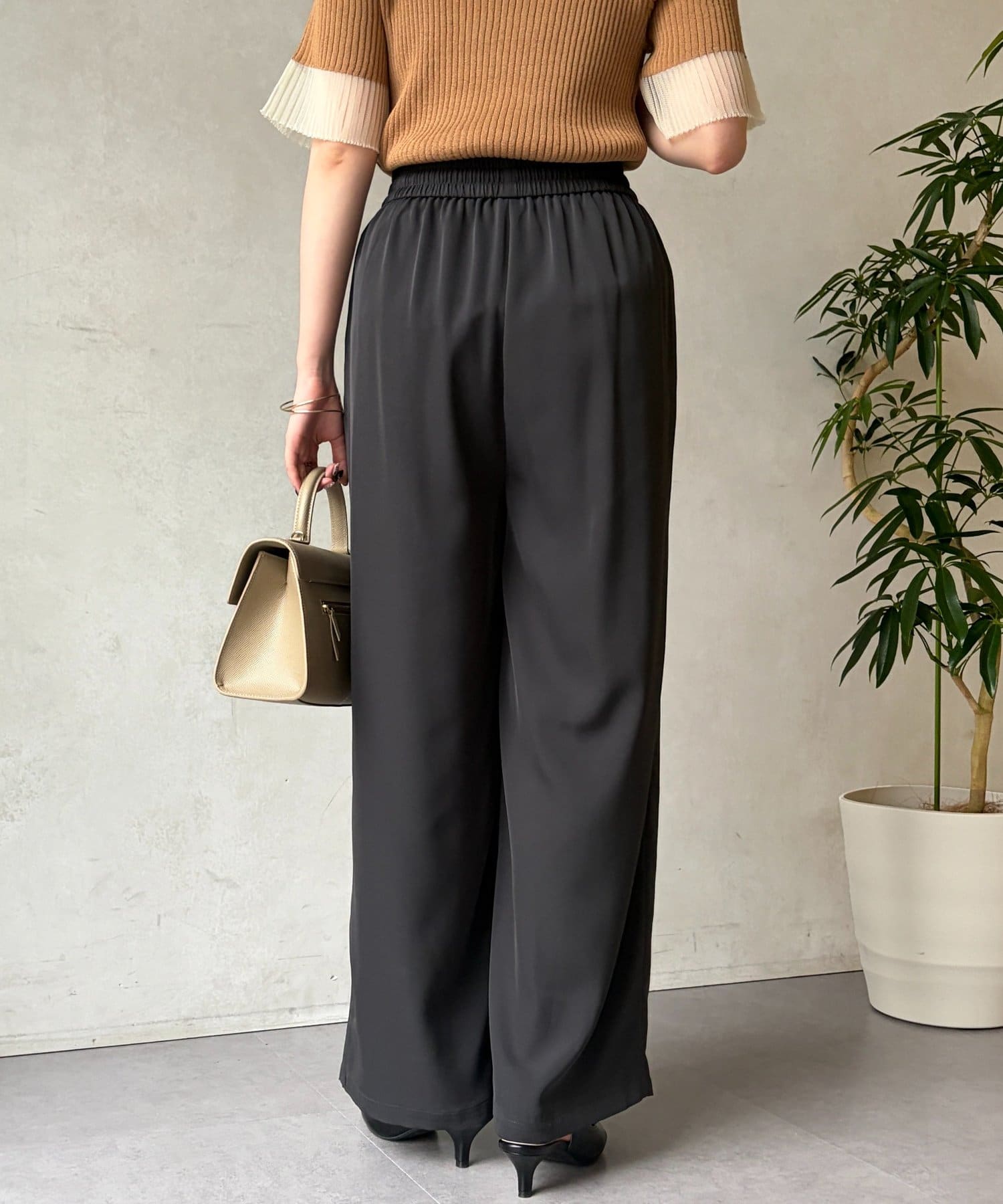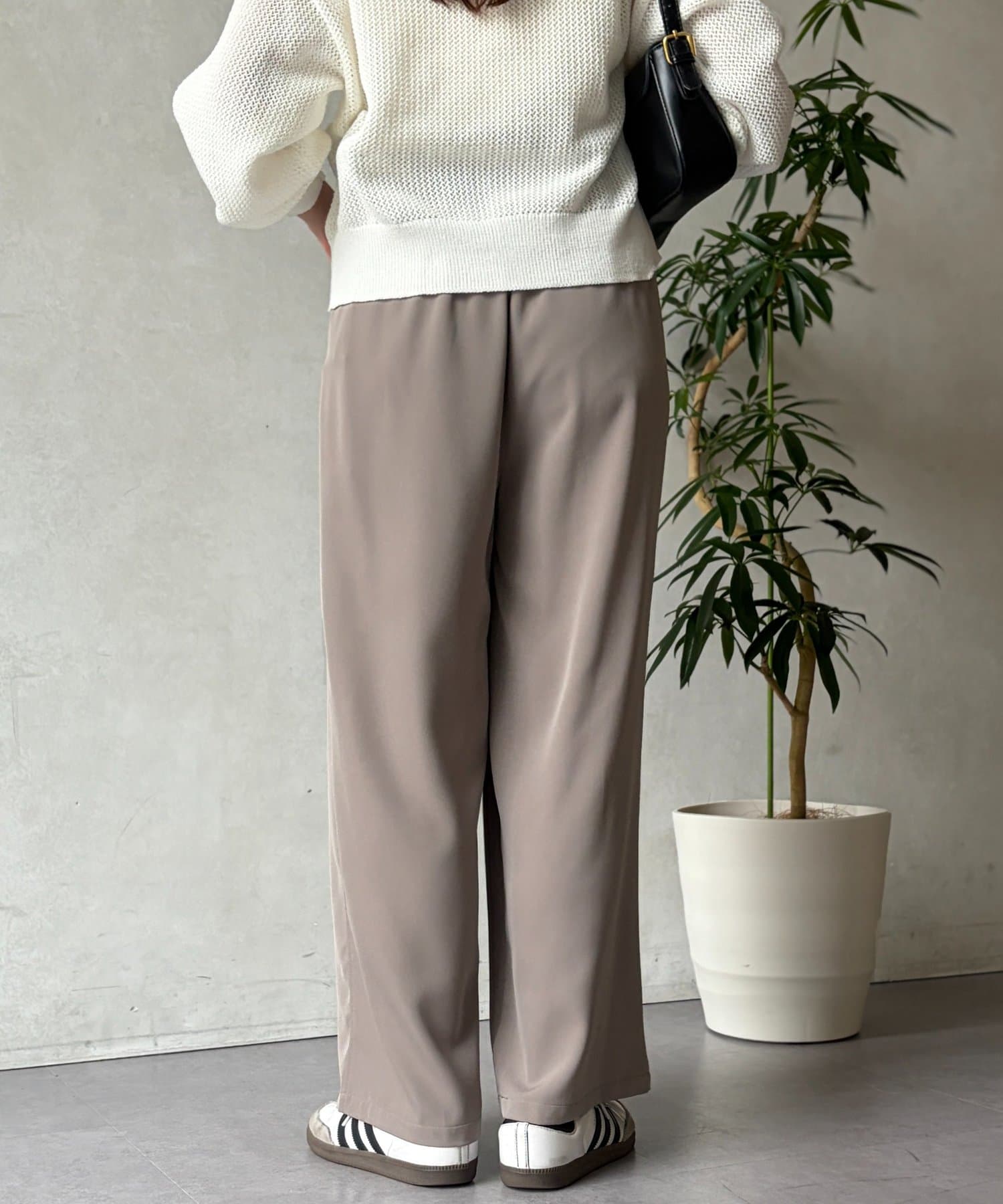 ストンと落ちるストレートシルエットが体型を選ばず履けるイージーパンツ