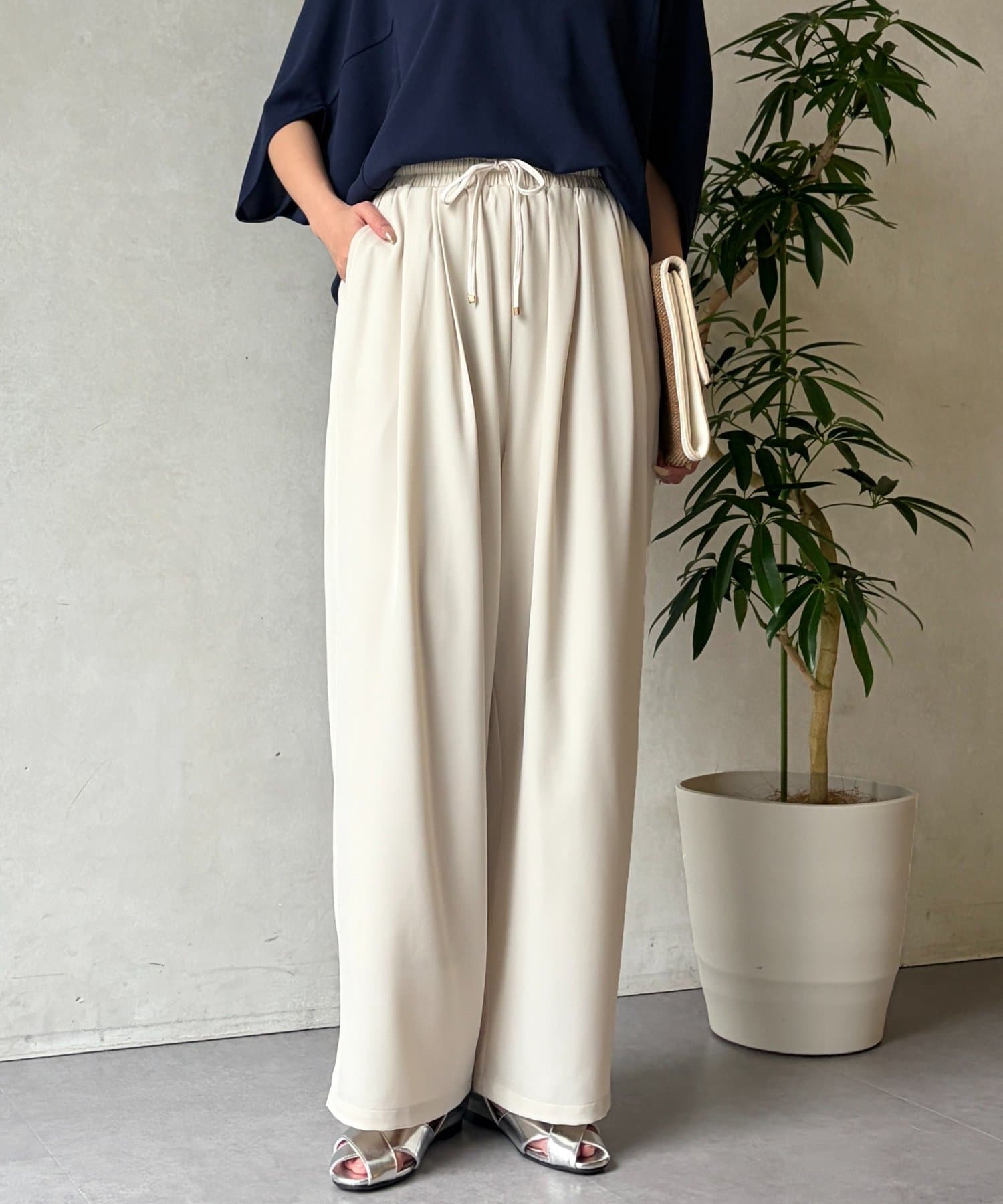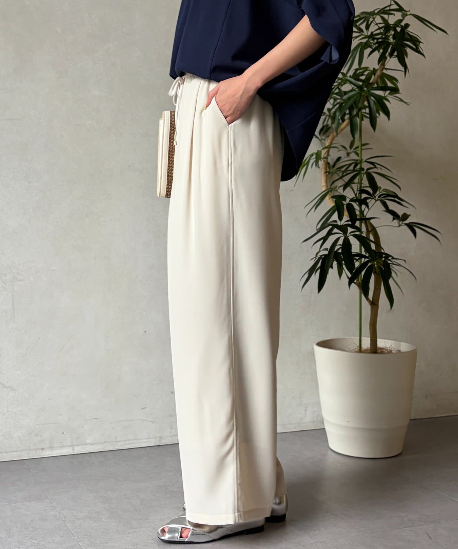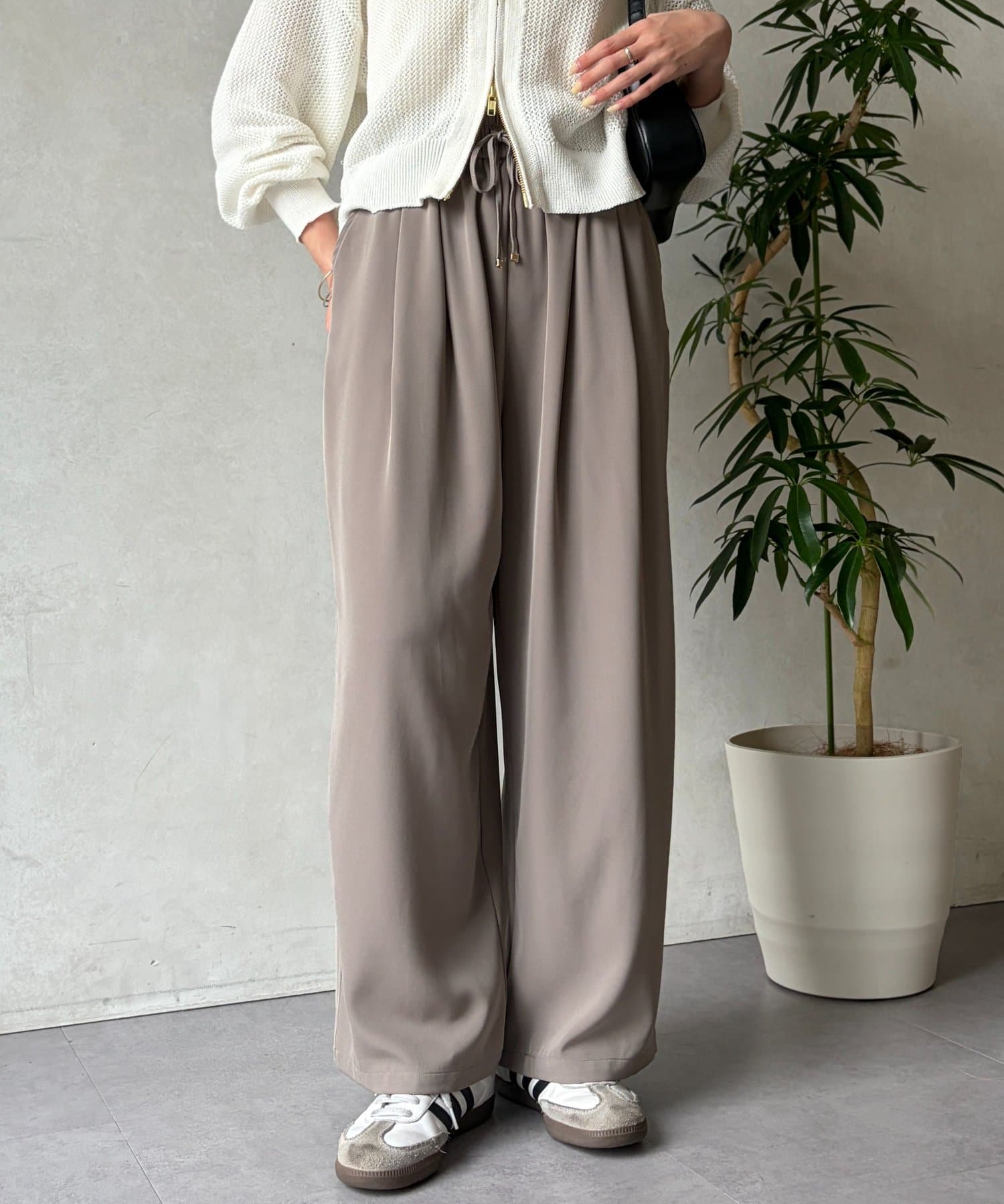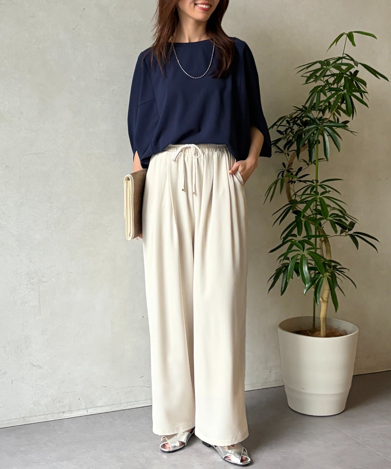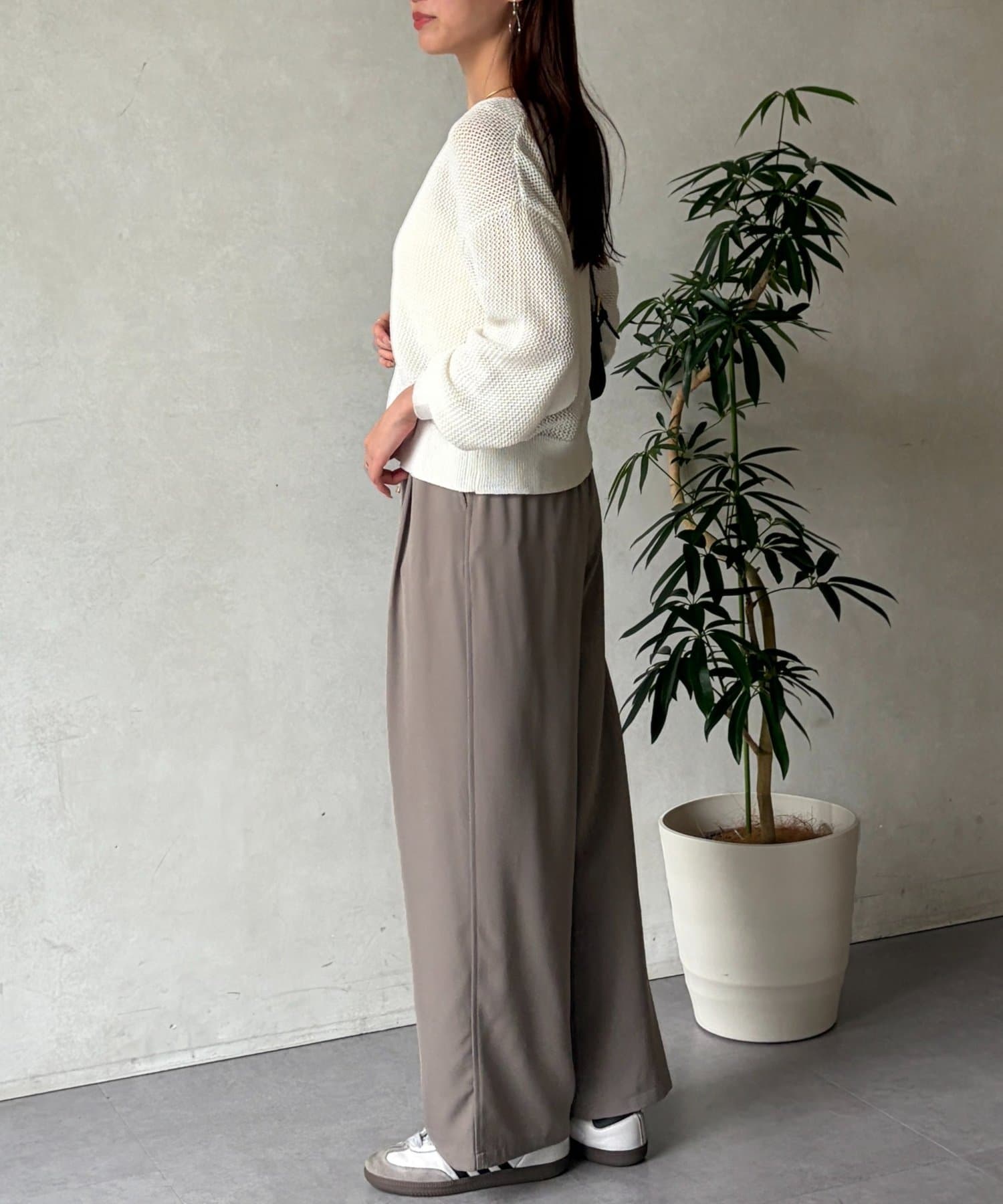 ストンと落ちるストレートシルエットが体型を選ばず履けるイージーパンツ