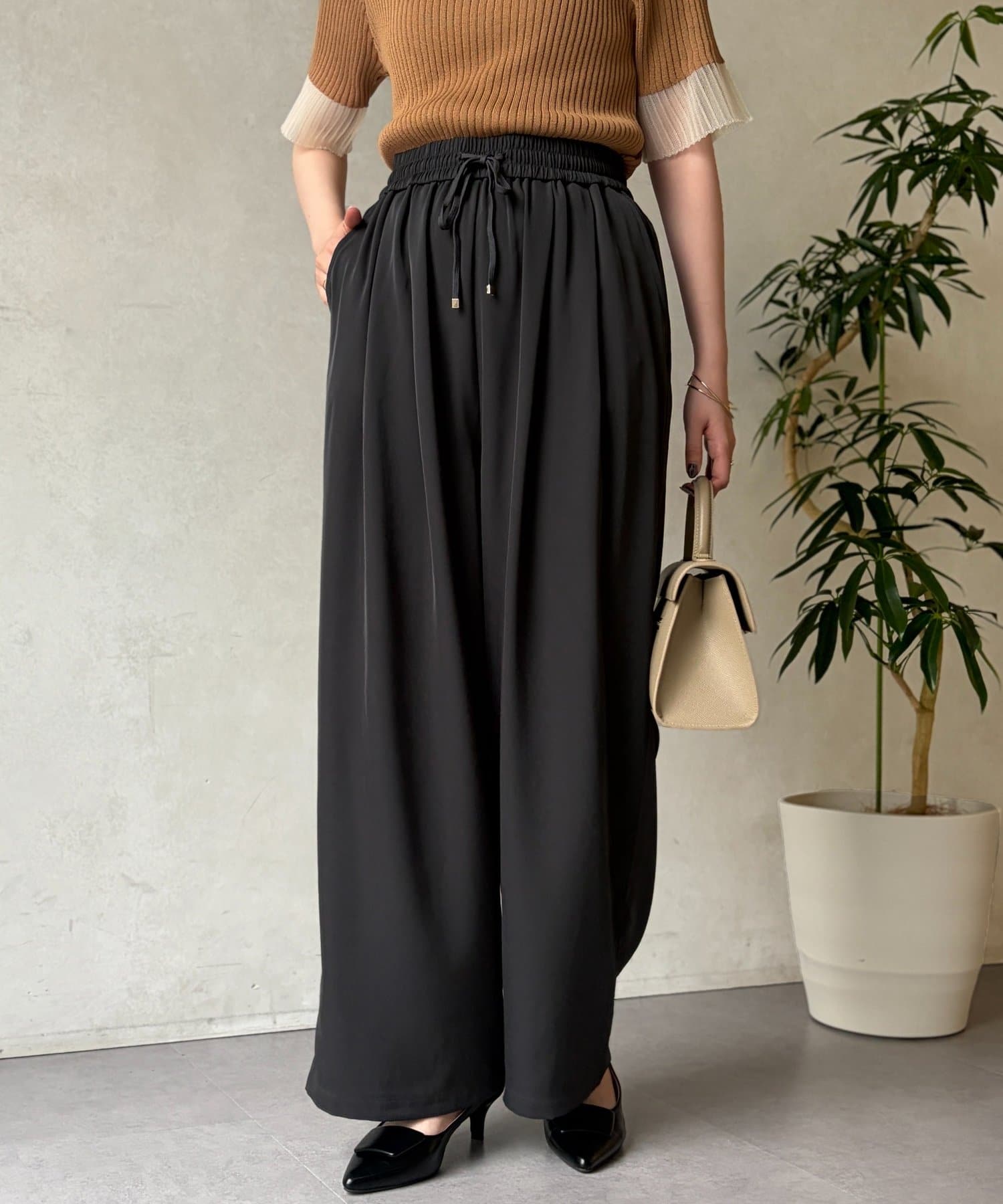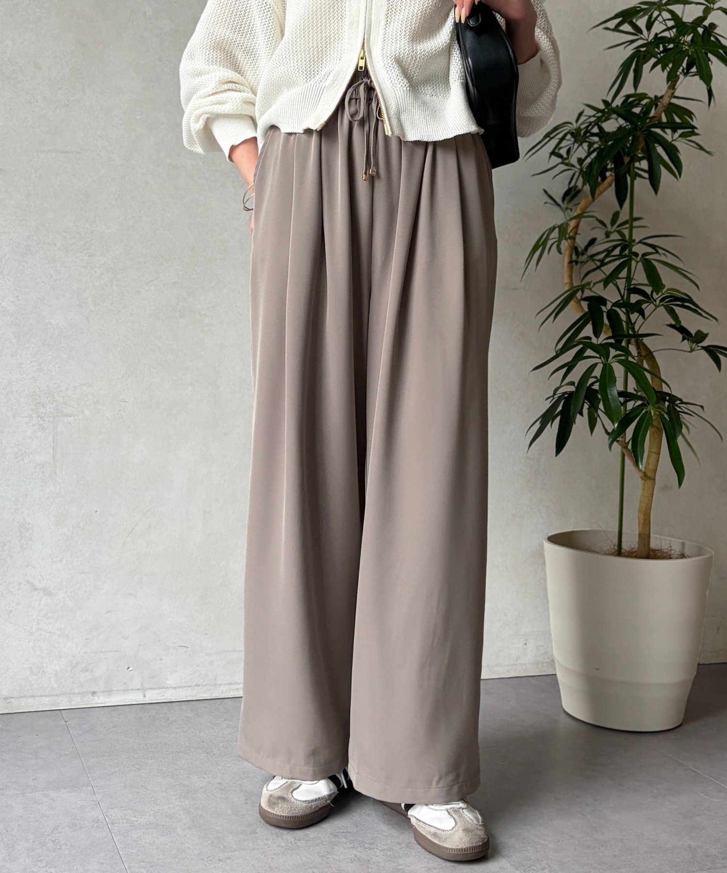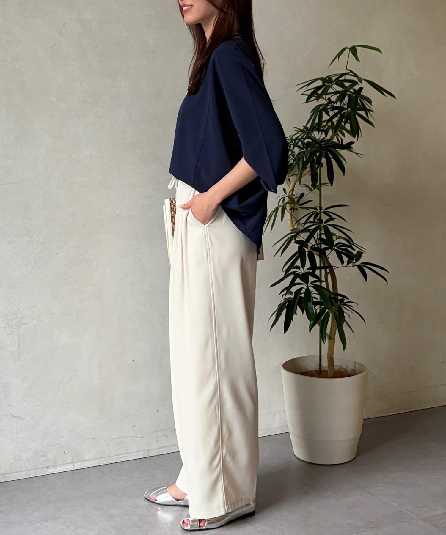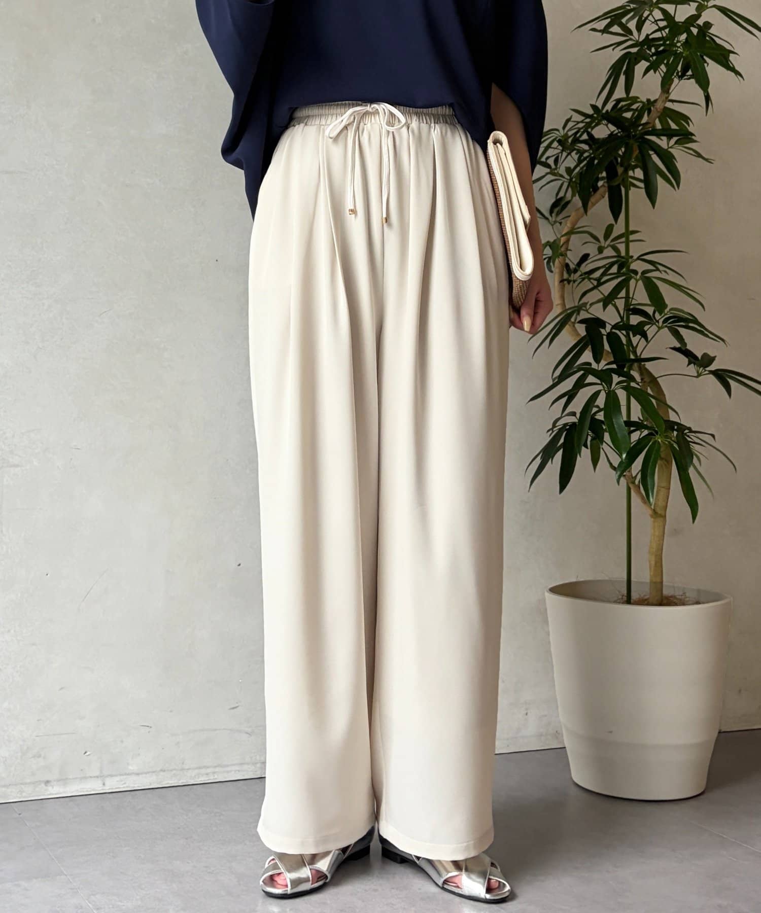 ストンと落ちるストレートシルエットが体型を選ばず履けるイージーパンツ