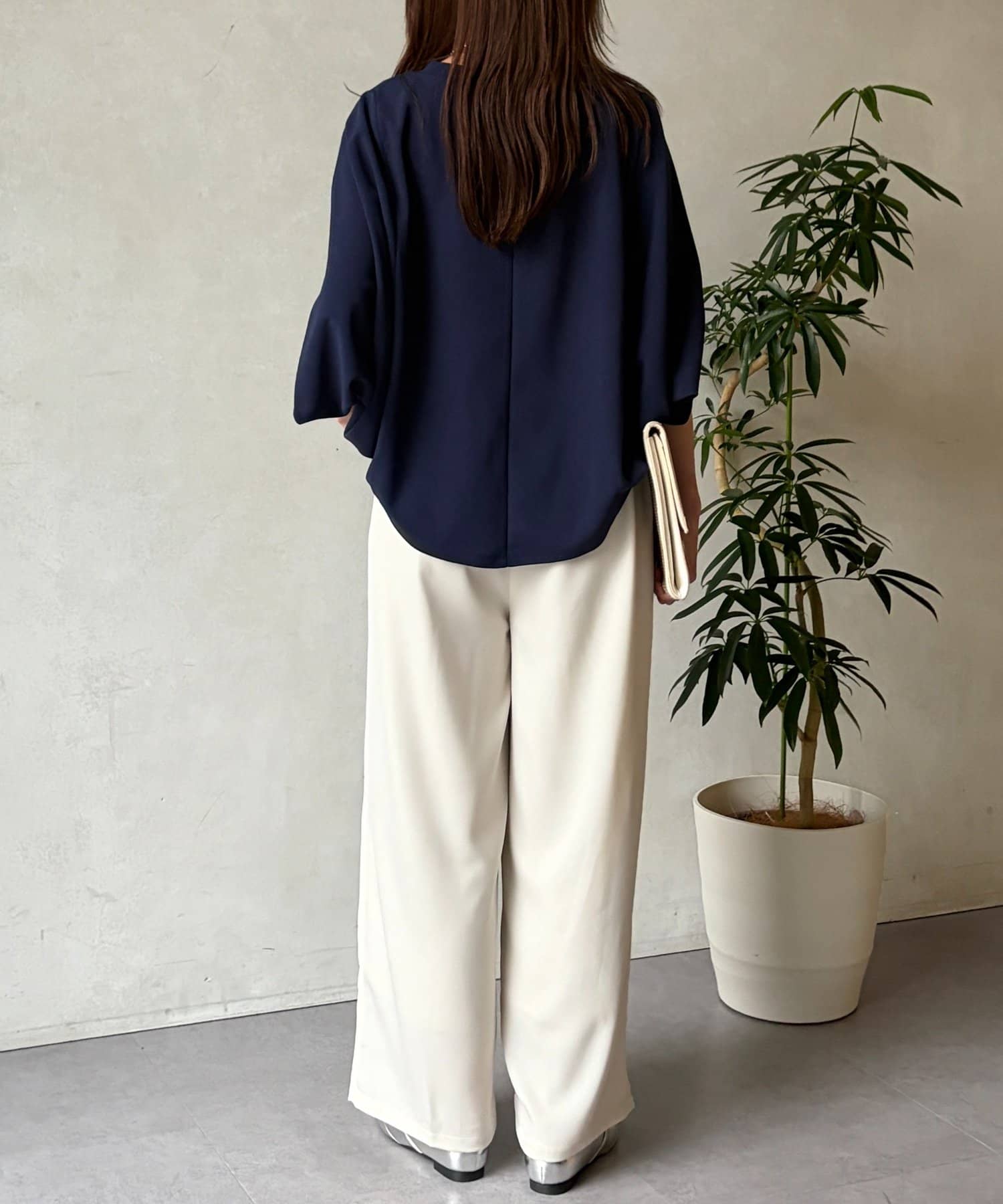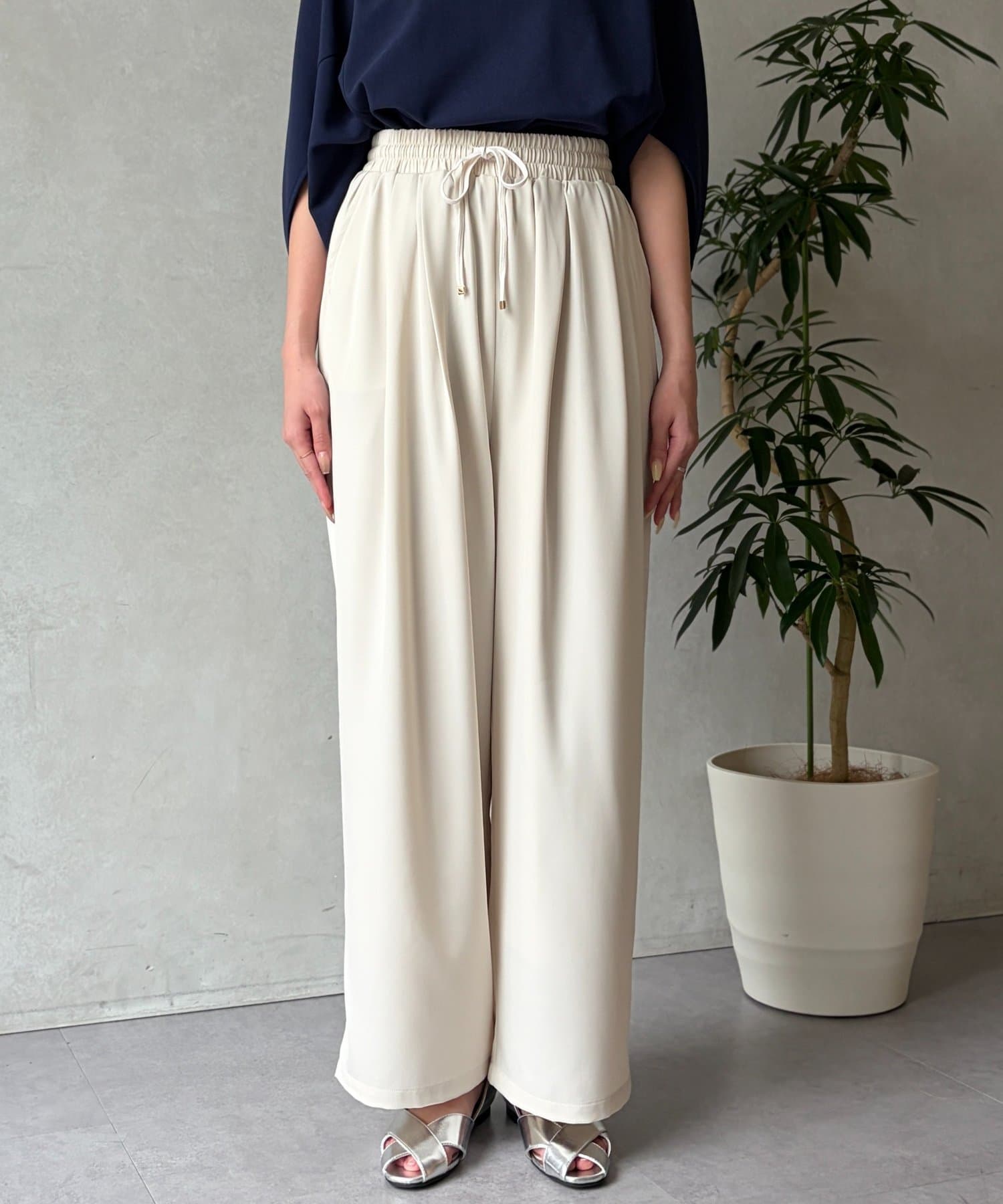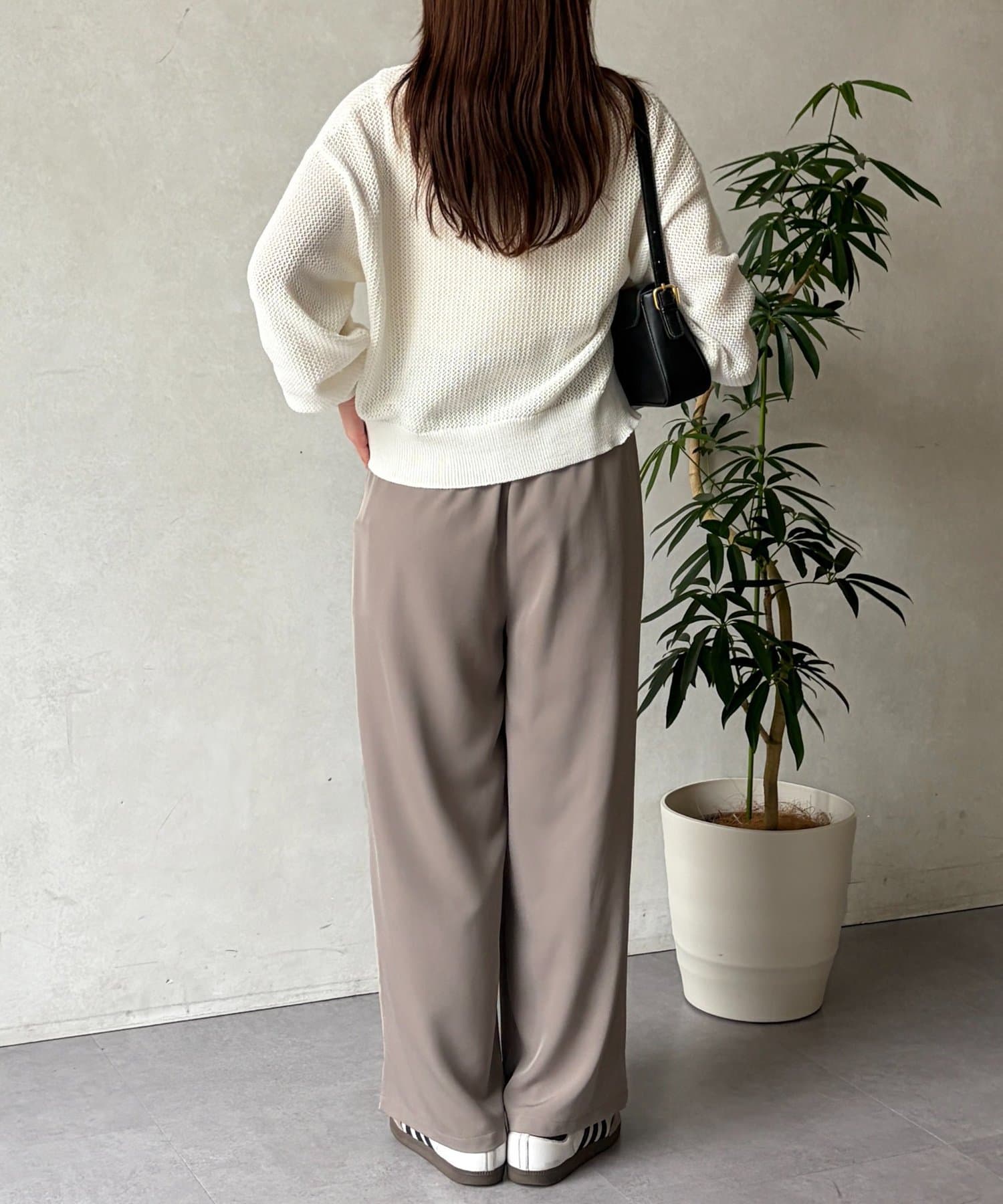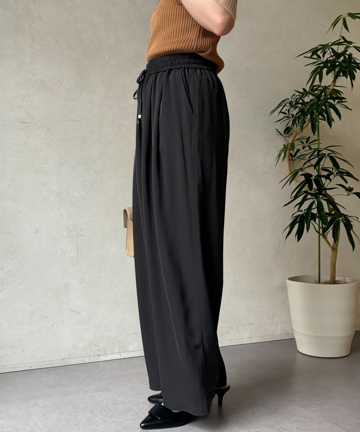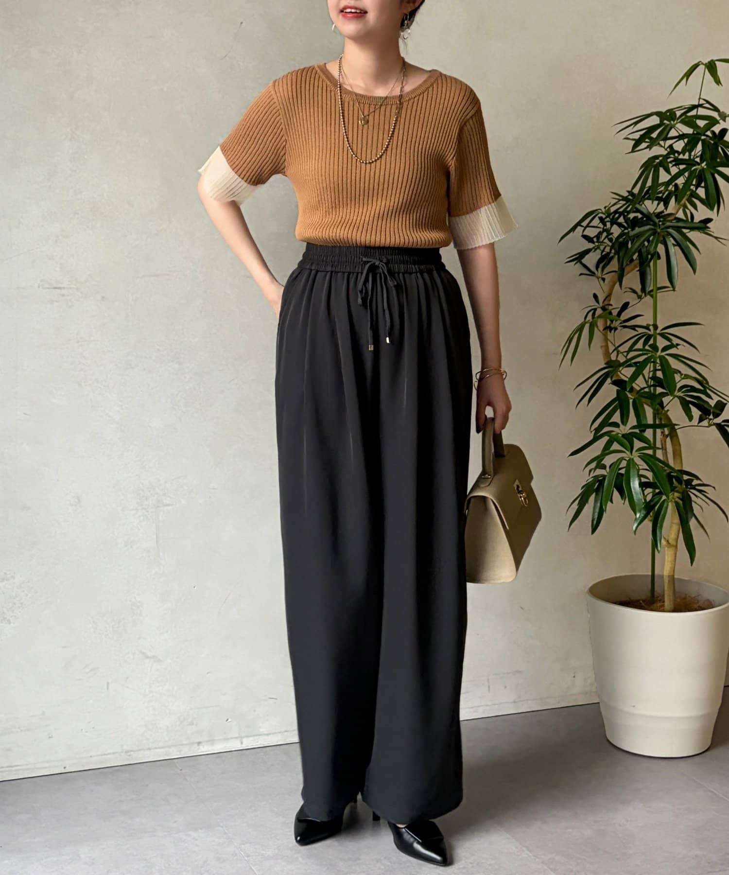 ストンと落ちるストレートシルエットが体型を選ばず履けるイージーパンツ