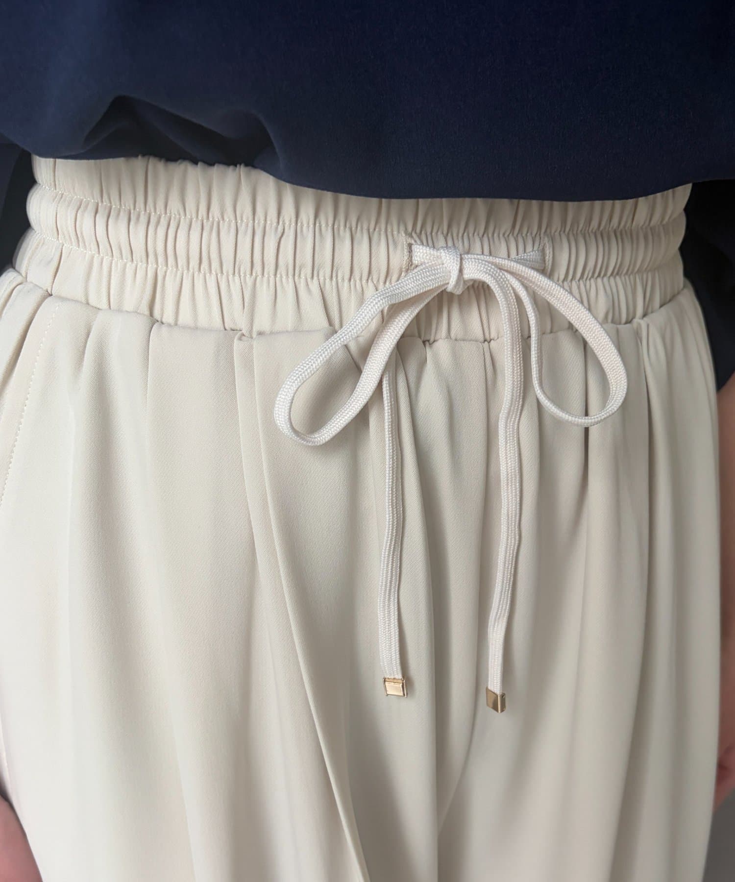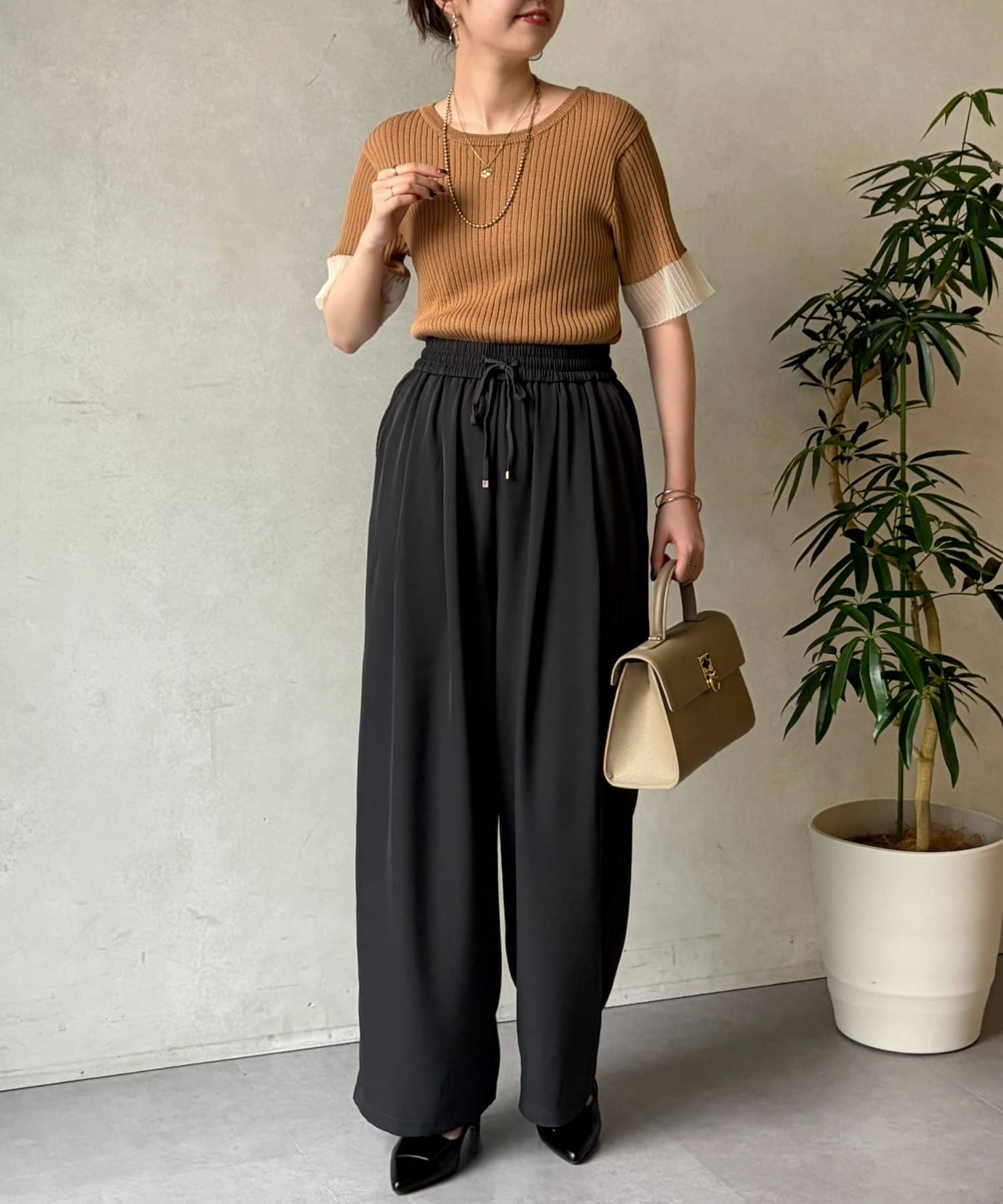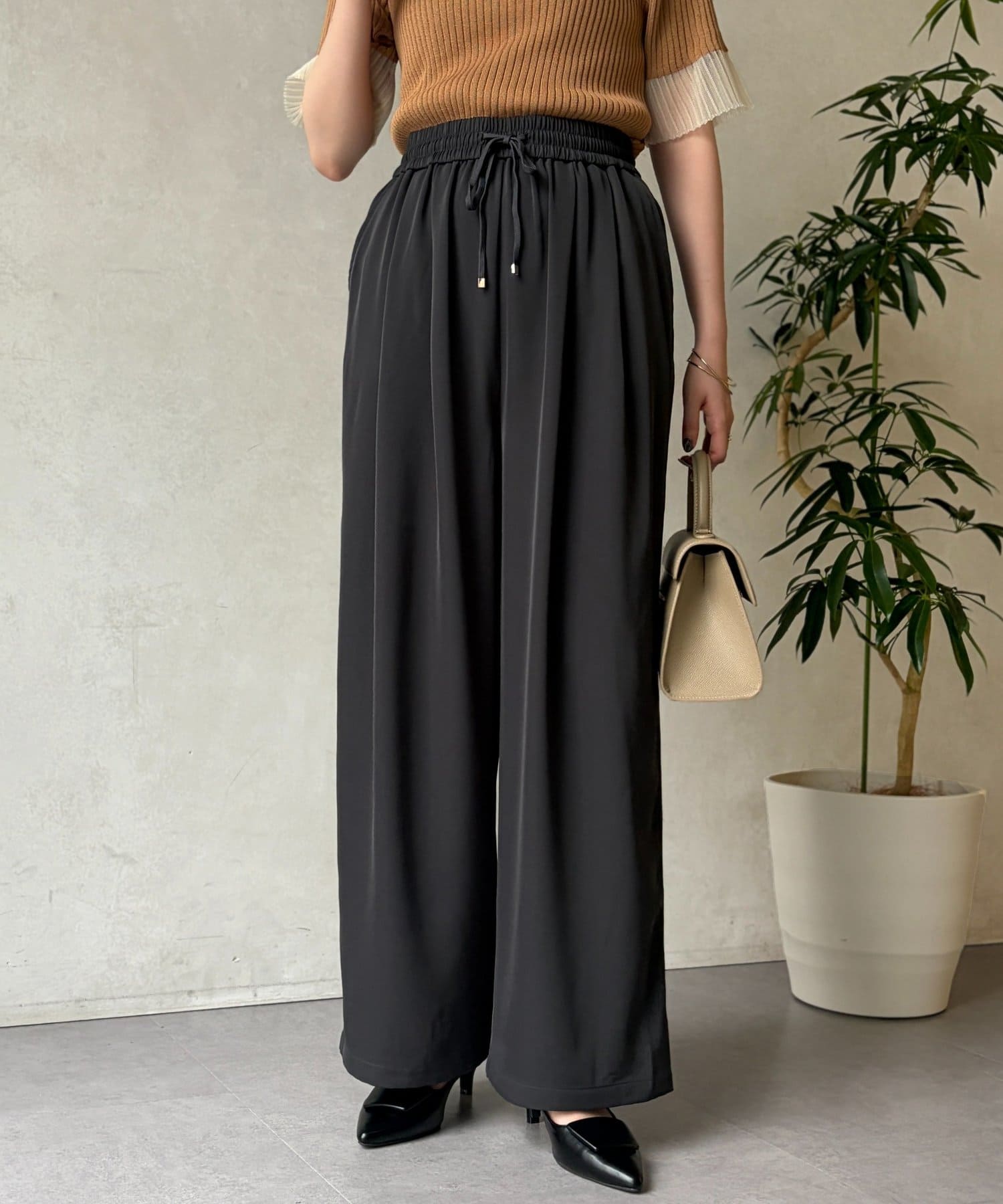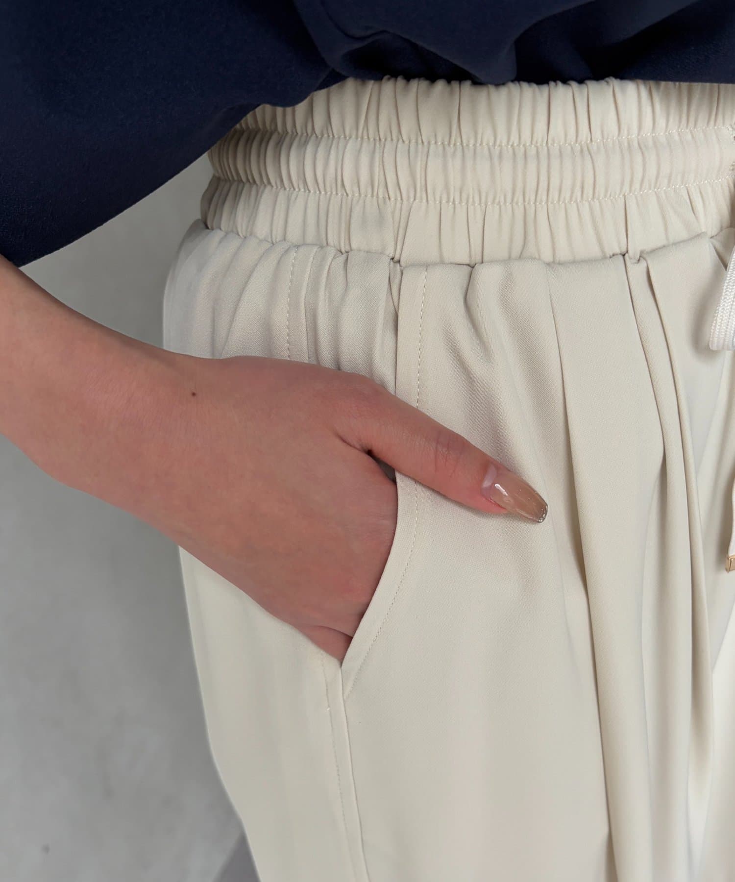 ウエストのシャーリングや細かなステッチワークがさりげないアクセントです。