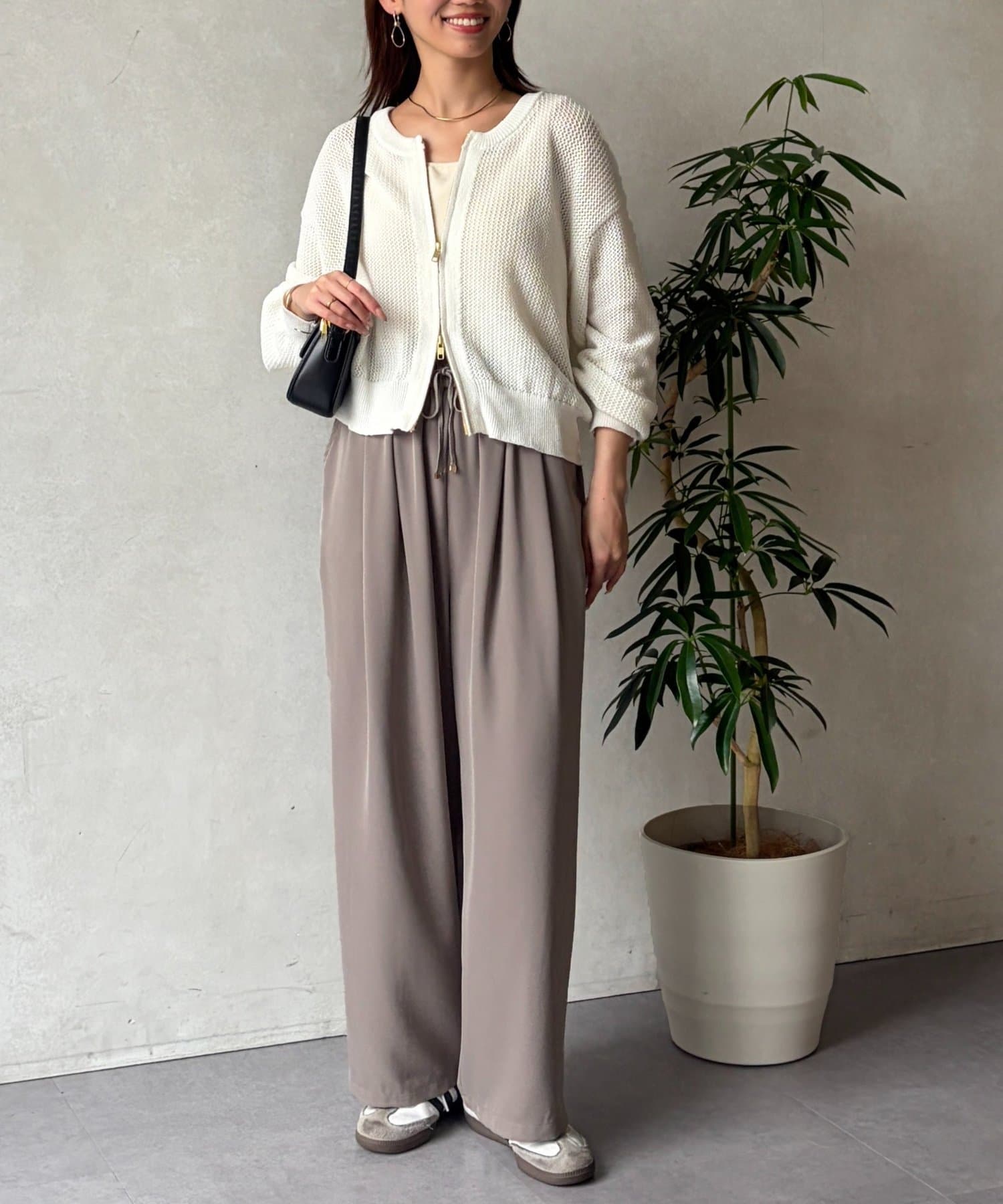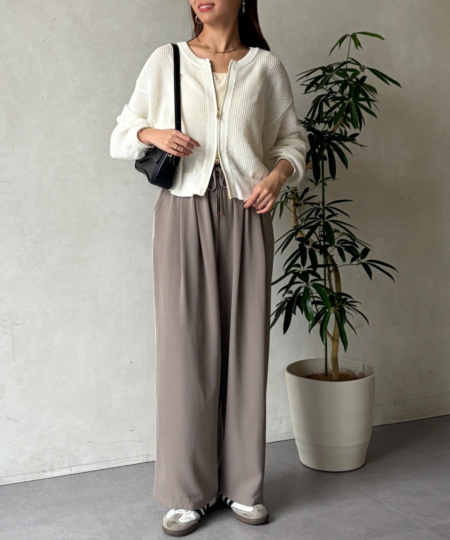キレイ目なニットなどもちろん、パーカーなどカジュアルなアイテムと合わせてキレイ目カジュアルミックスなコーデもおすすめです。