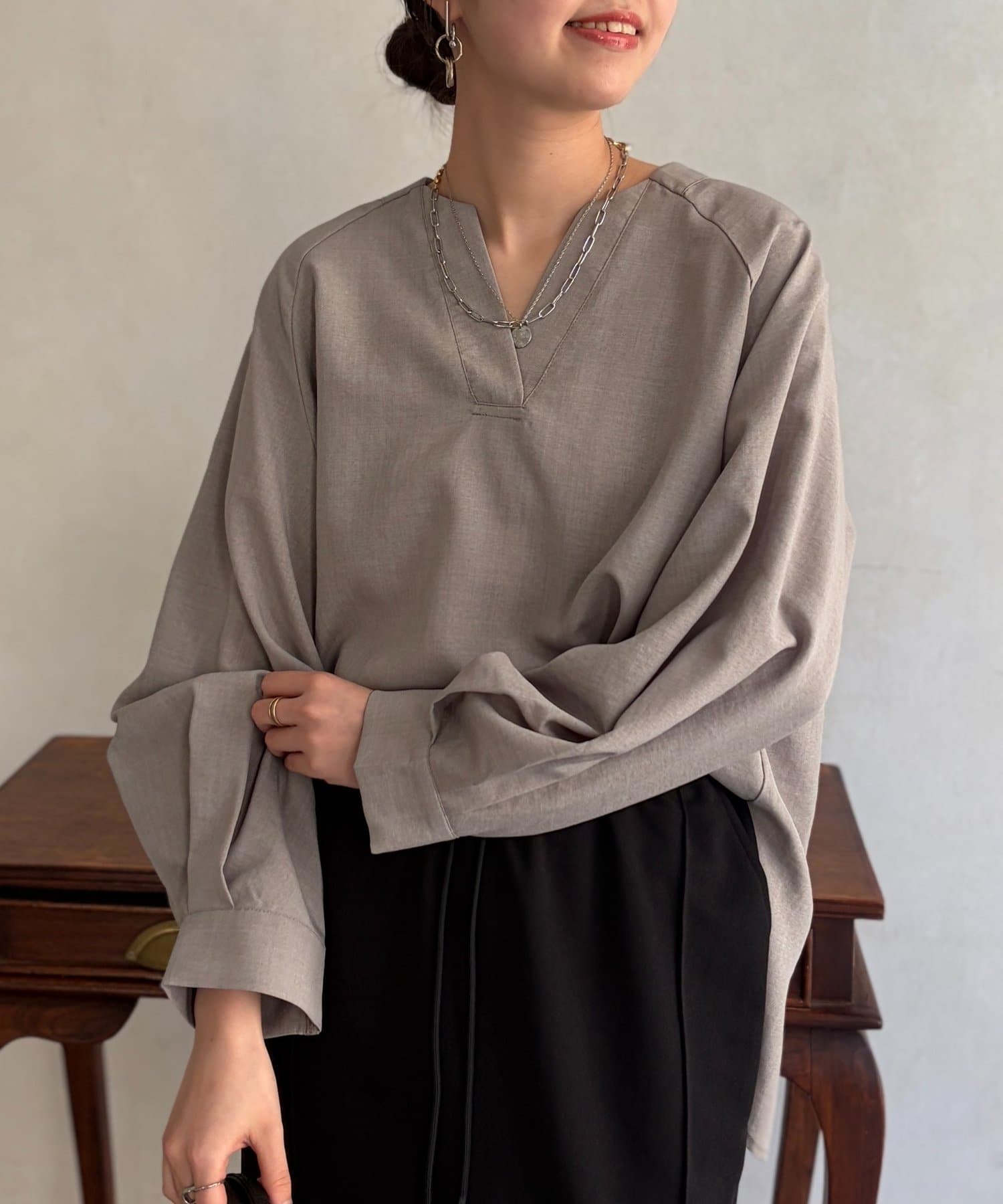 • Chez toi(シェトワ) リネンライクスキッパーブラウス