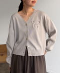 立体的なロゴがアクセントになるボレロニットカーディガン