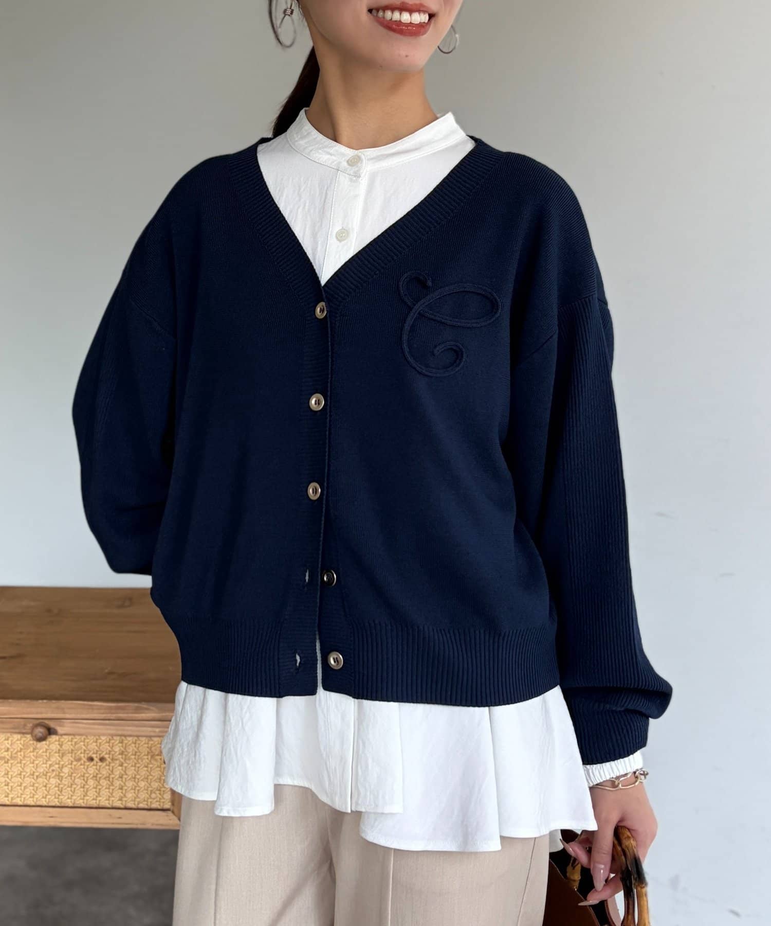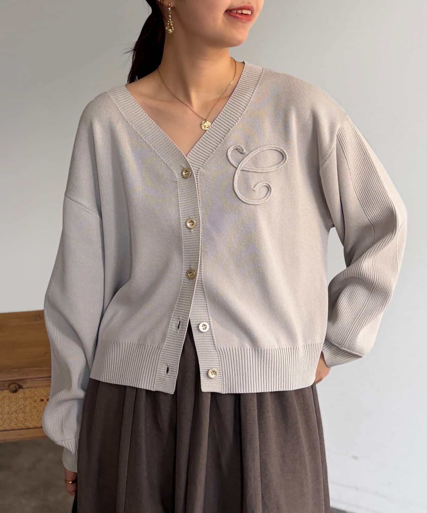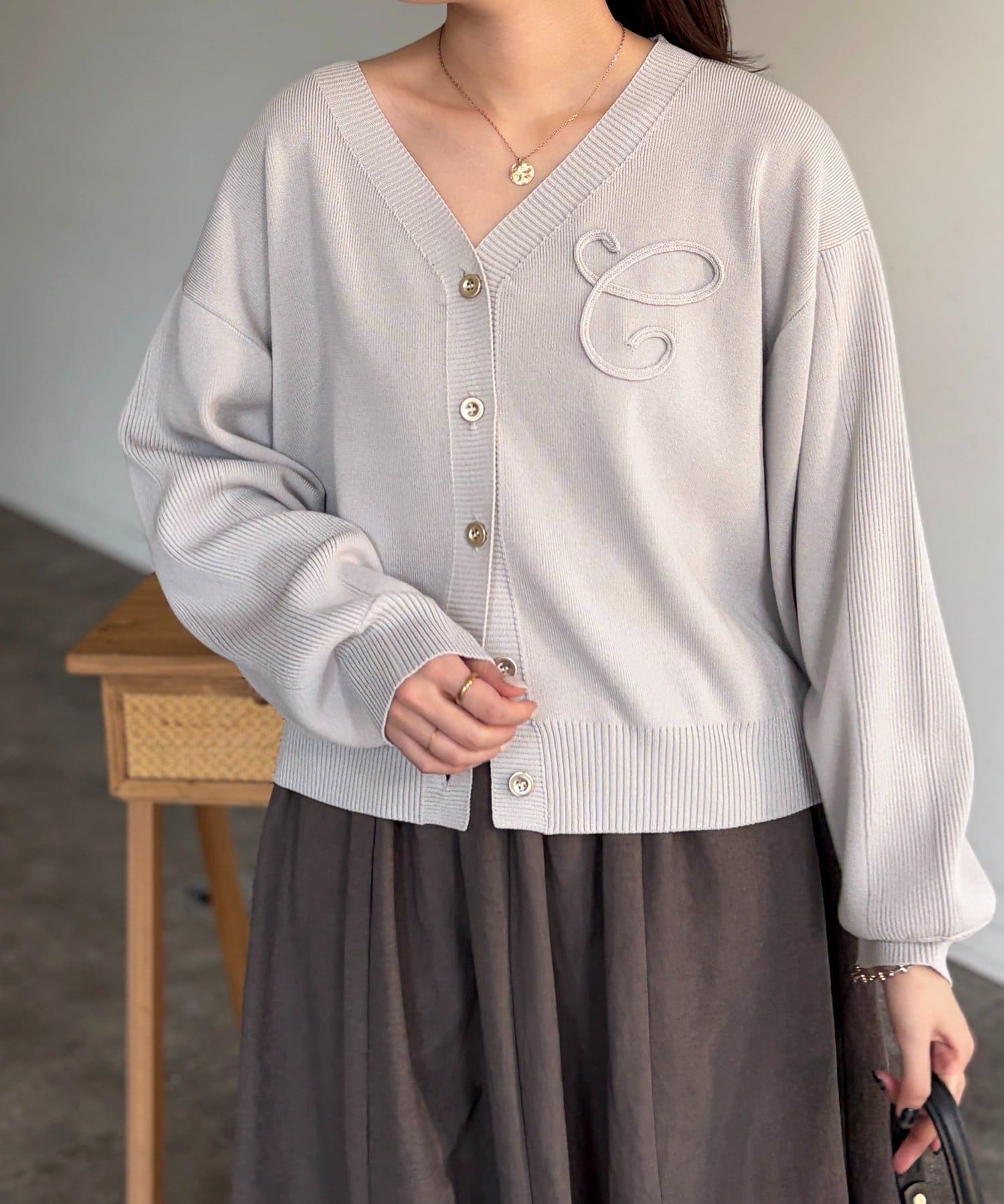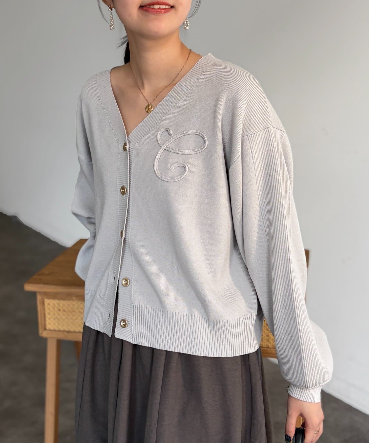 ブランドロゴのイニシャル『C』をあしらった大人可愛いカーディガン。