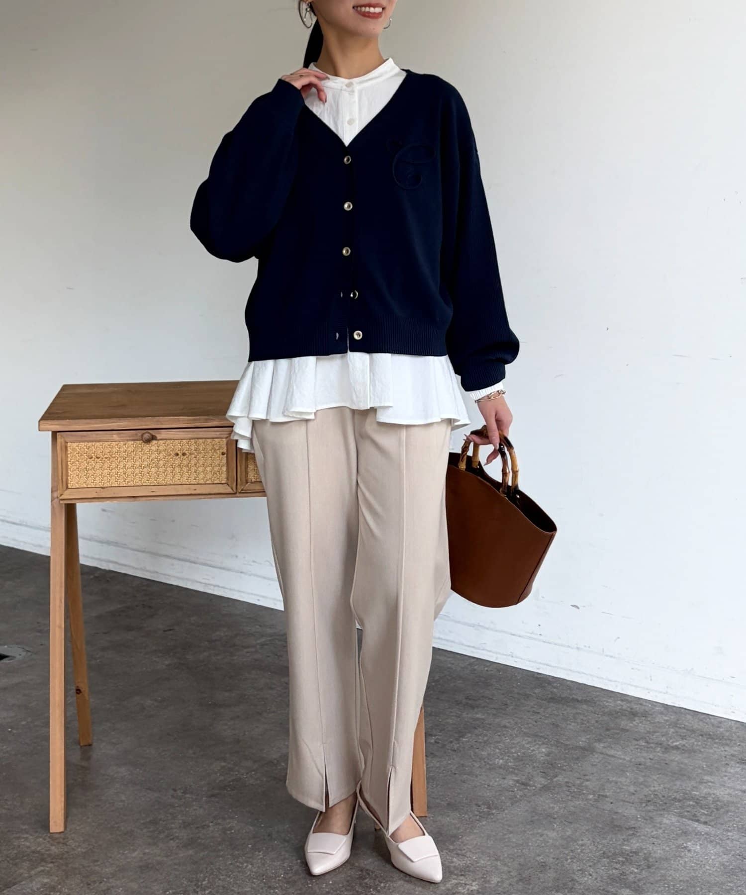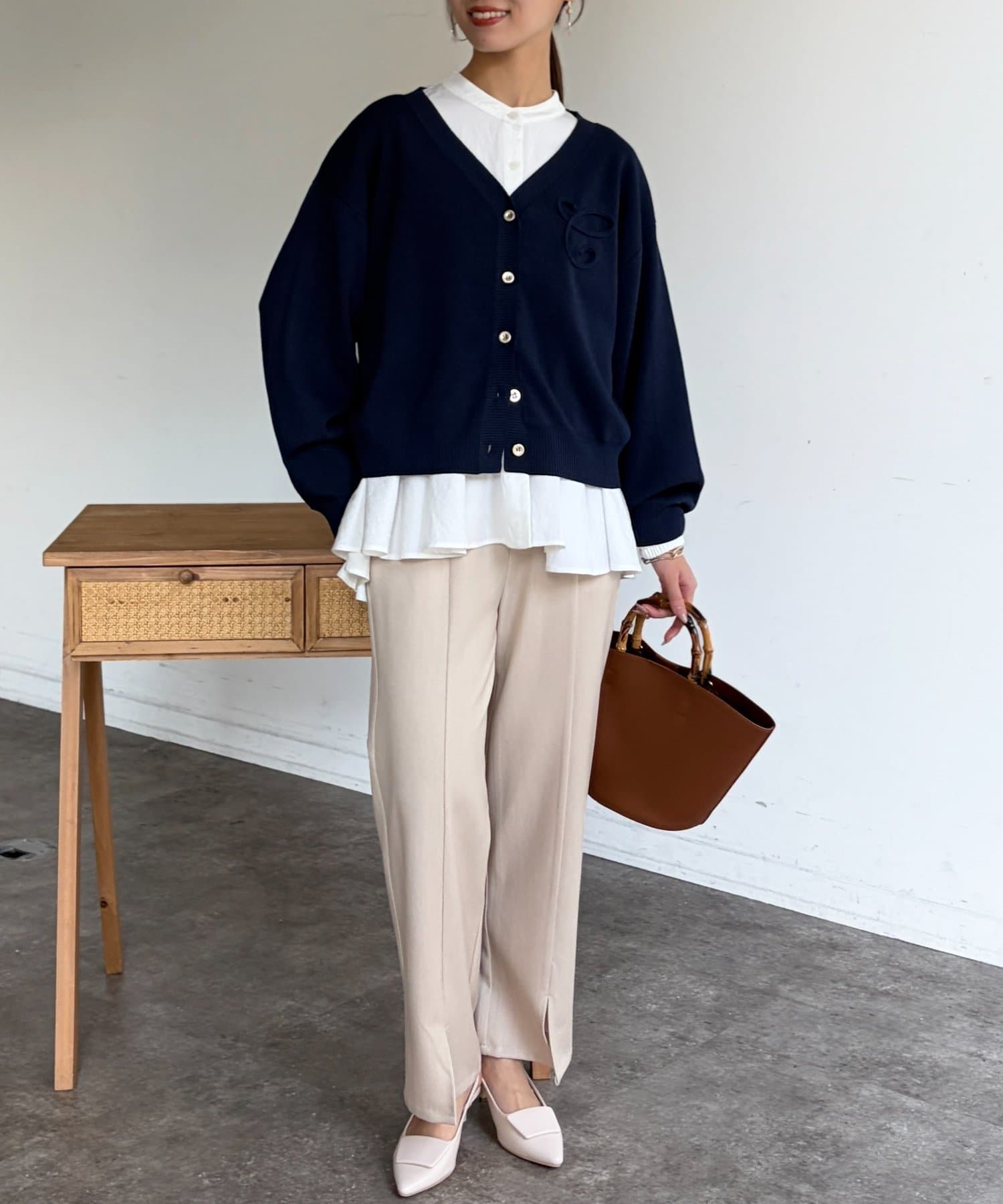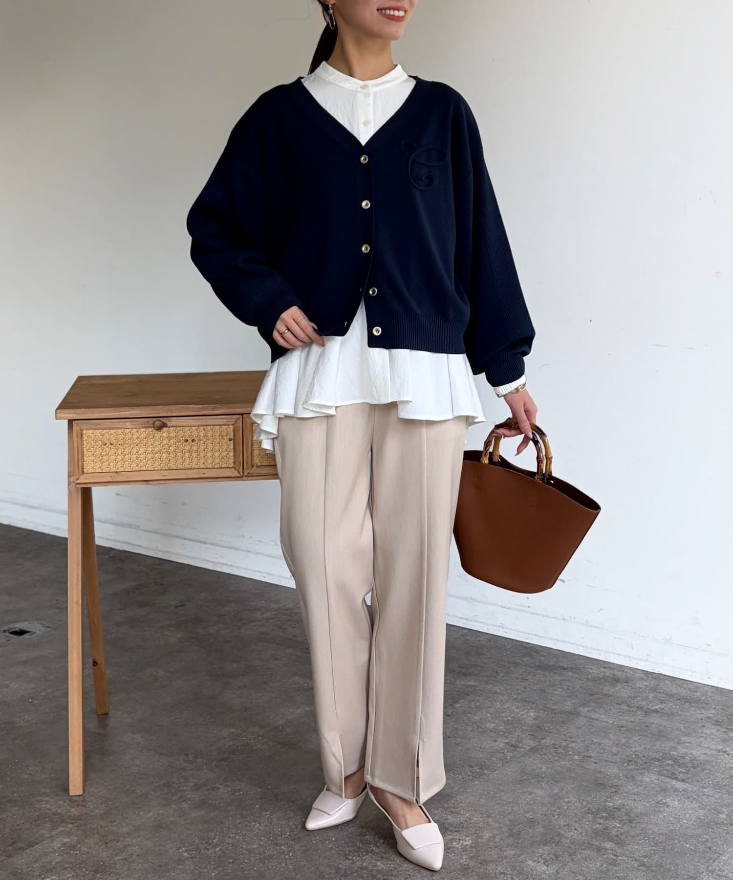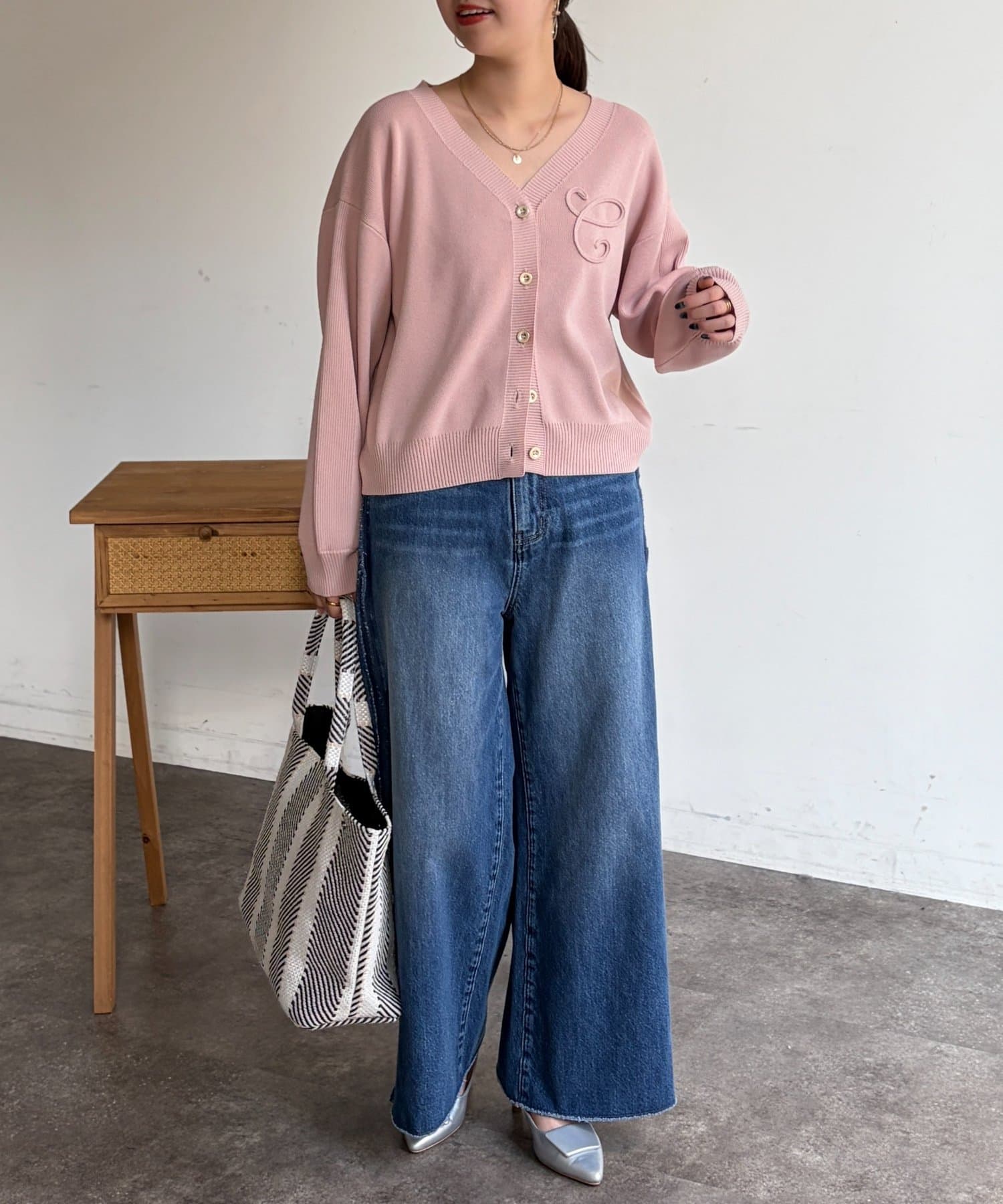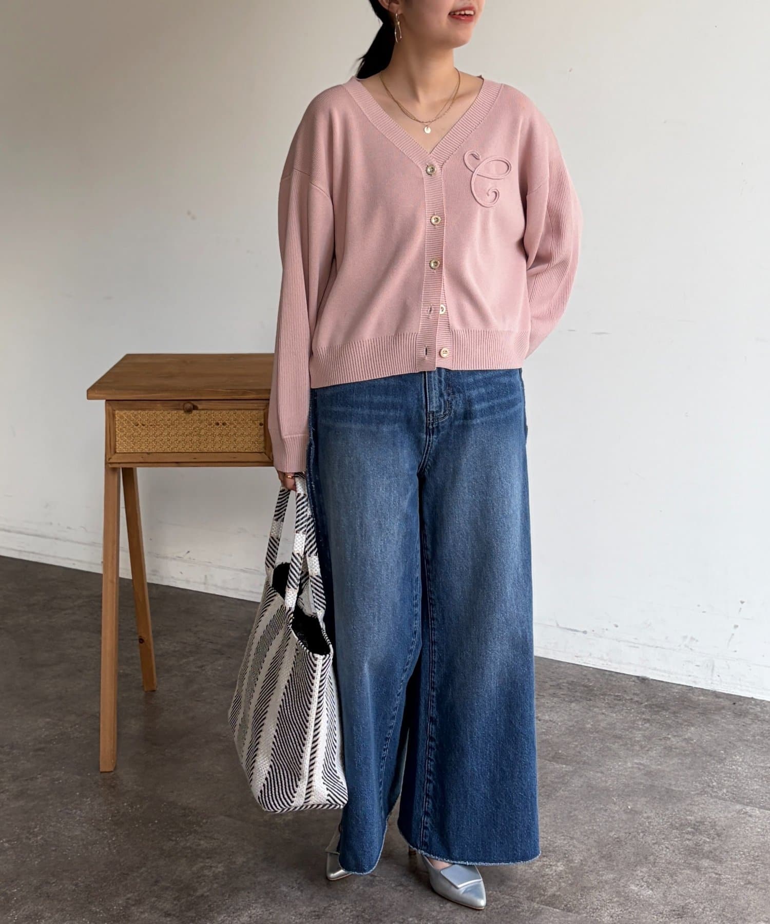 ブランドロゴのイニシャル『C』をあしらった大人可愛いカーディガン。