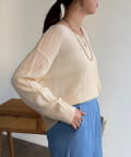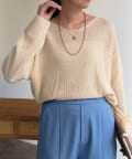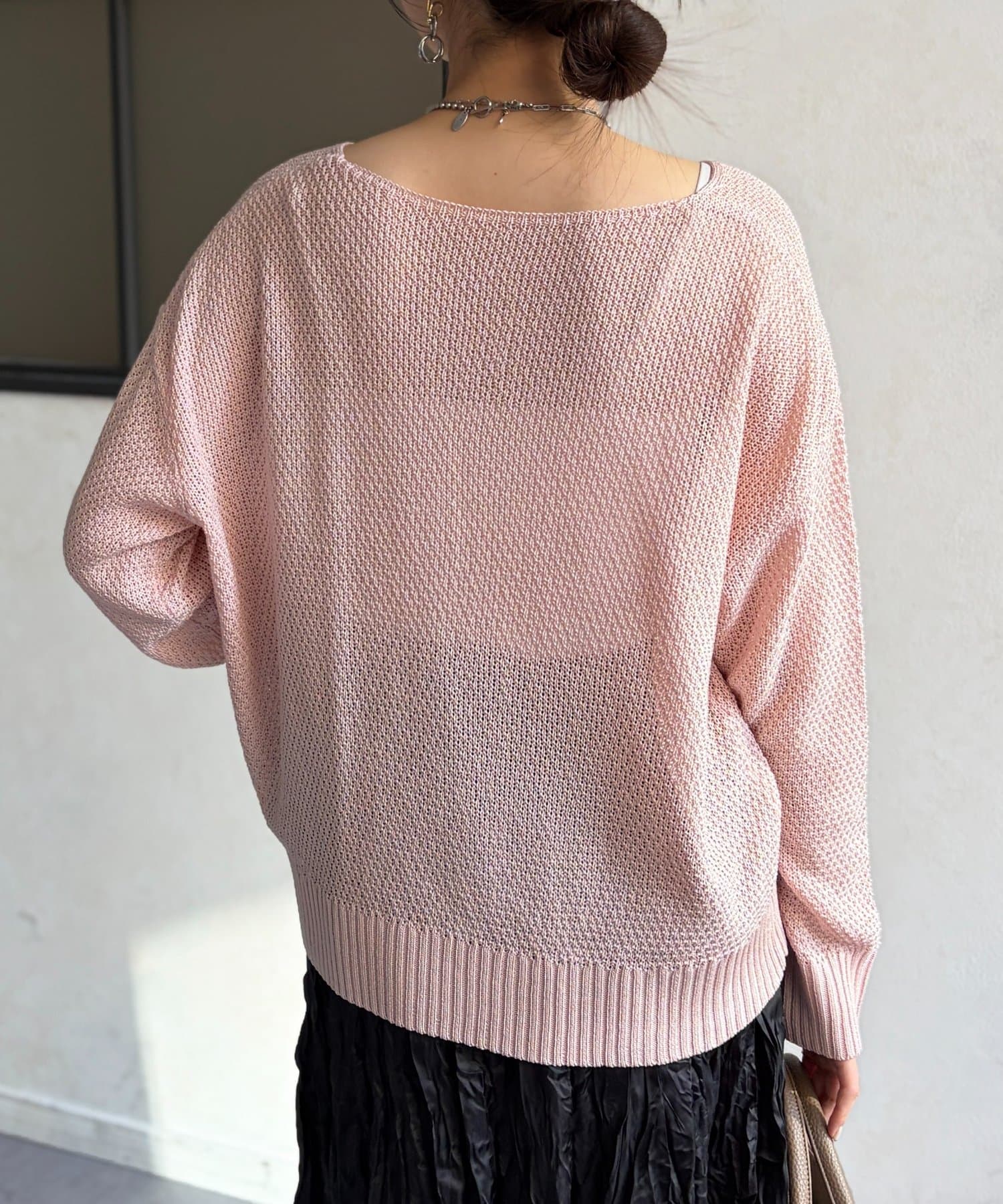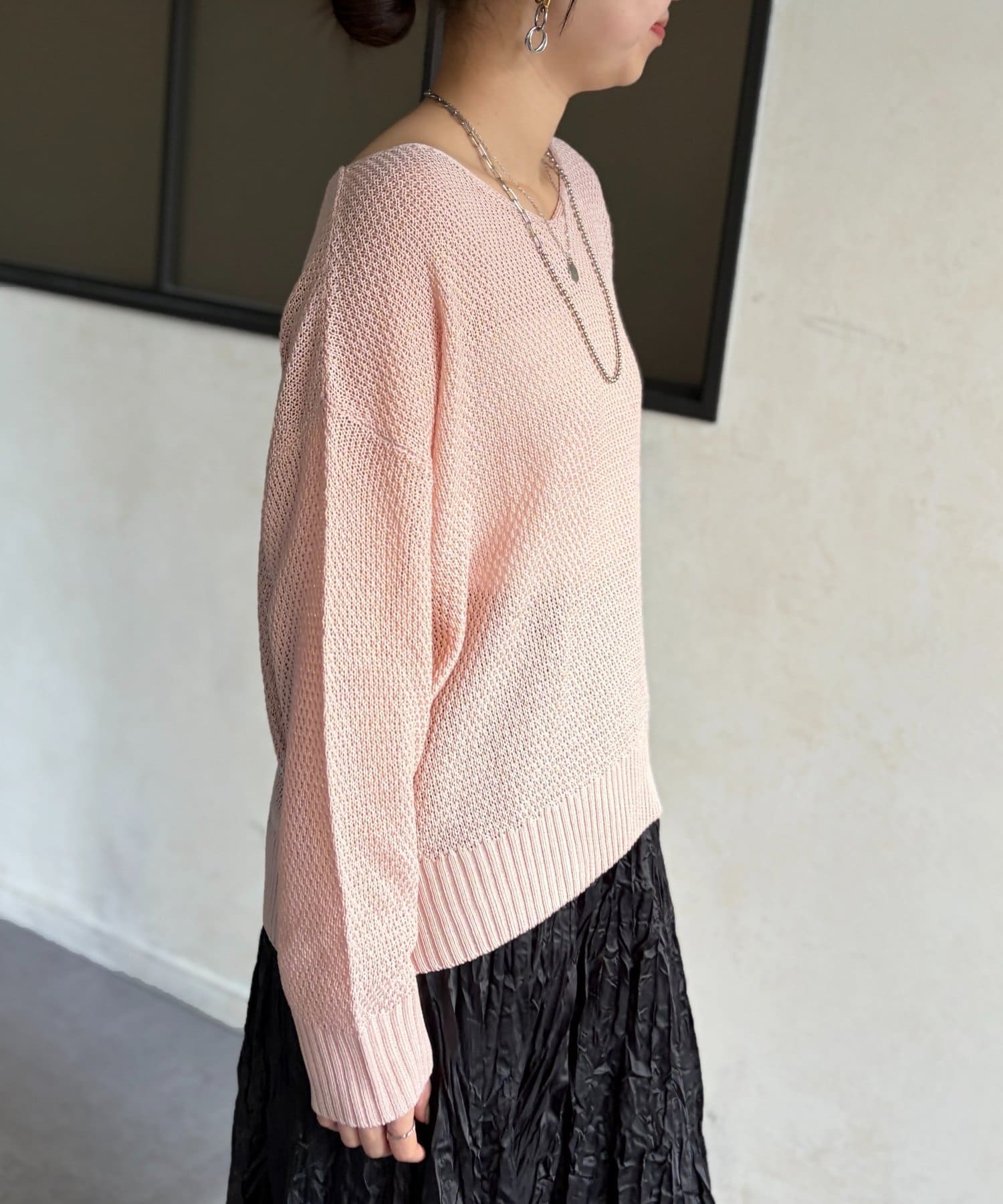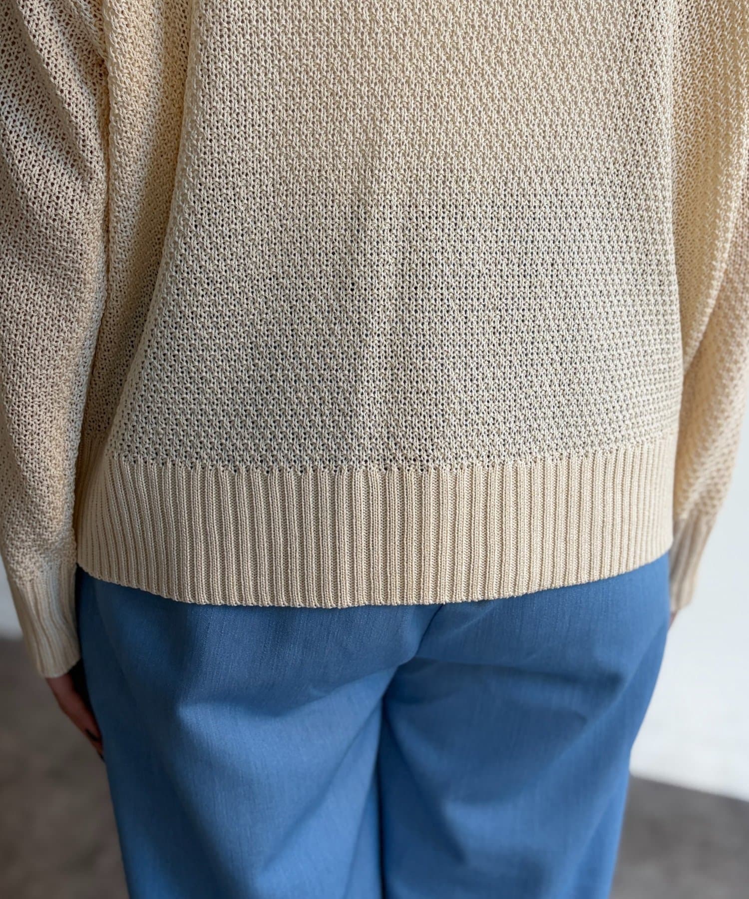 開きすぎないVネックと程よいシアー感が大人の抜け感をプラス