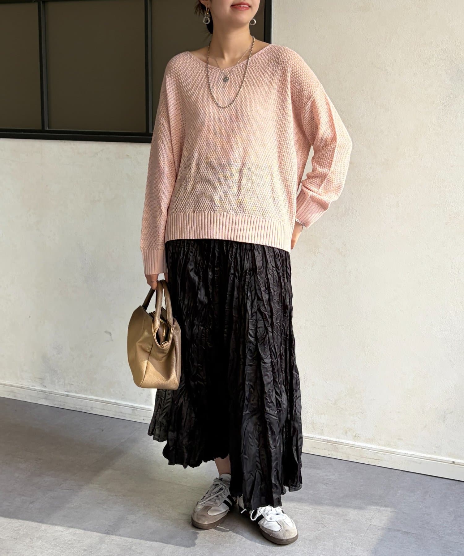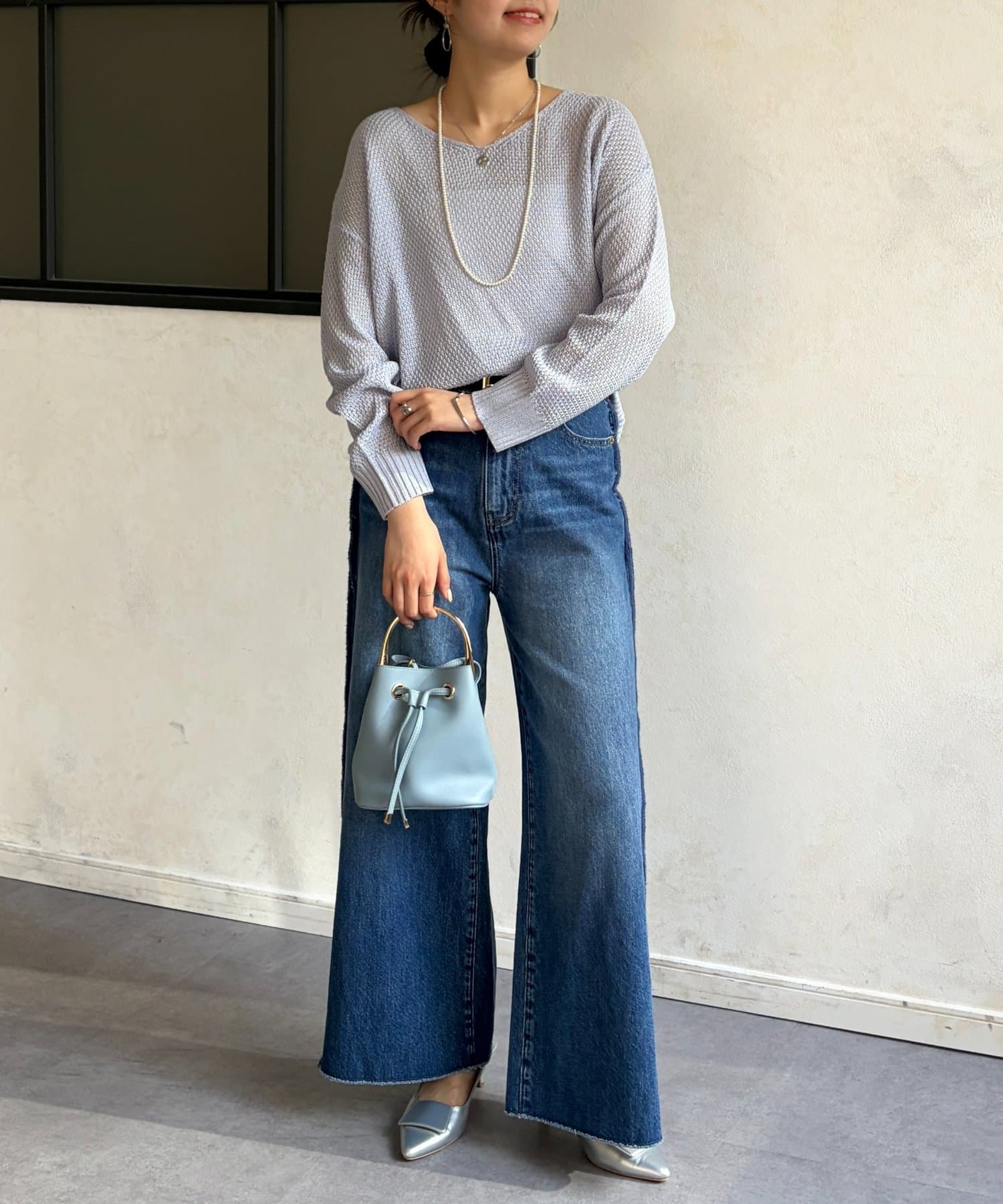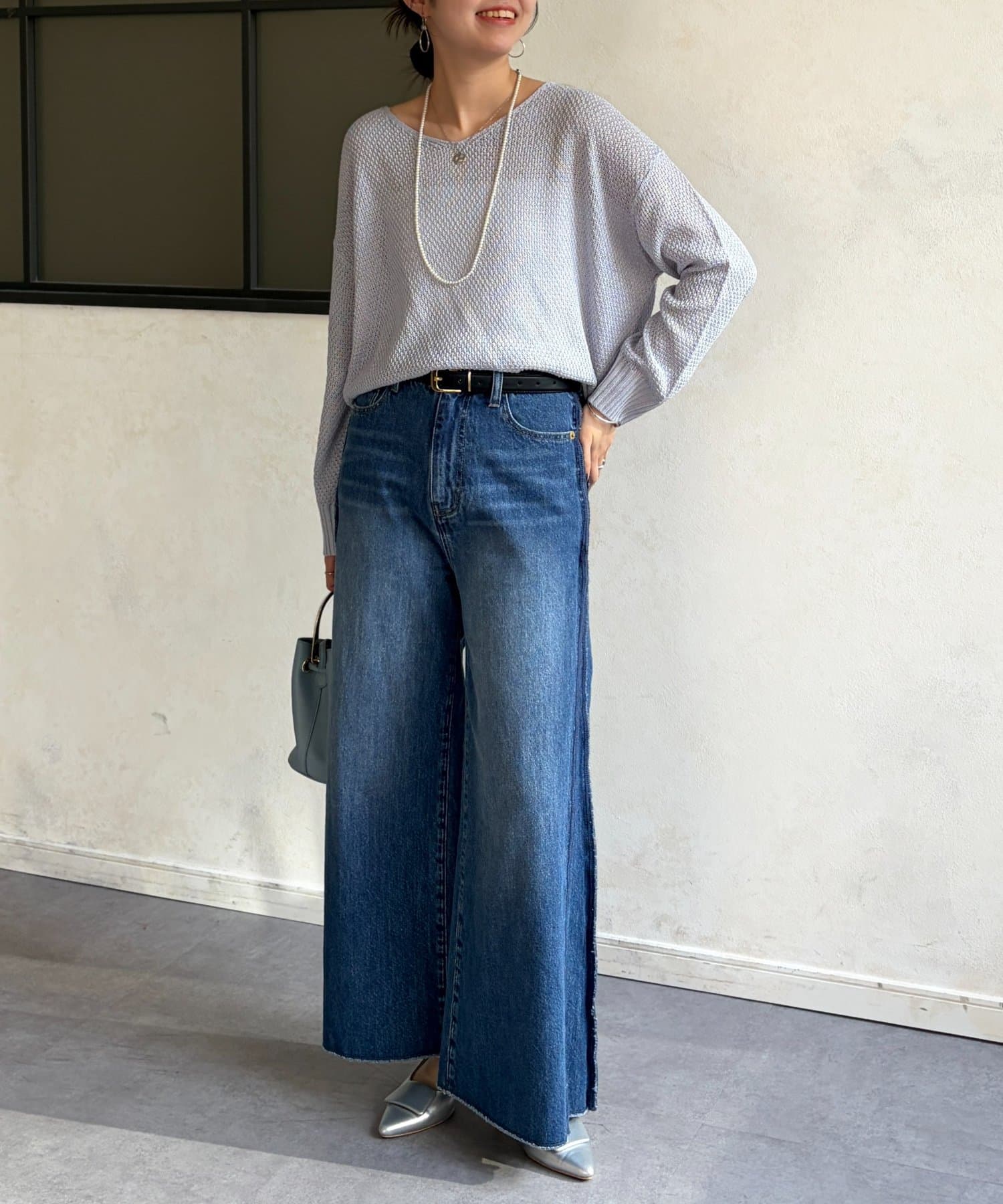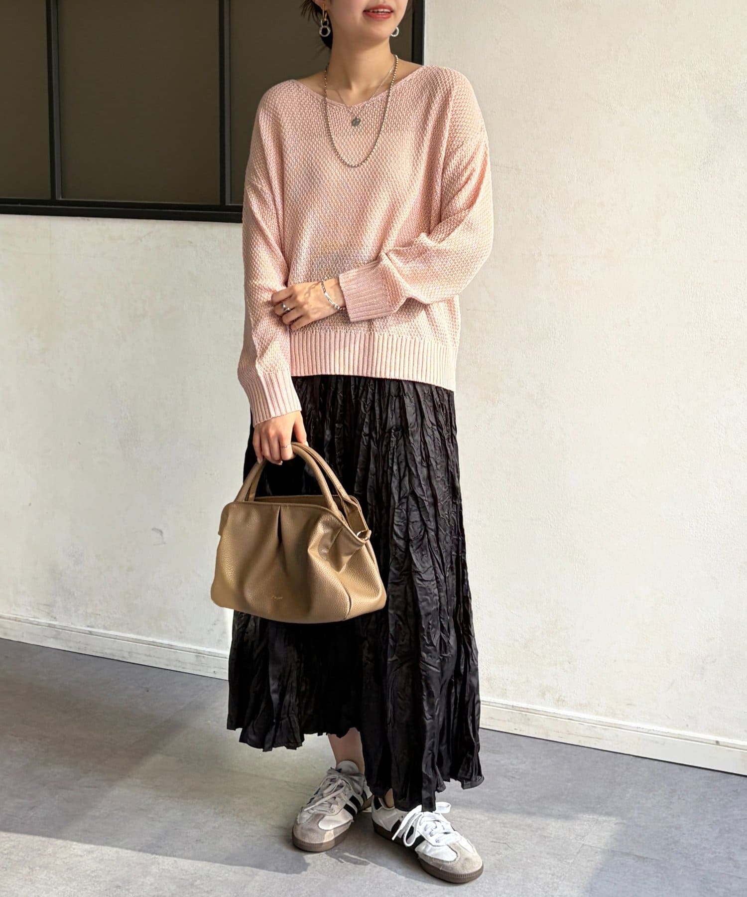 スカート、パンツ、デニムなど幅広いスタイリングにマッチするアイテムです。
