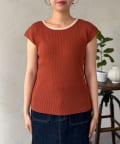配色フレンチスリーブニット
