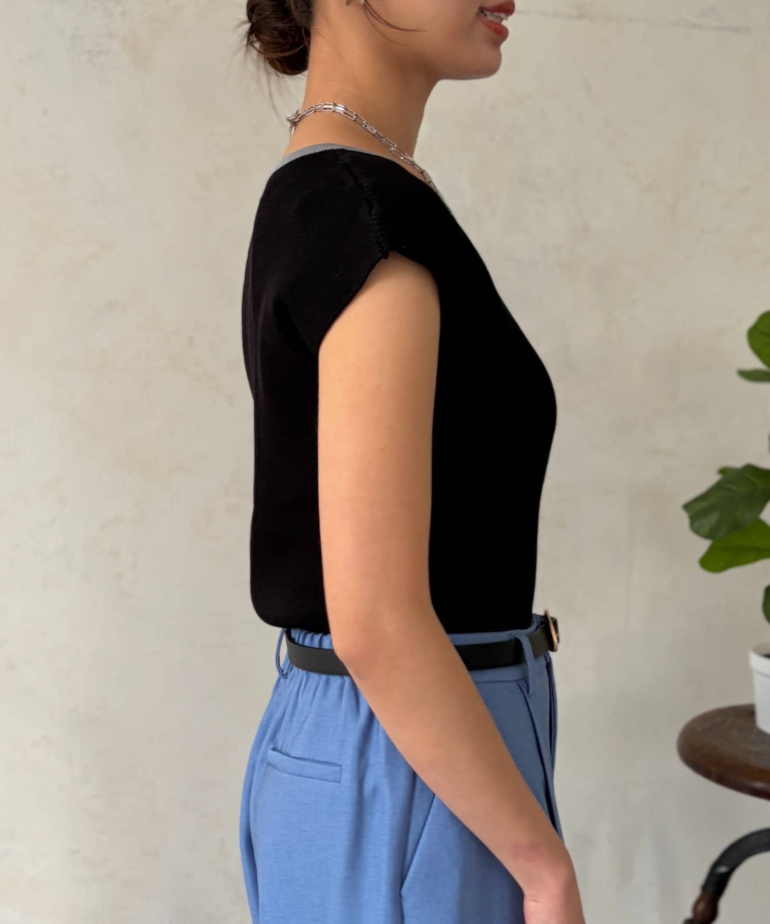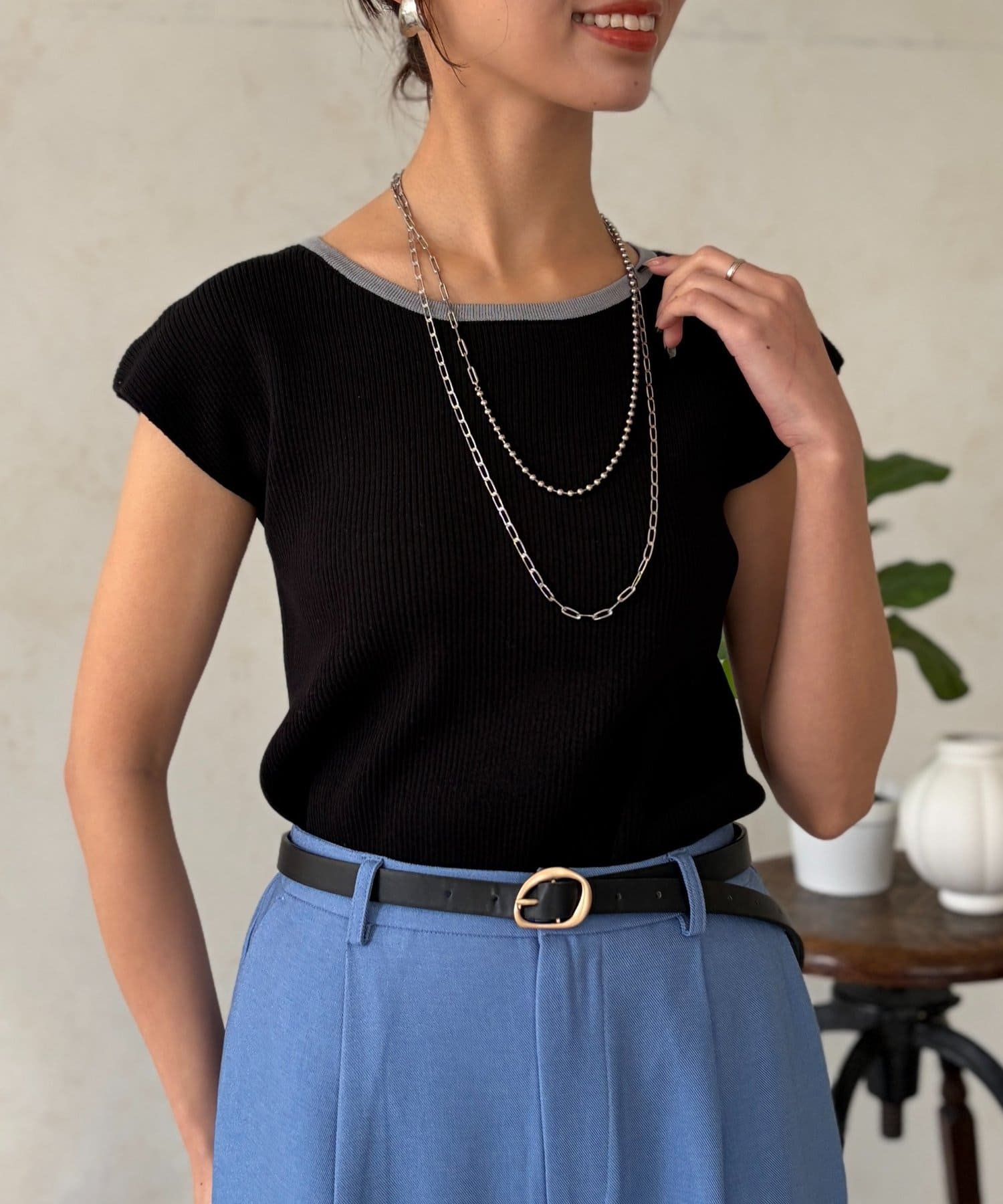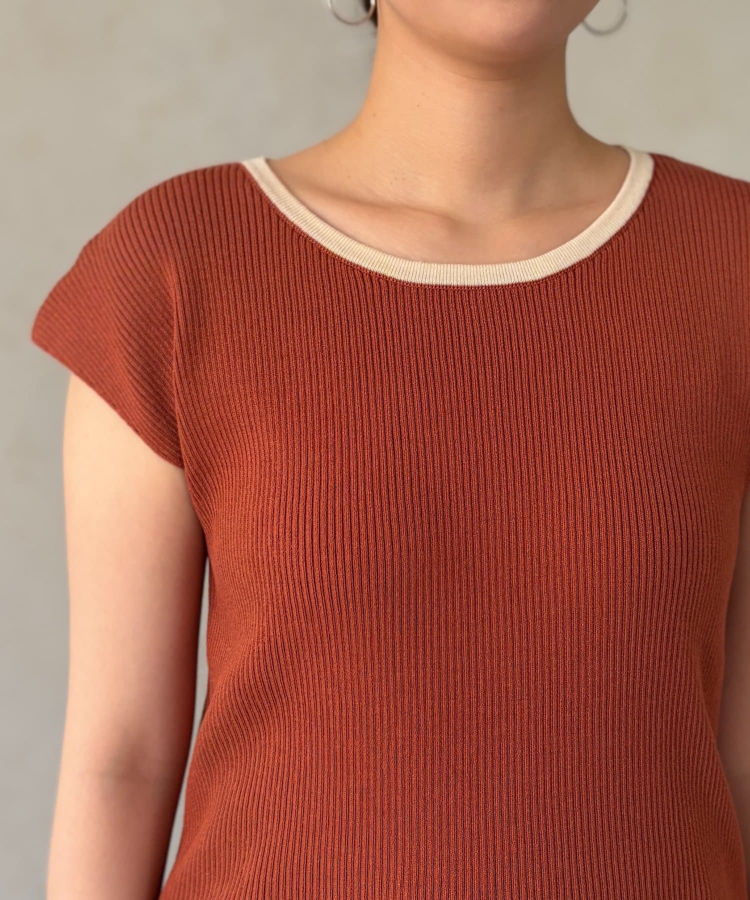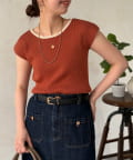 • Chez toi(シェトワ) 配色フレンチスリーブニット