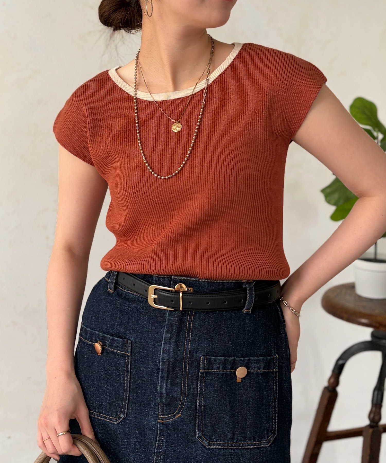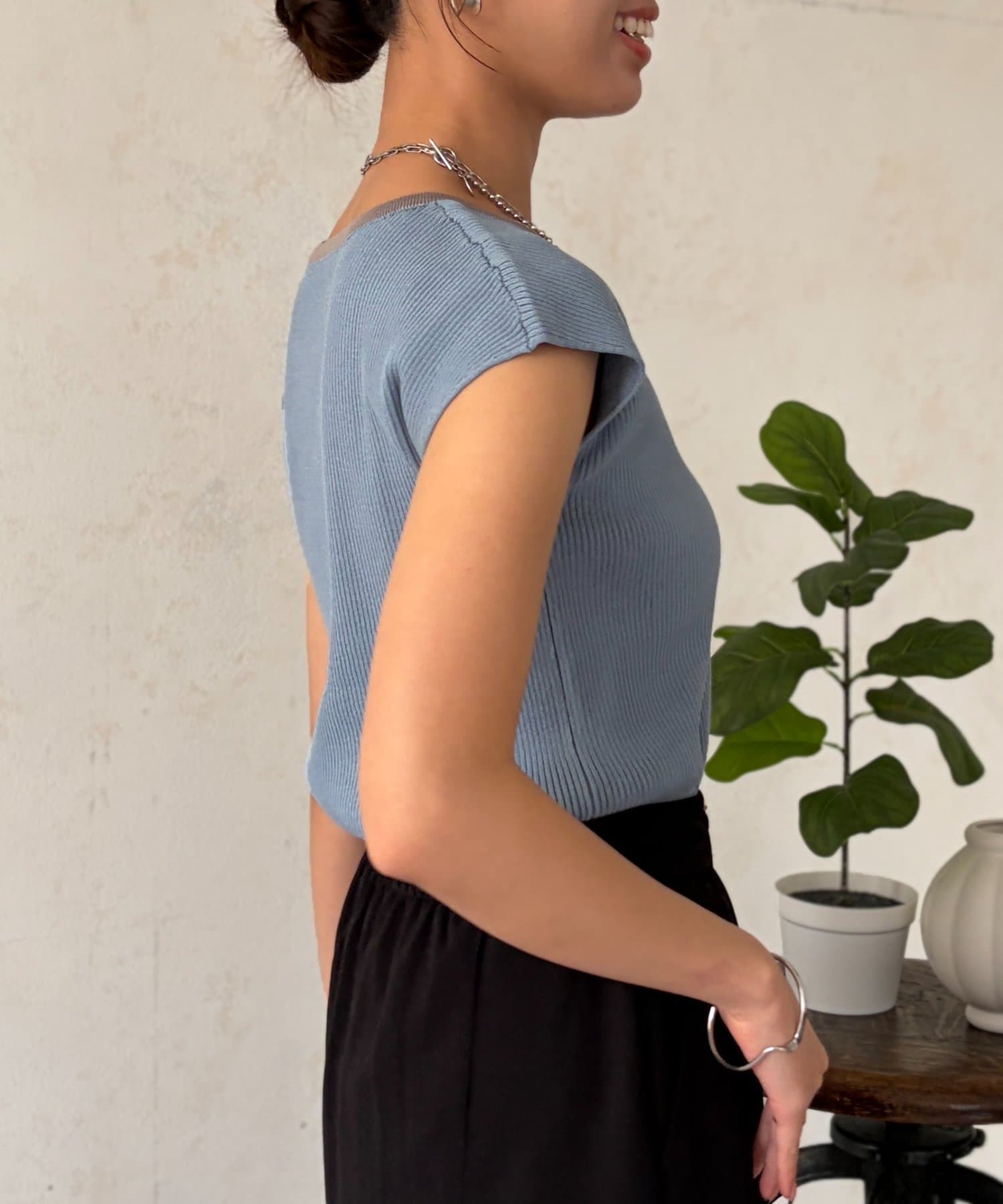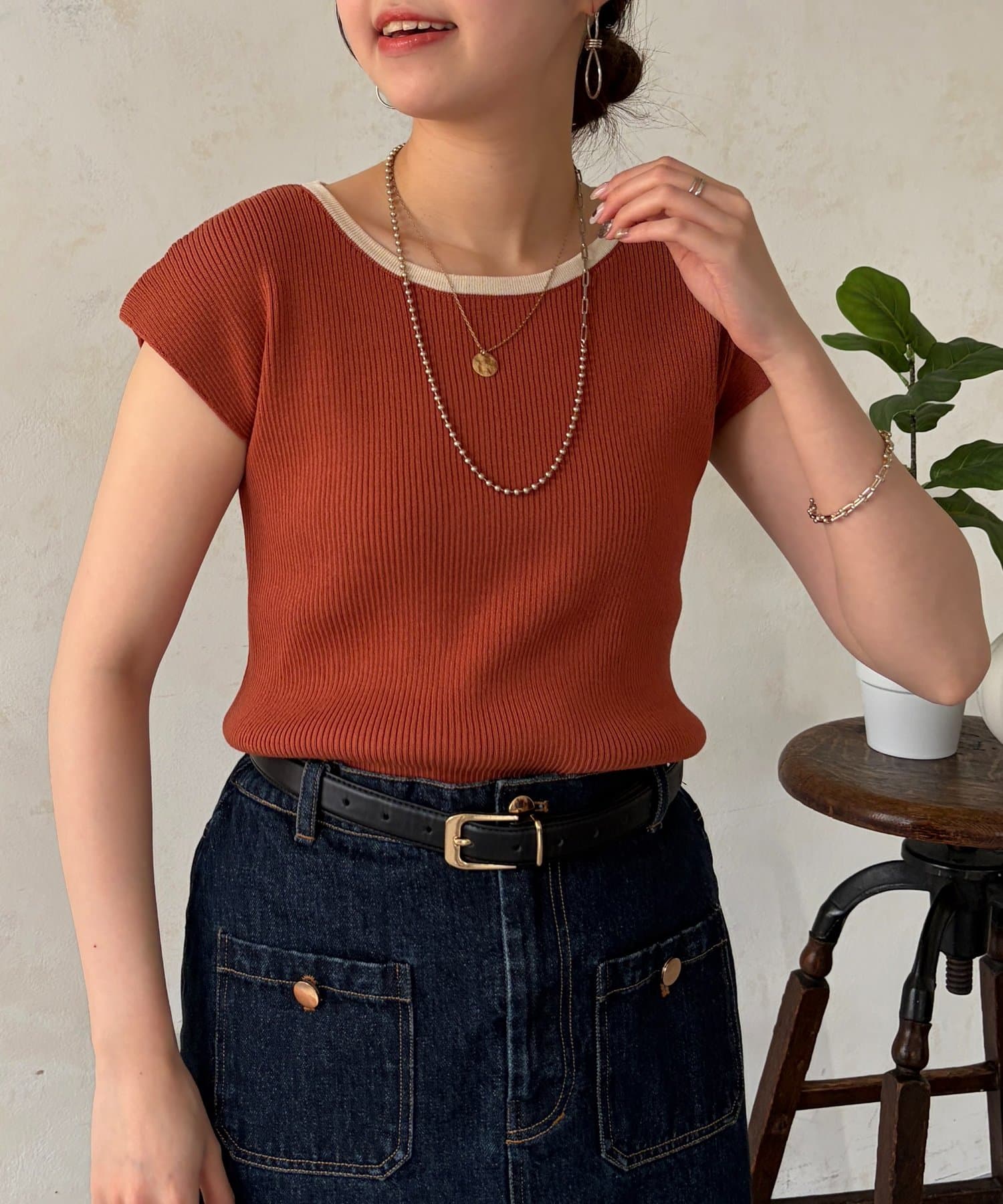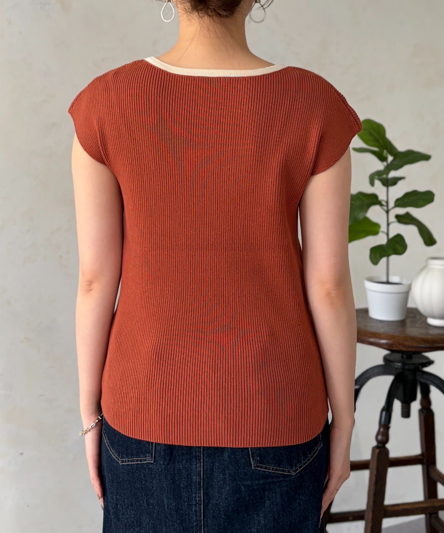 • Chez toi(シェトワ) 配色フレンチスリーブニット