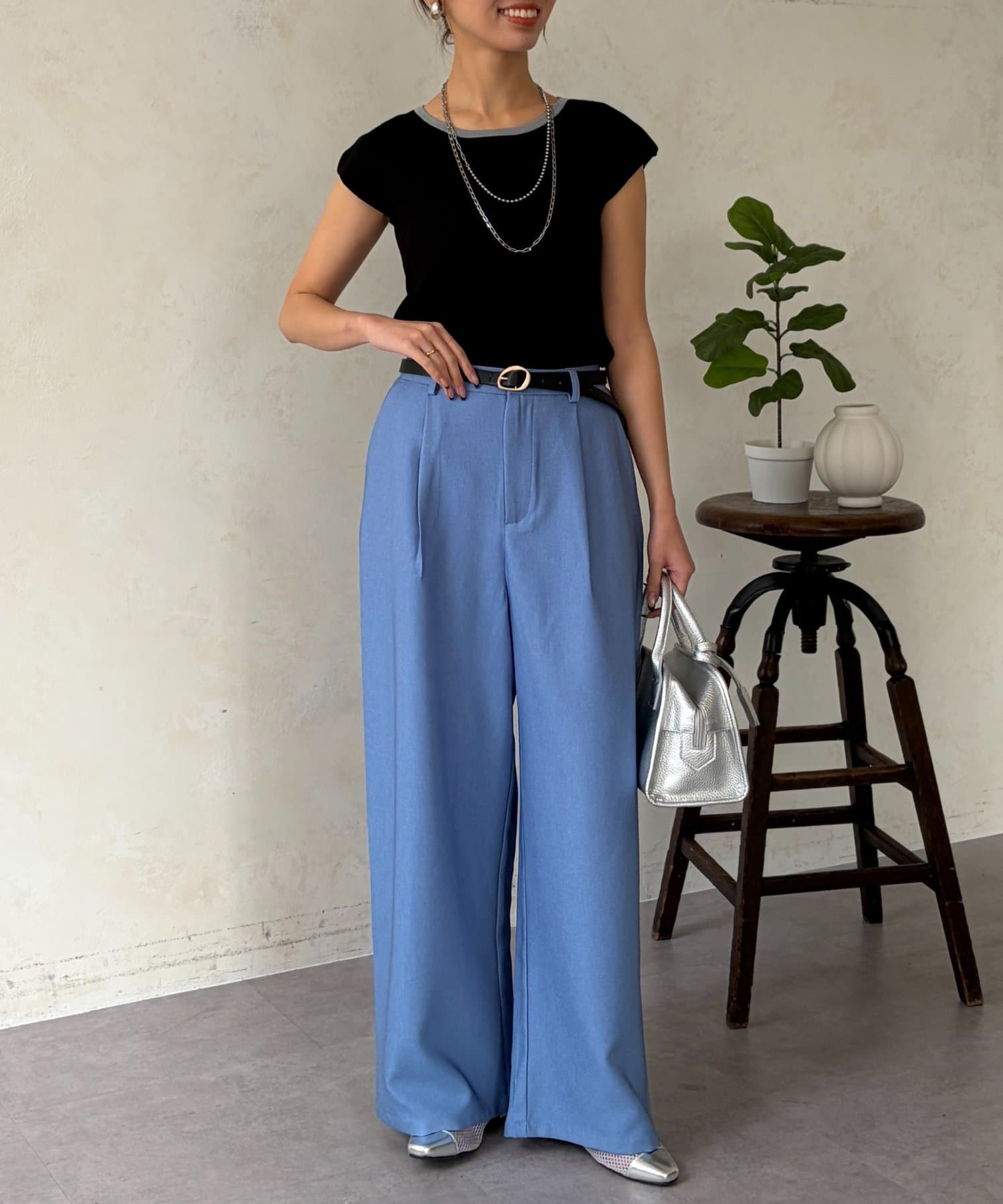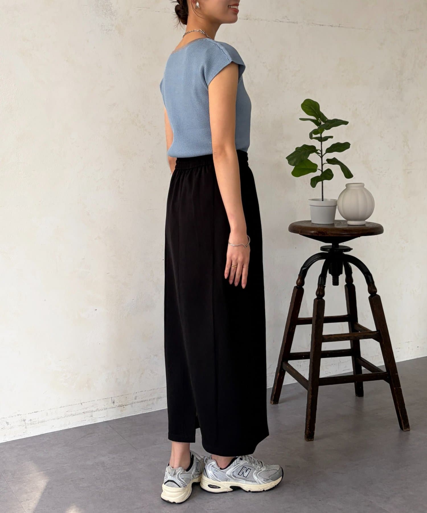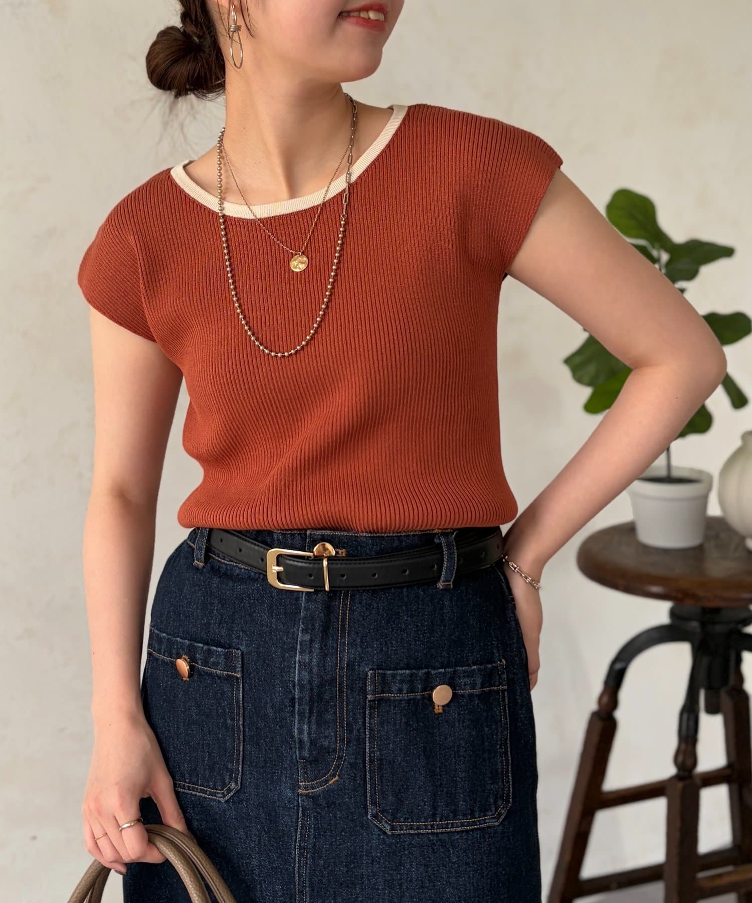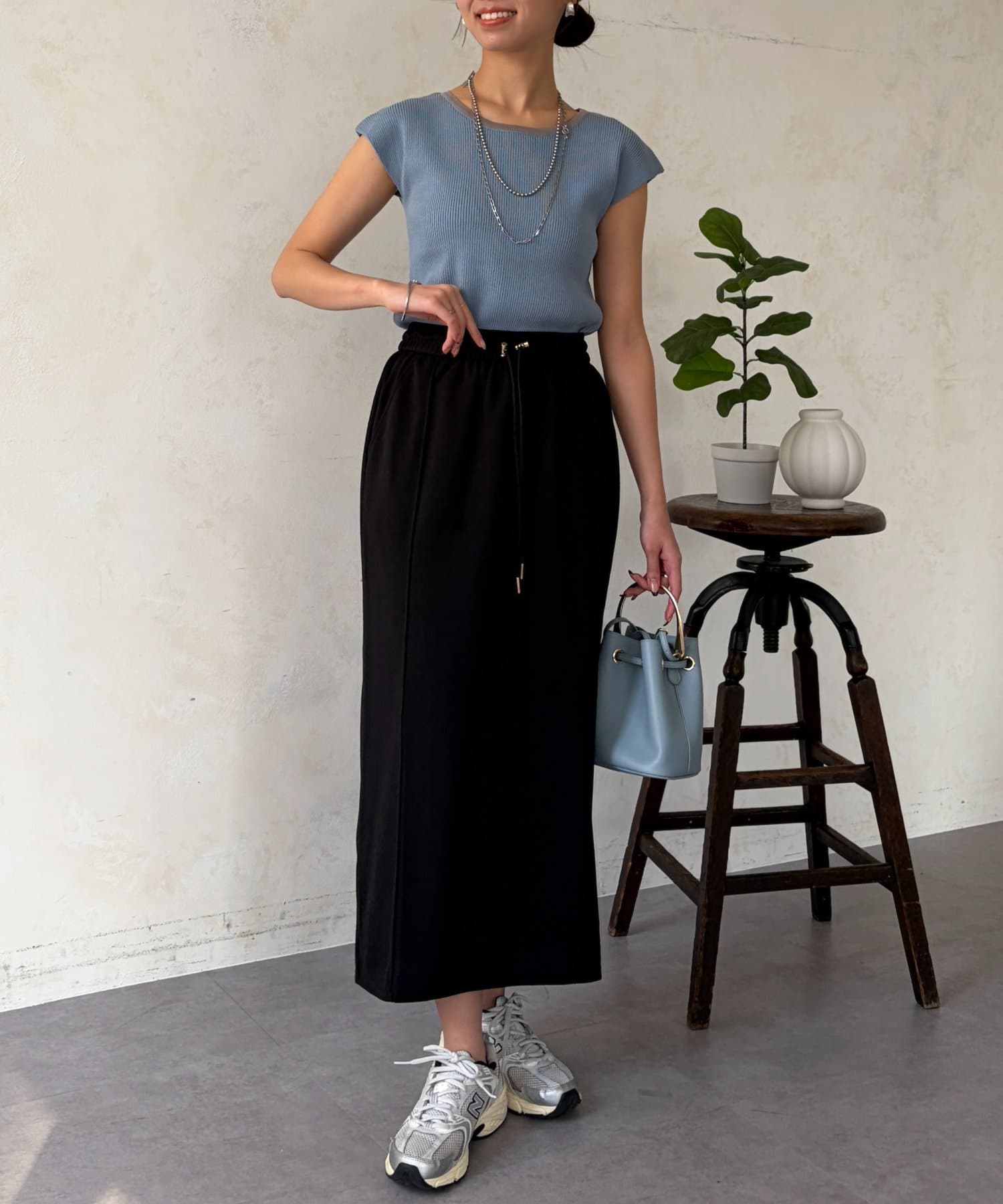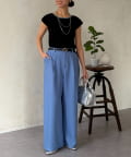 フレアスカートやワイドパンツなど、どんなボトムスとも好相性◎
