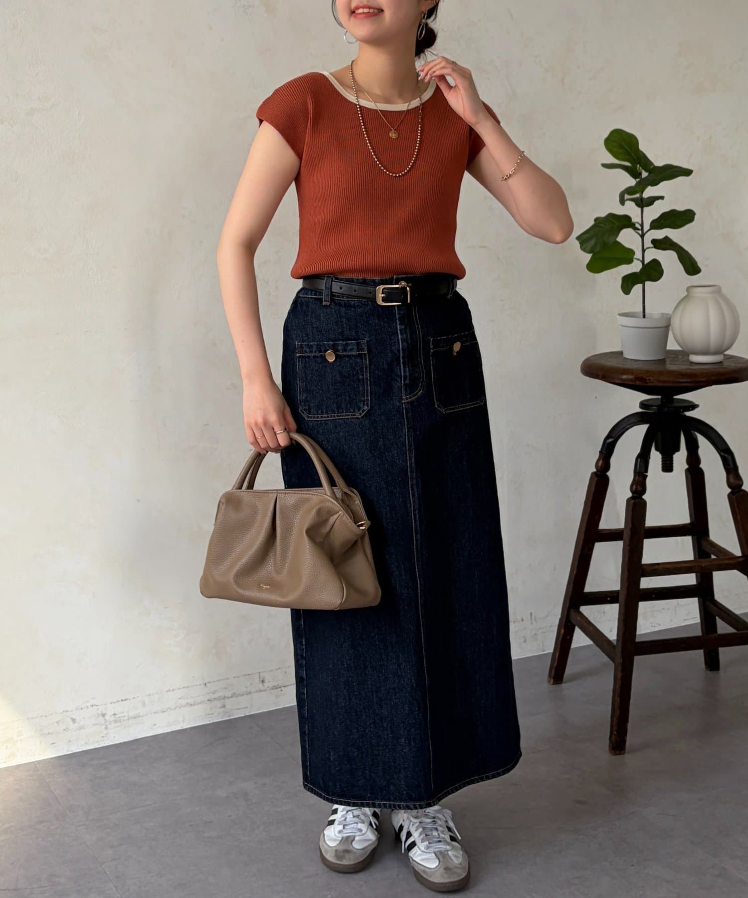 ベーシックなデザインなので、オフスタイルだけでなくお仕事コーデにも活躍します。