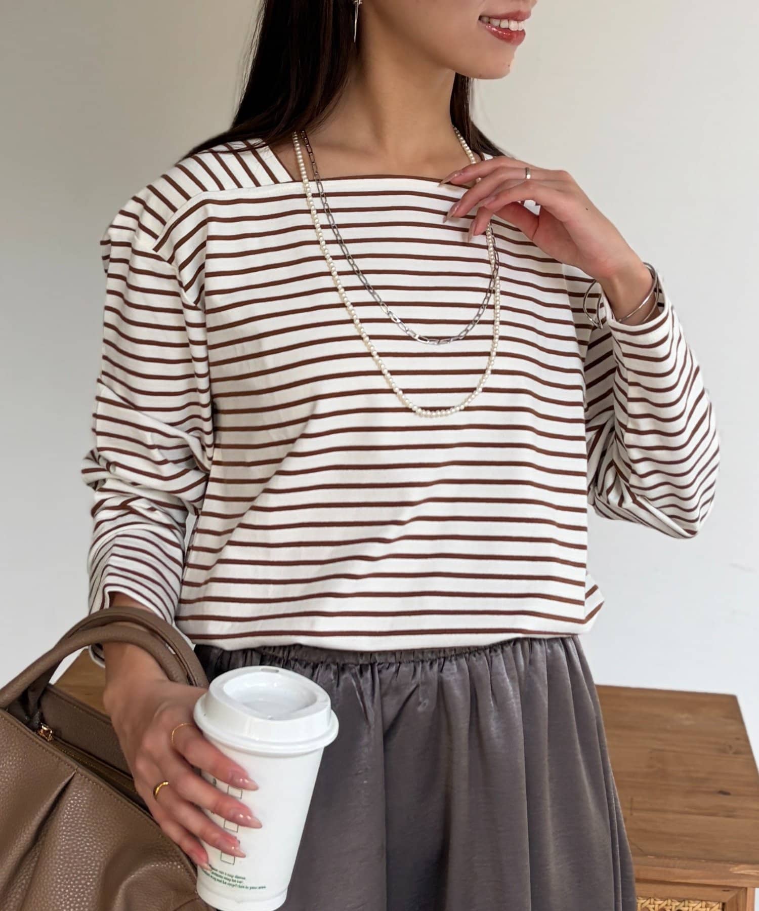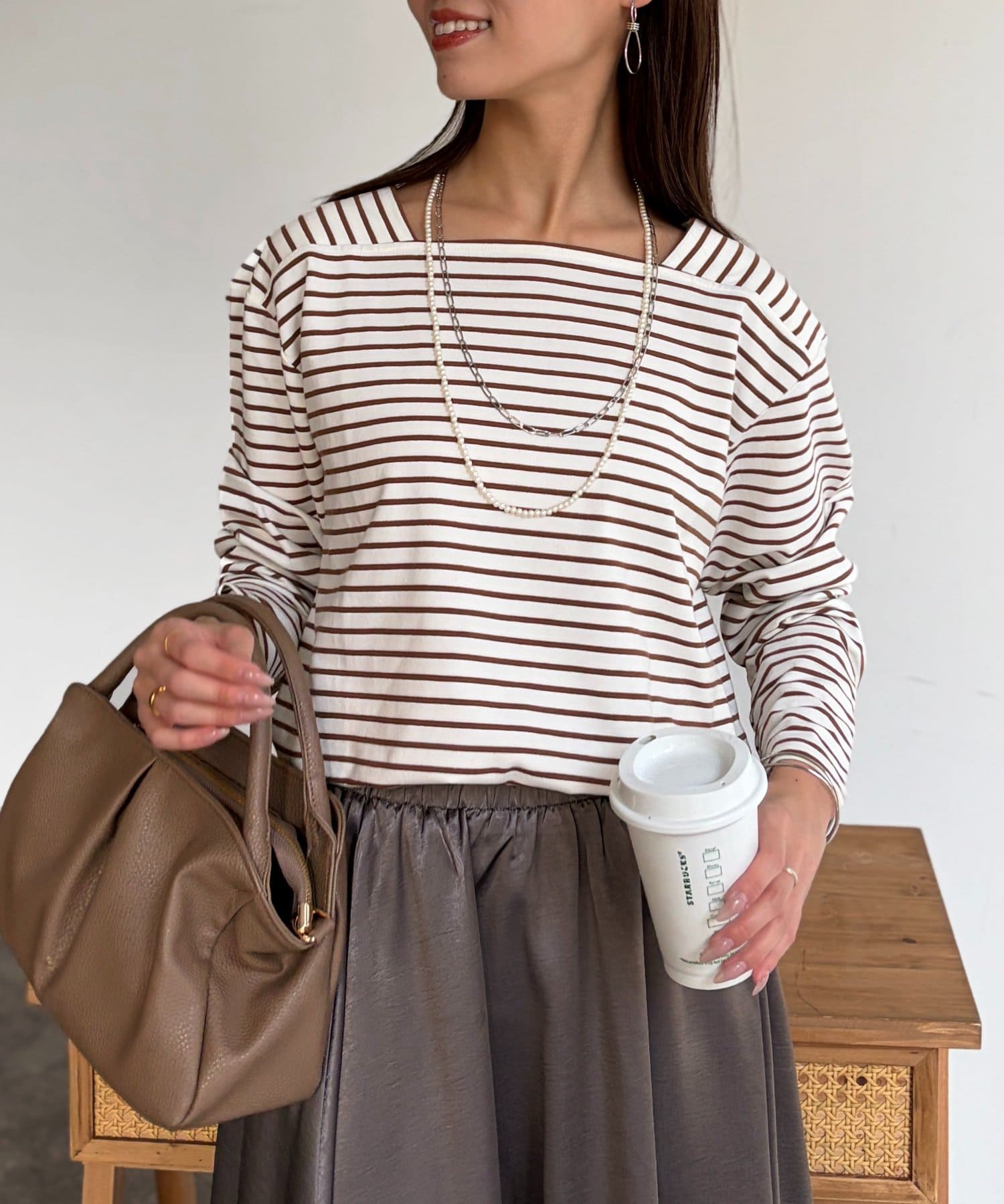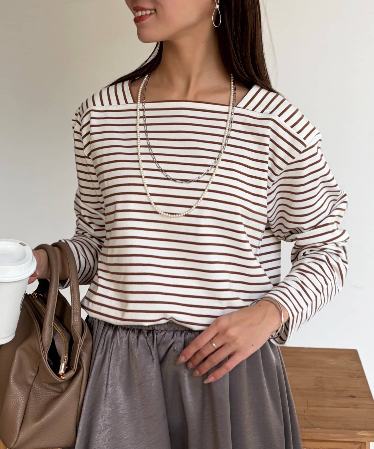 スクエアの首元で程よく開くので大人の抜け感をプラスしてくれます。