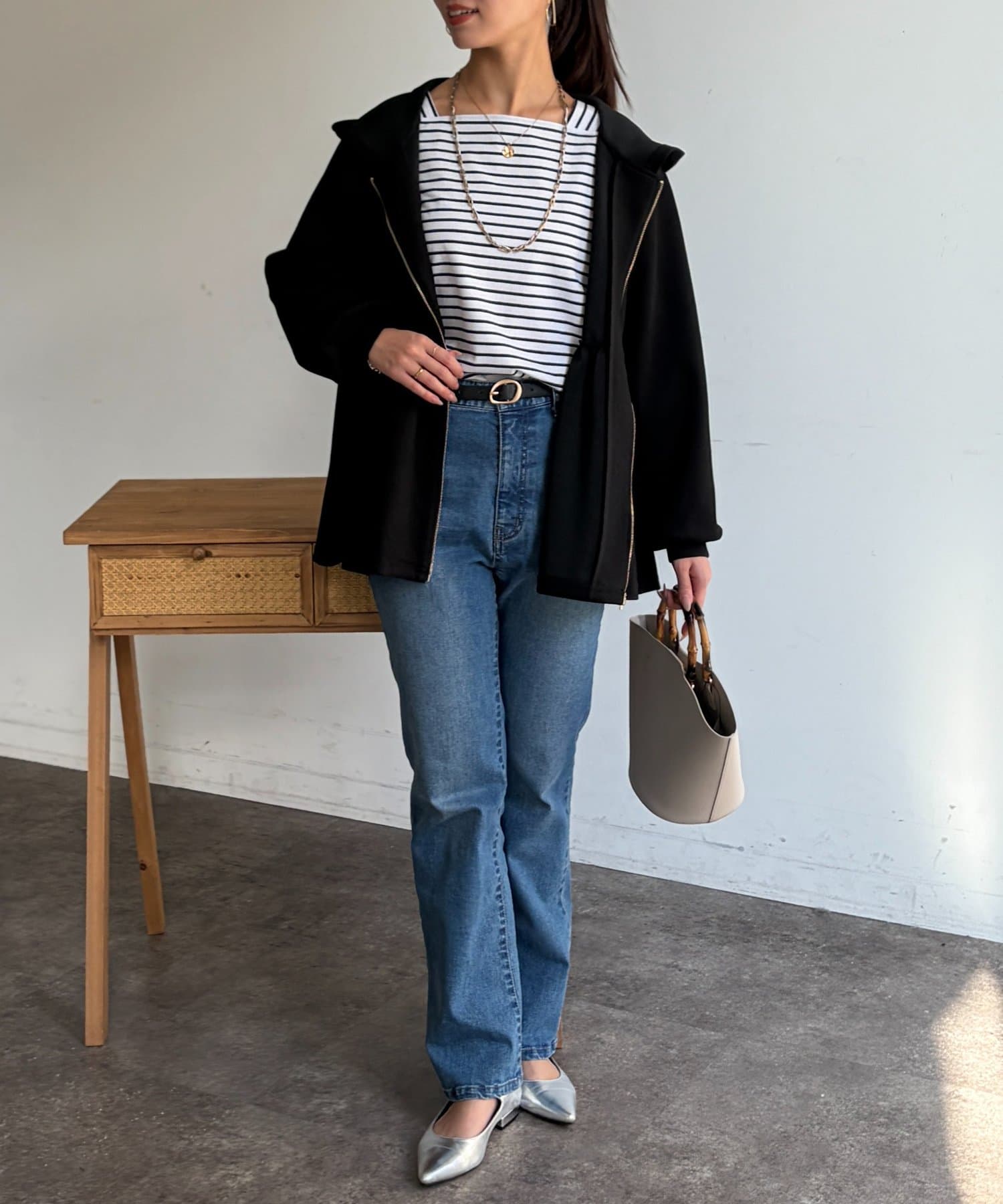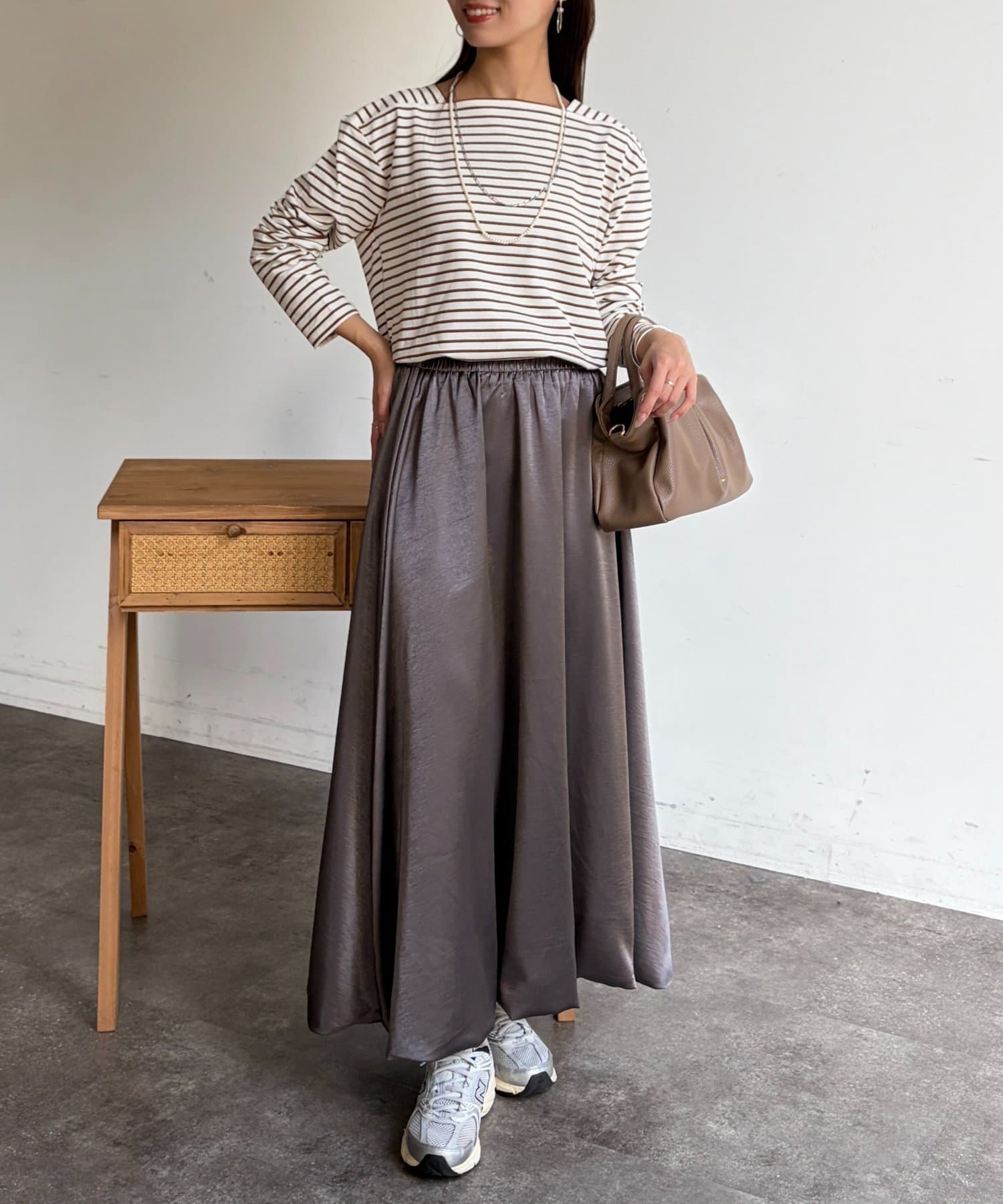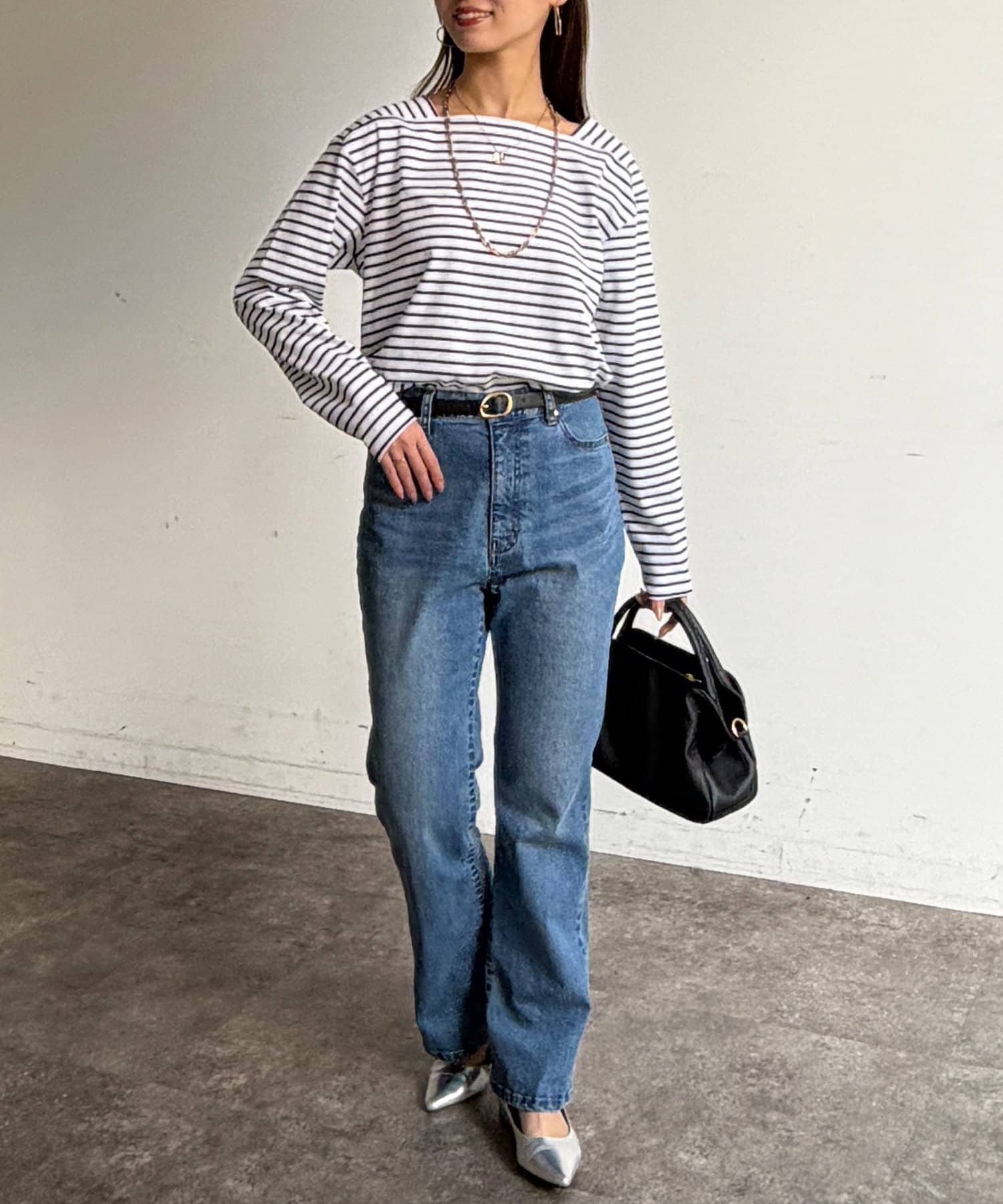 スクエアの首元で程よく開くので大人の抜け感をプラスしてくれます。