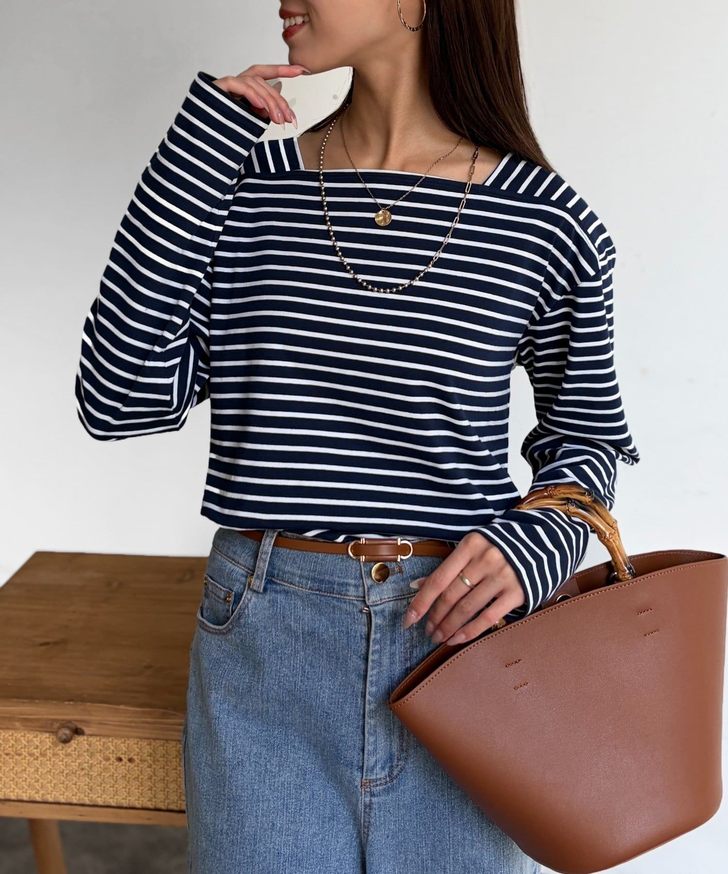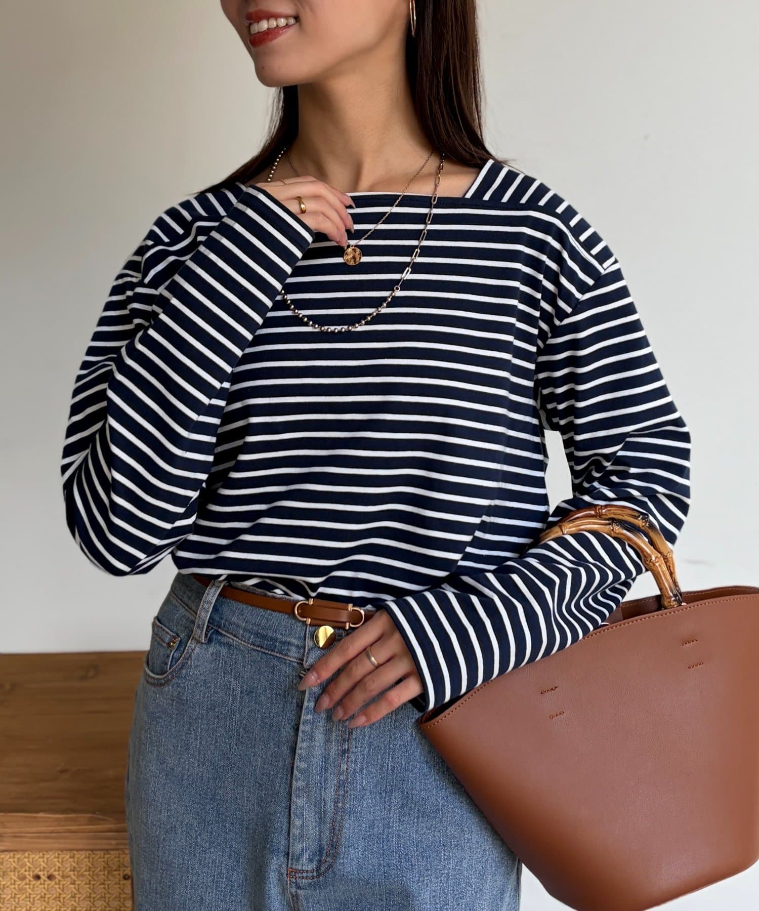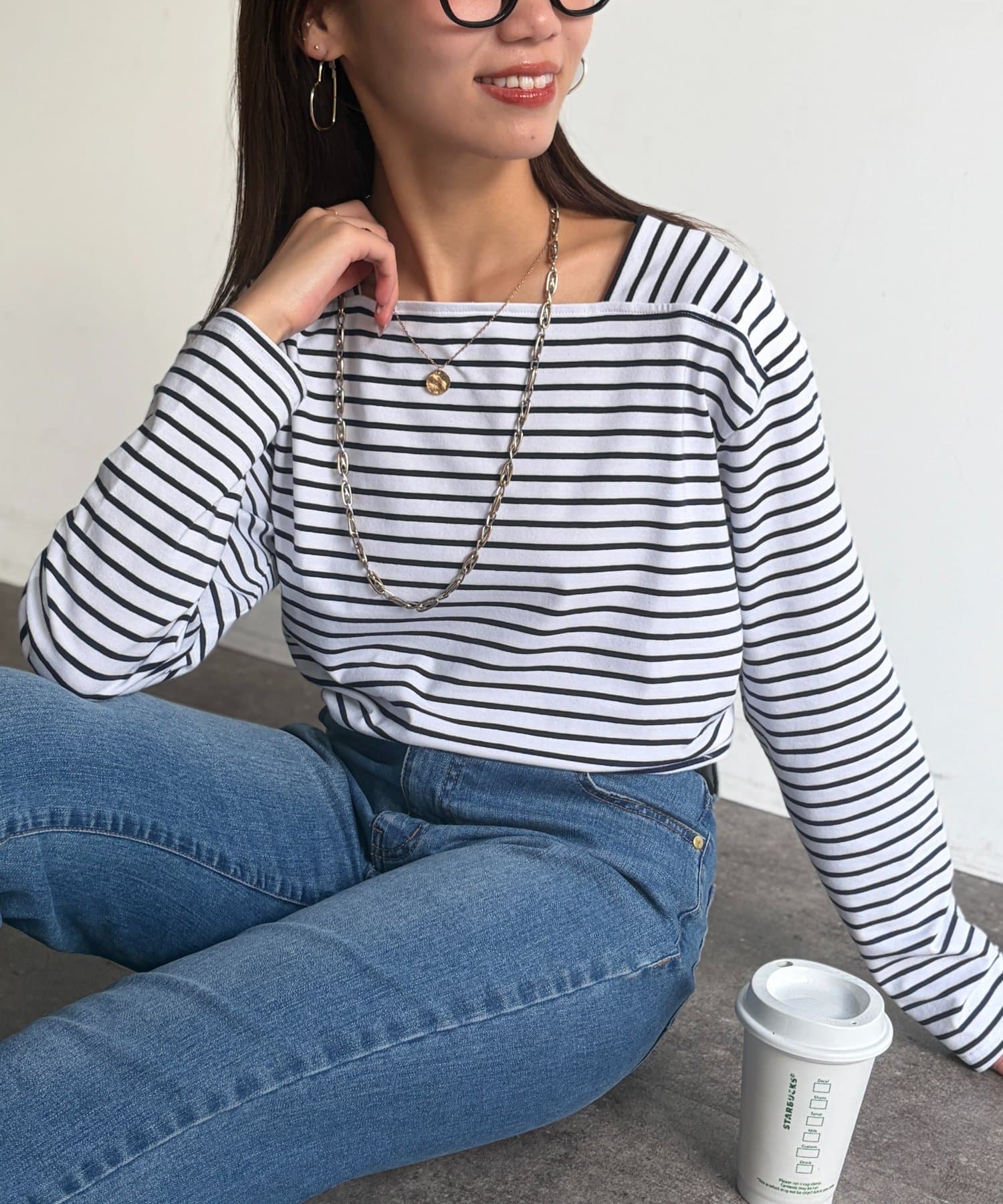 • Chez toi(シェトワ) スクエアボーダーカットソー