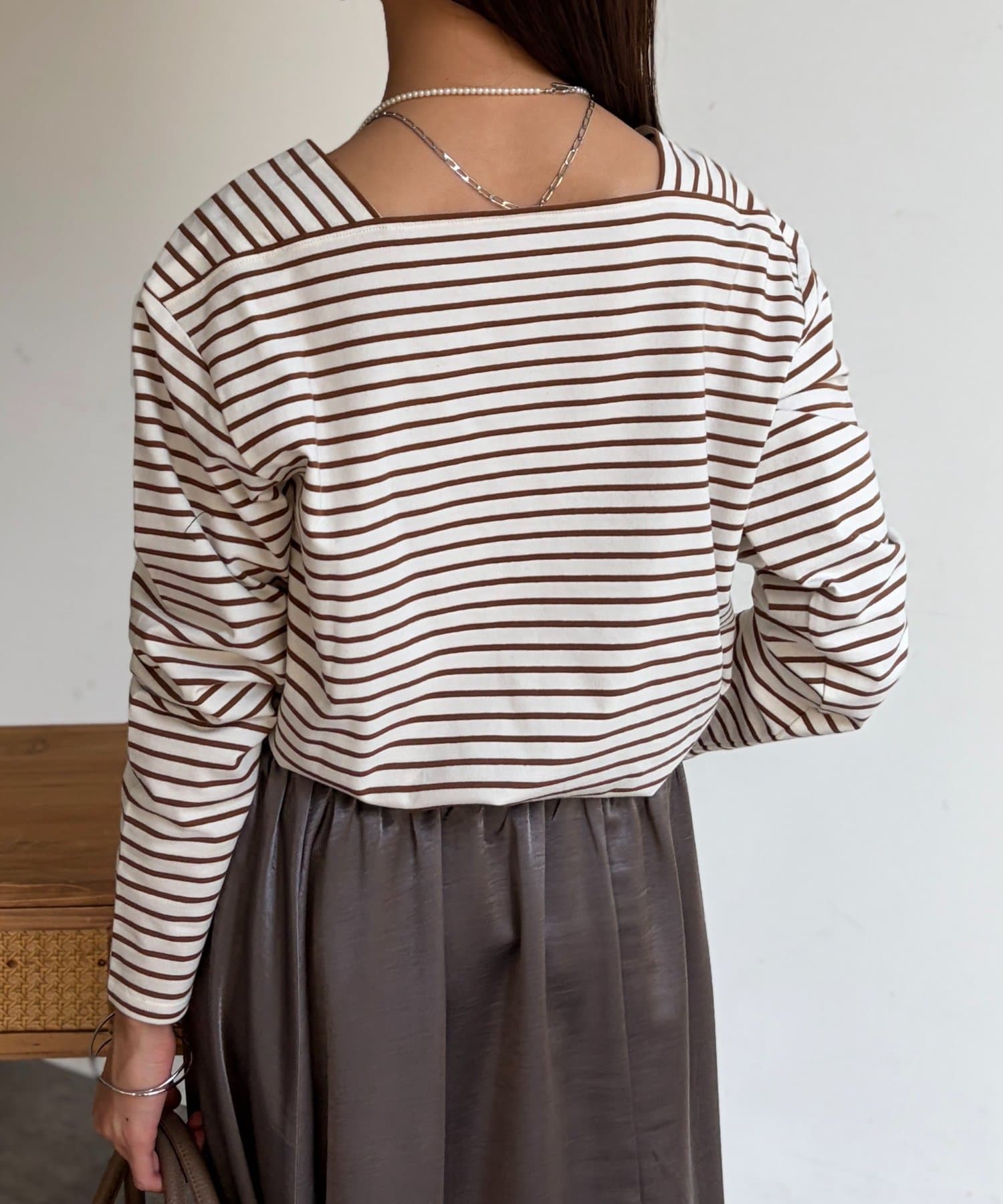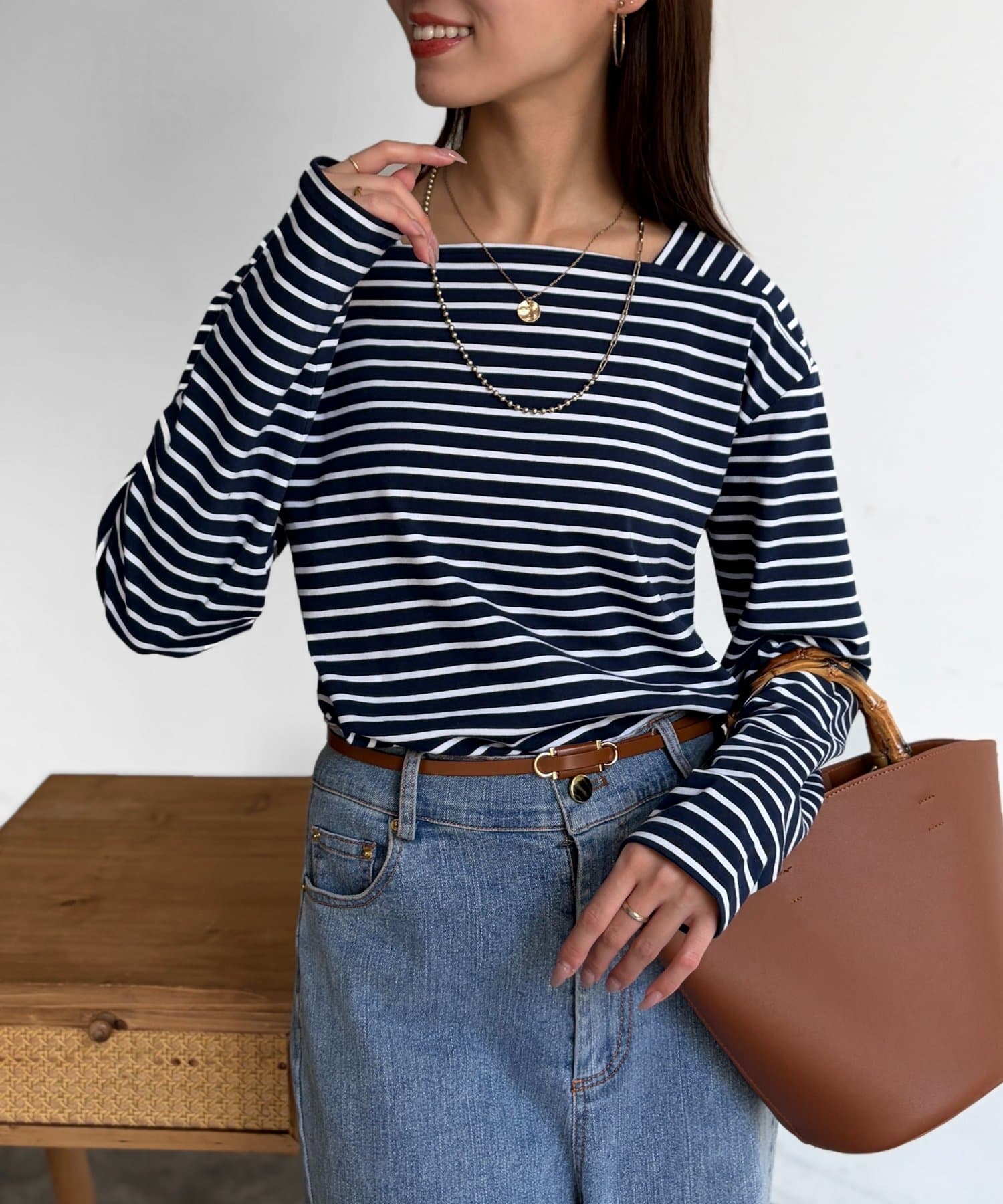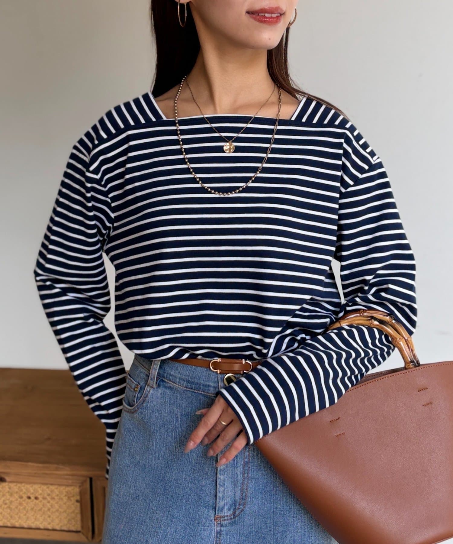 • Chez toi(シェトワ) スクエアボーダーカットソー