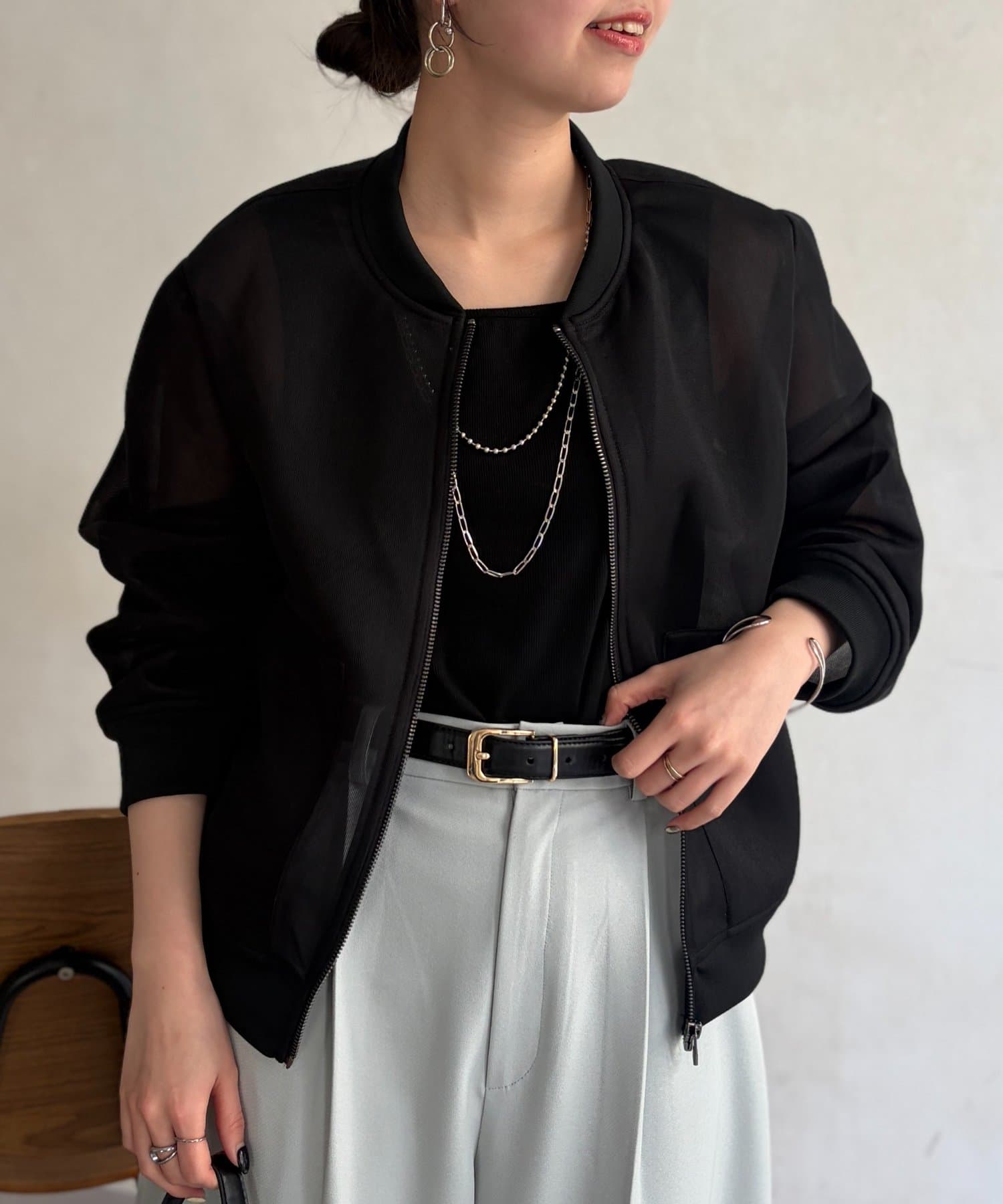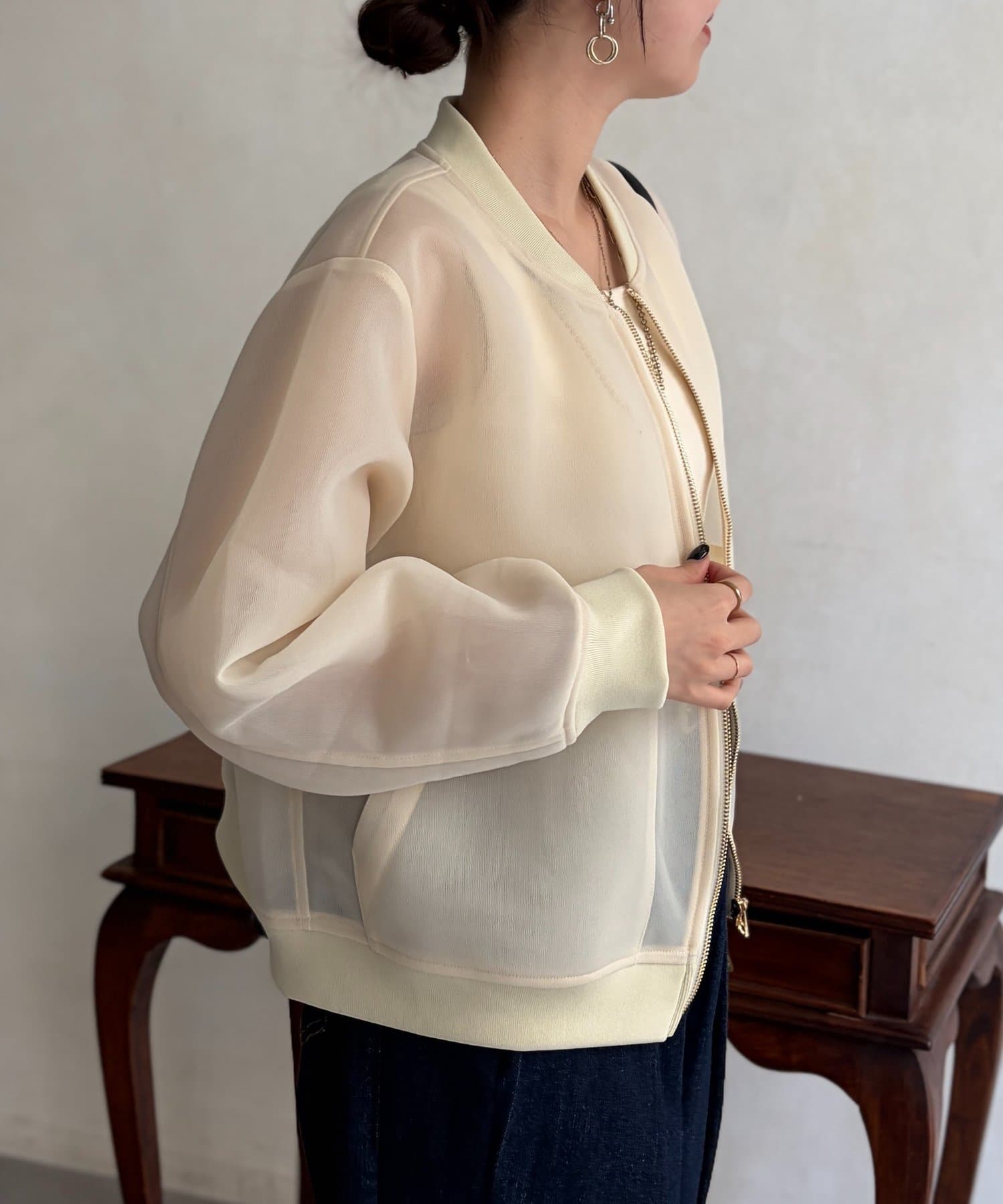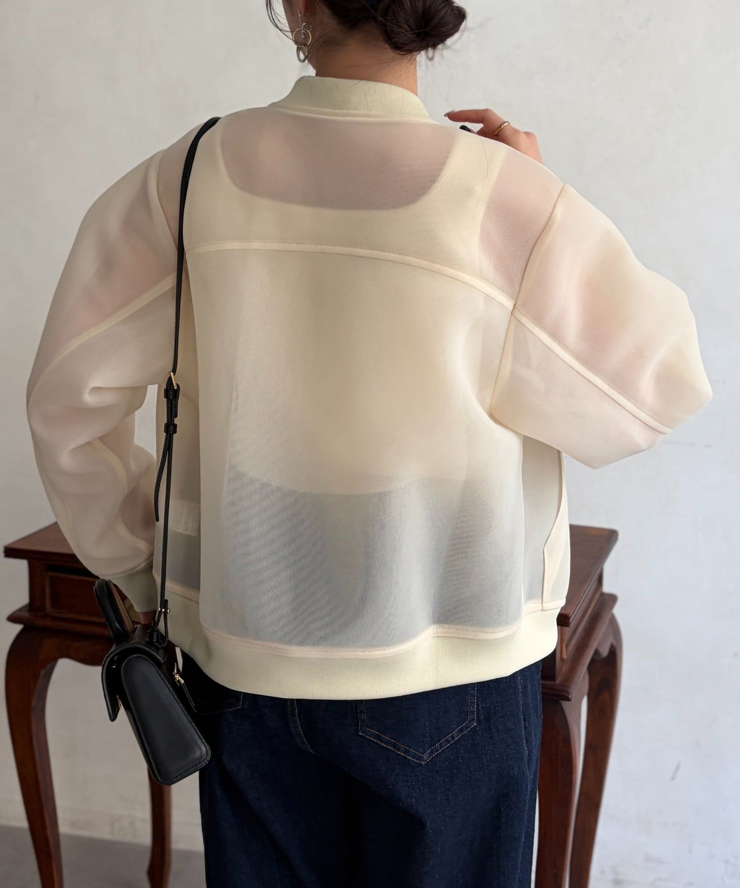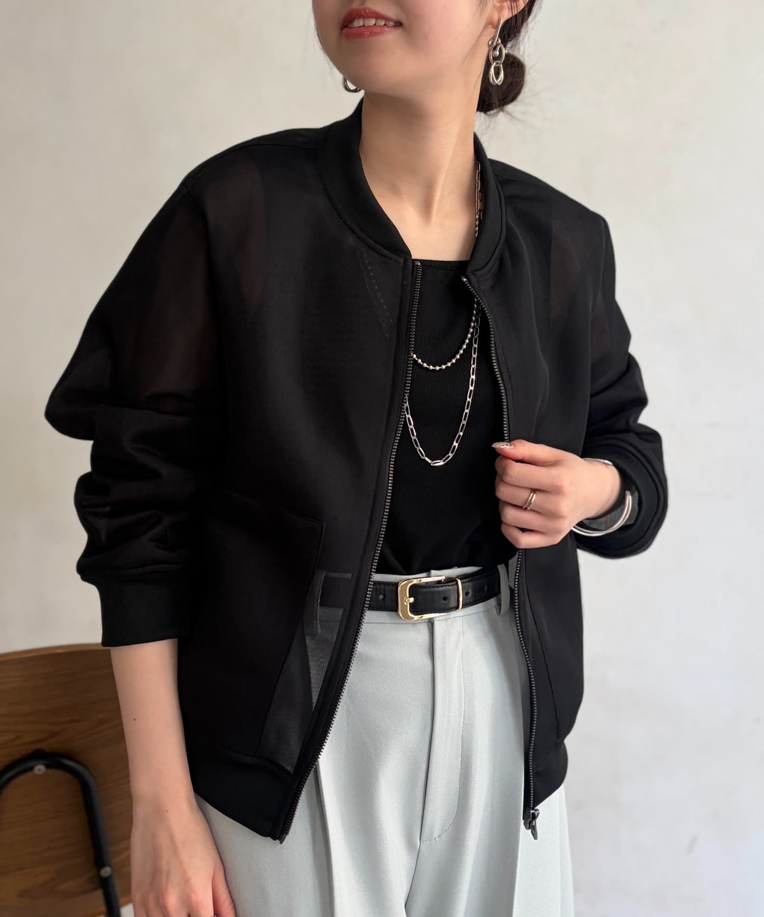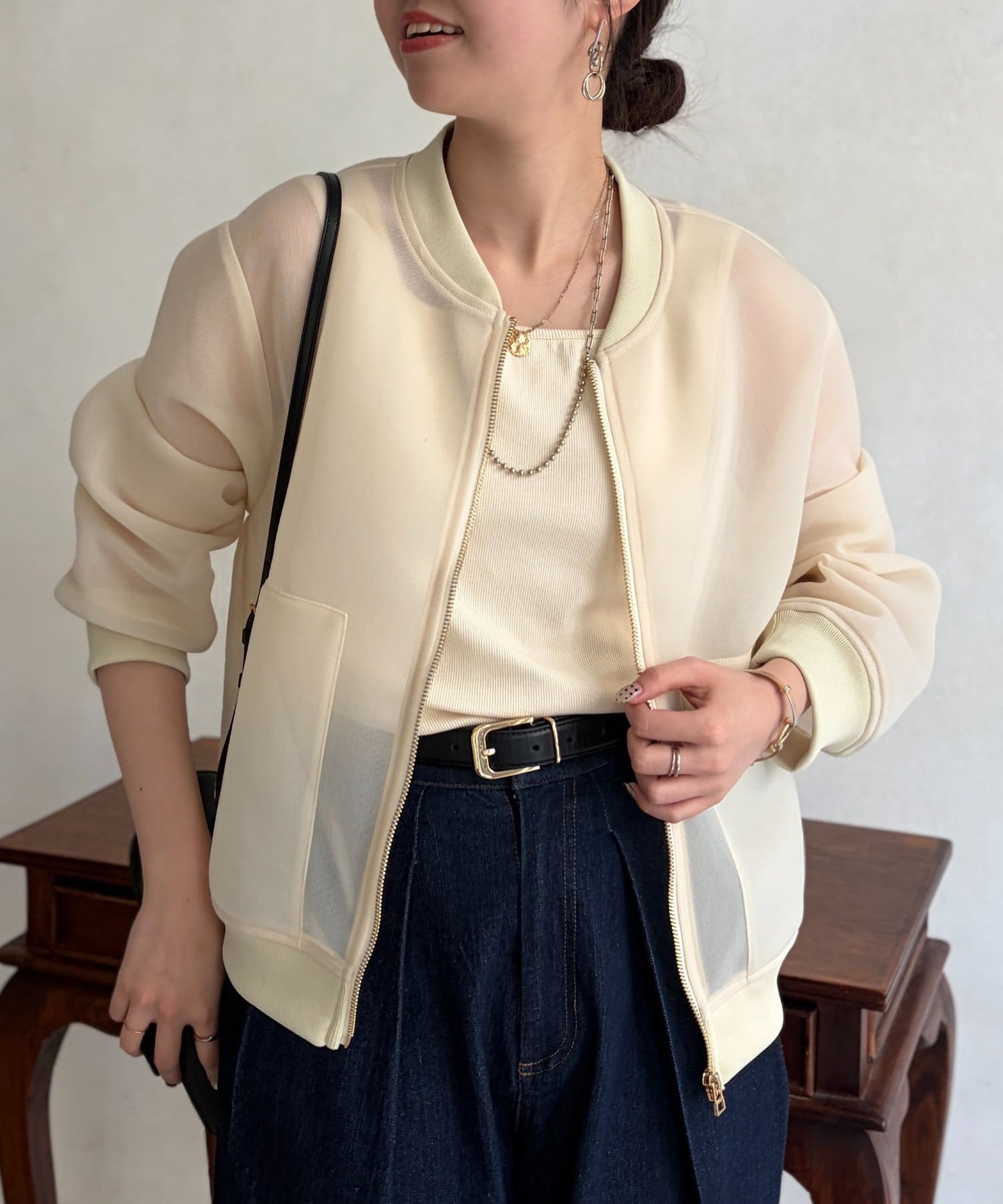透けすぎない絶妙なシアー感が上品な印象を与えるブルゾン