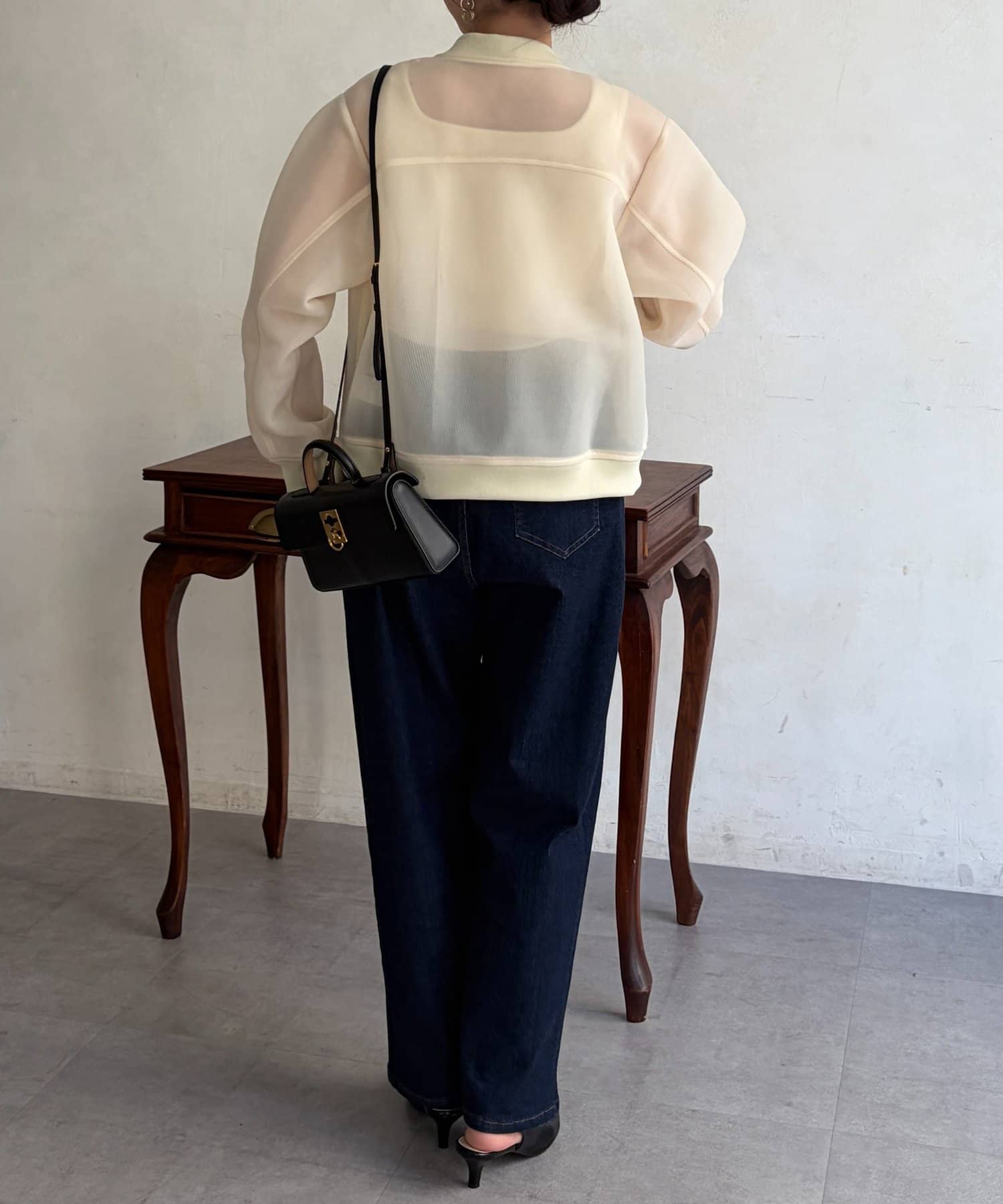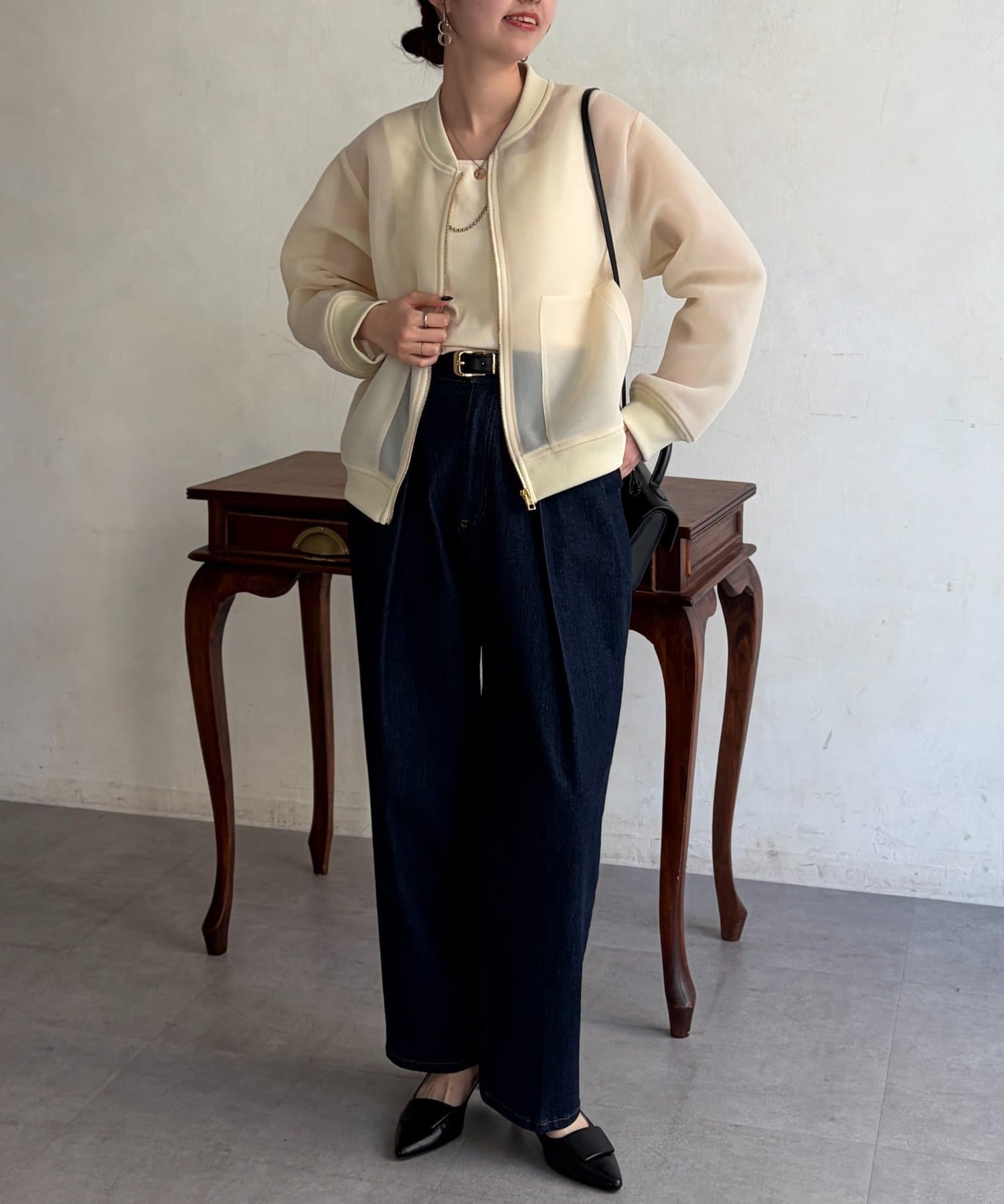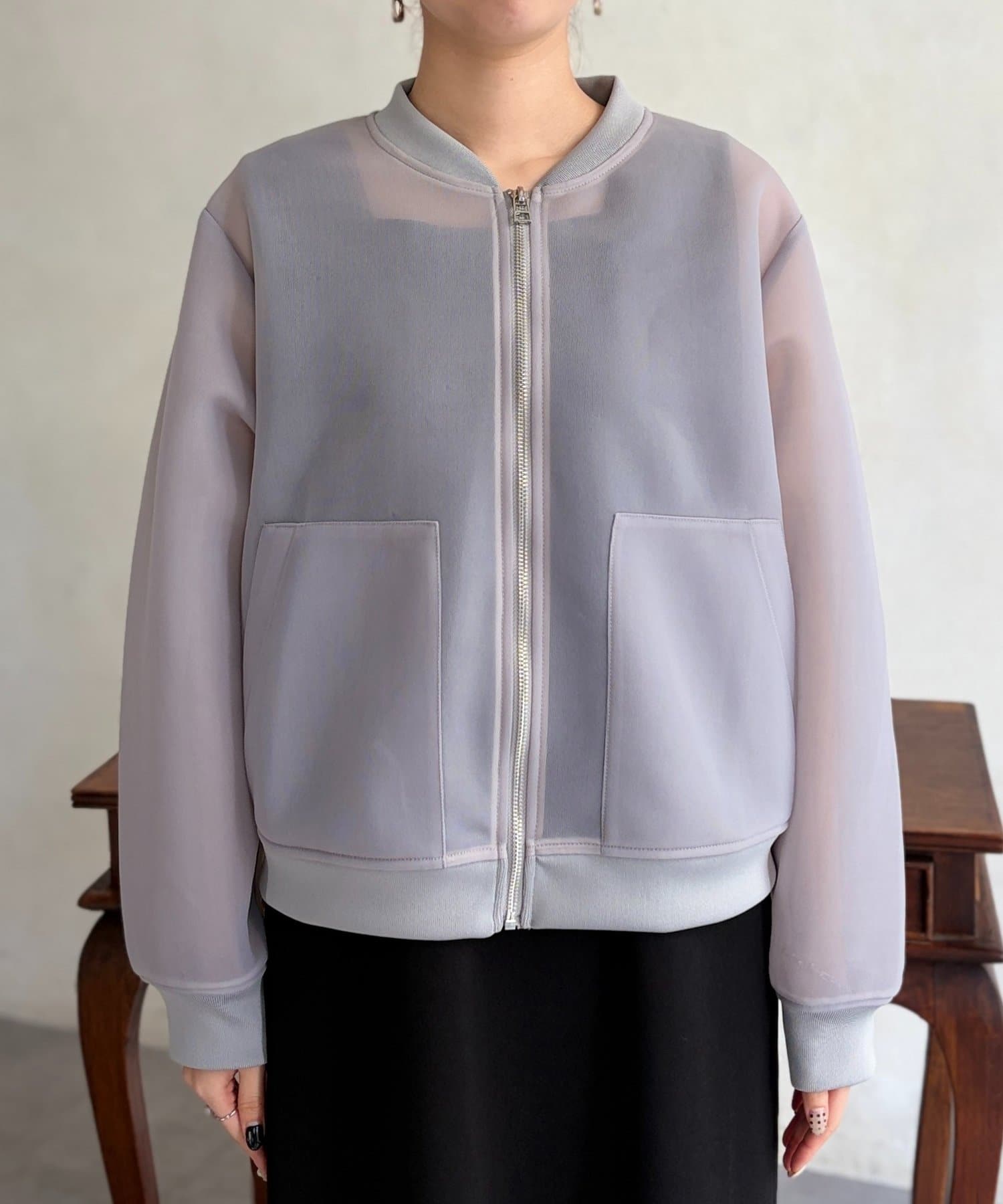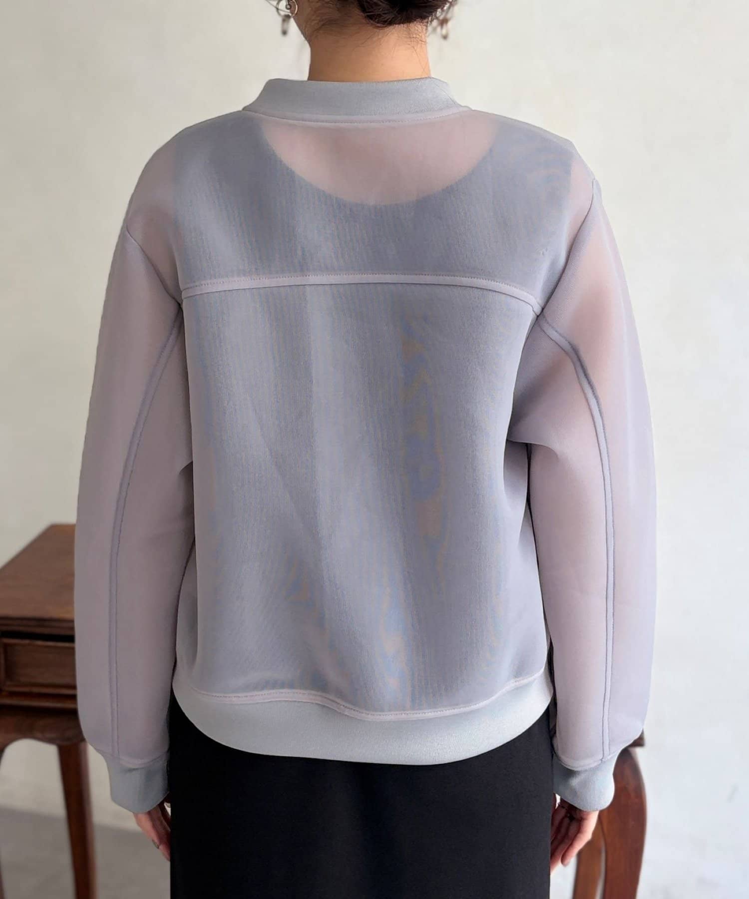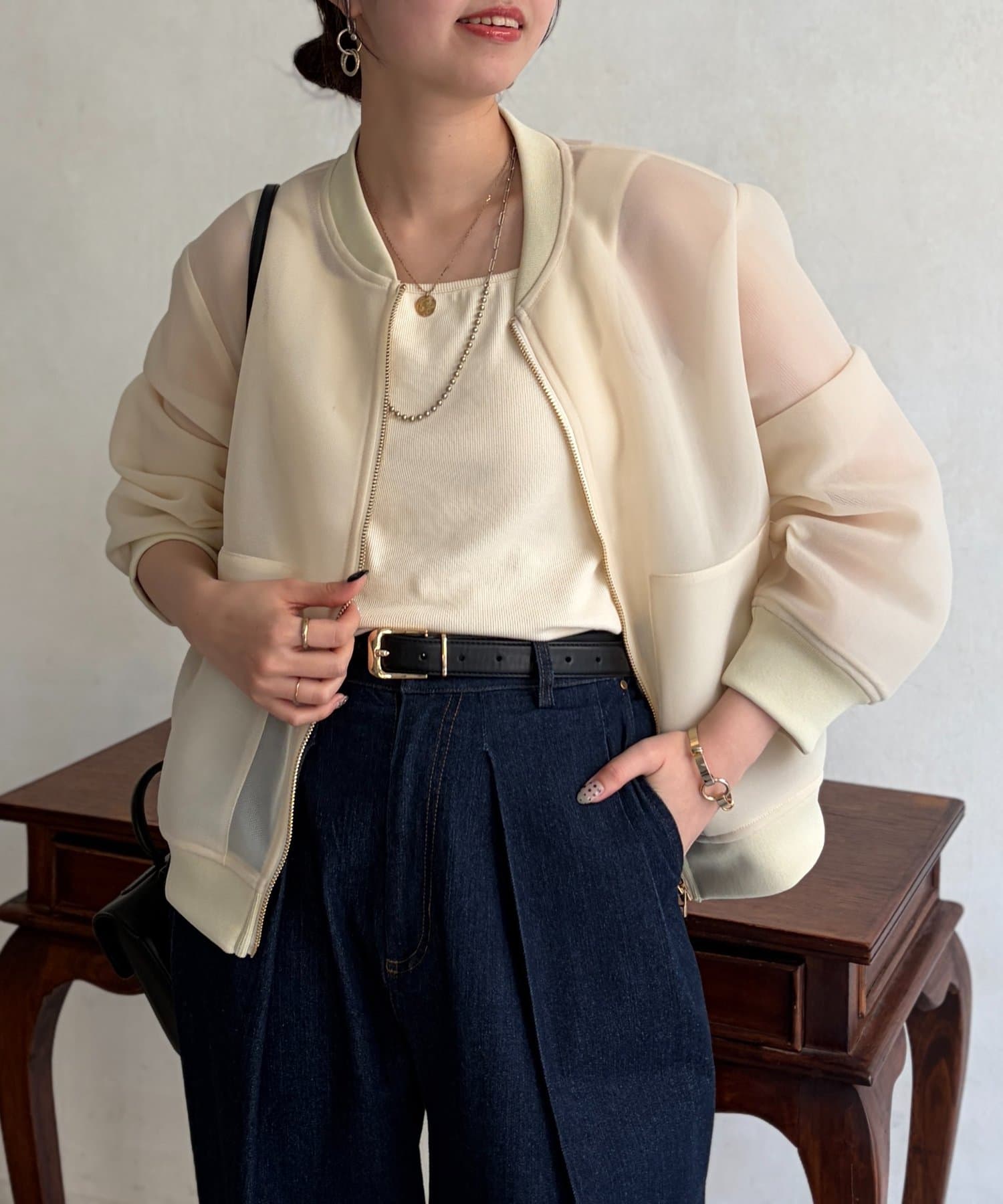 透けすぎない絶妙なシアー感が上品な印象を与えるブルゾン