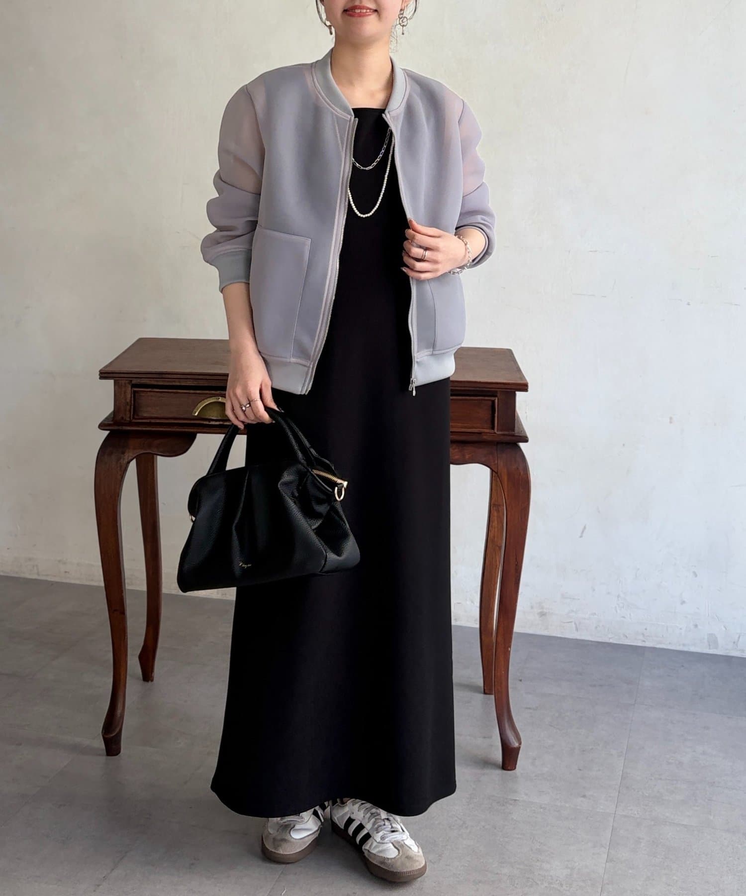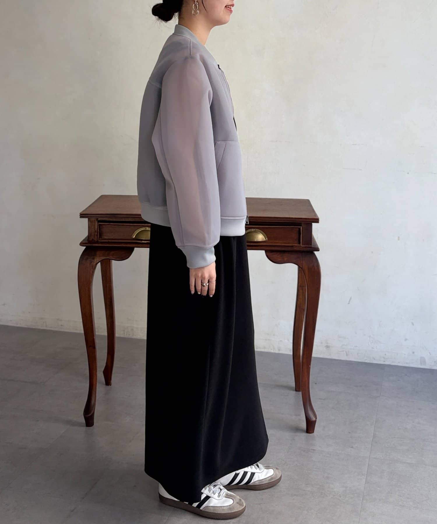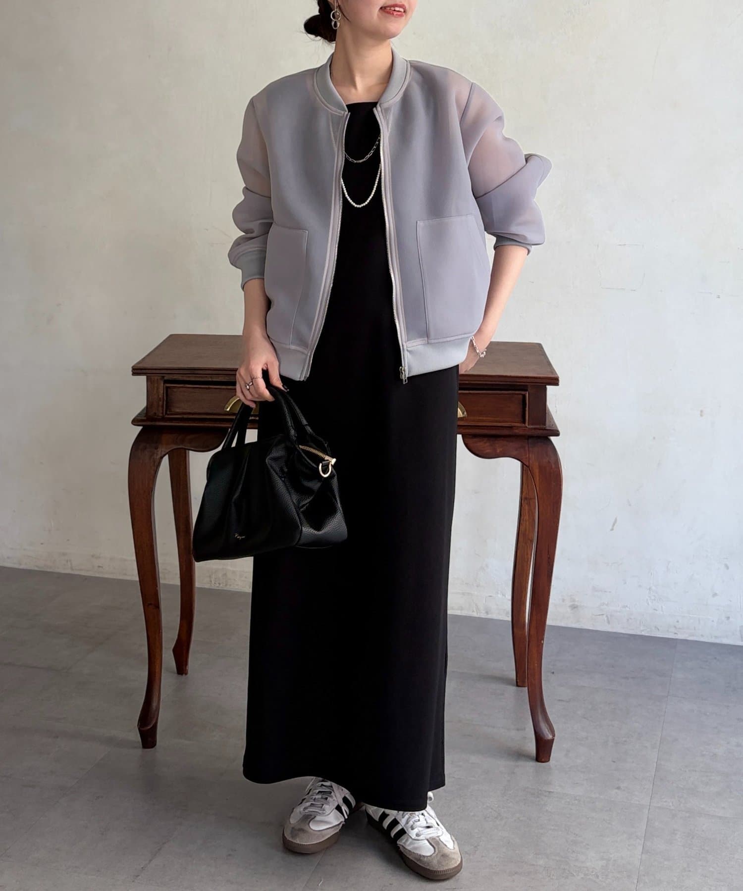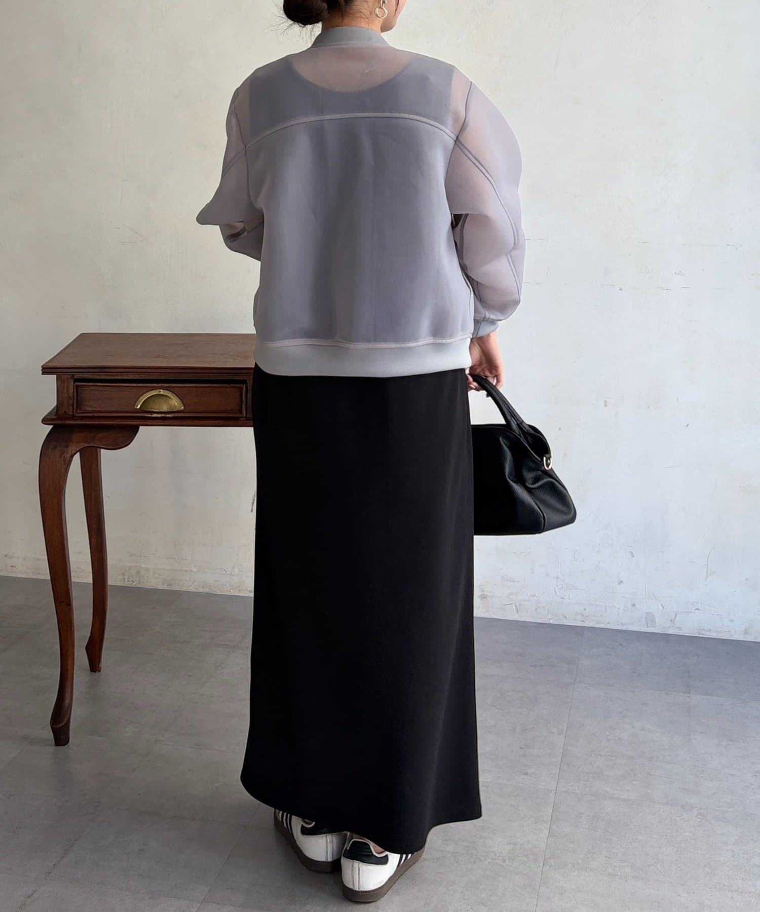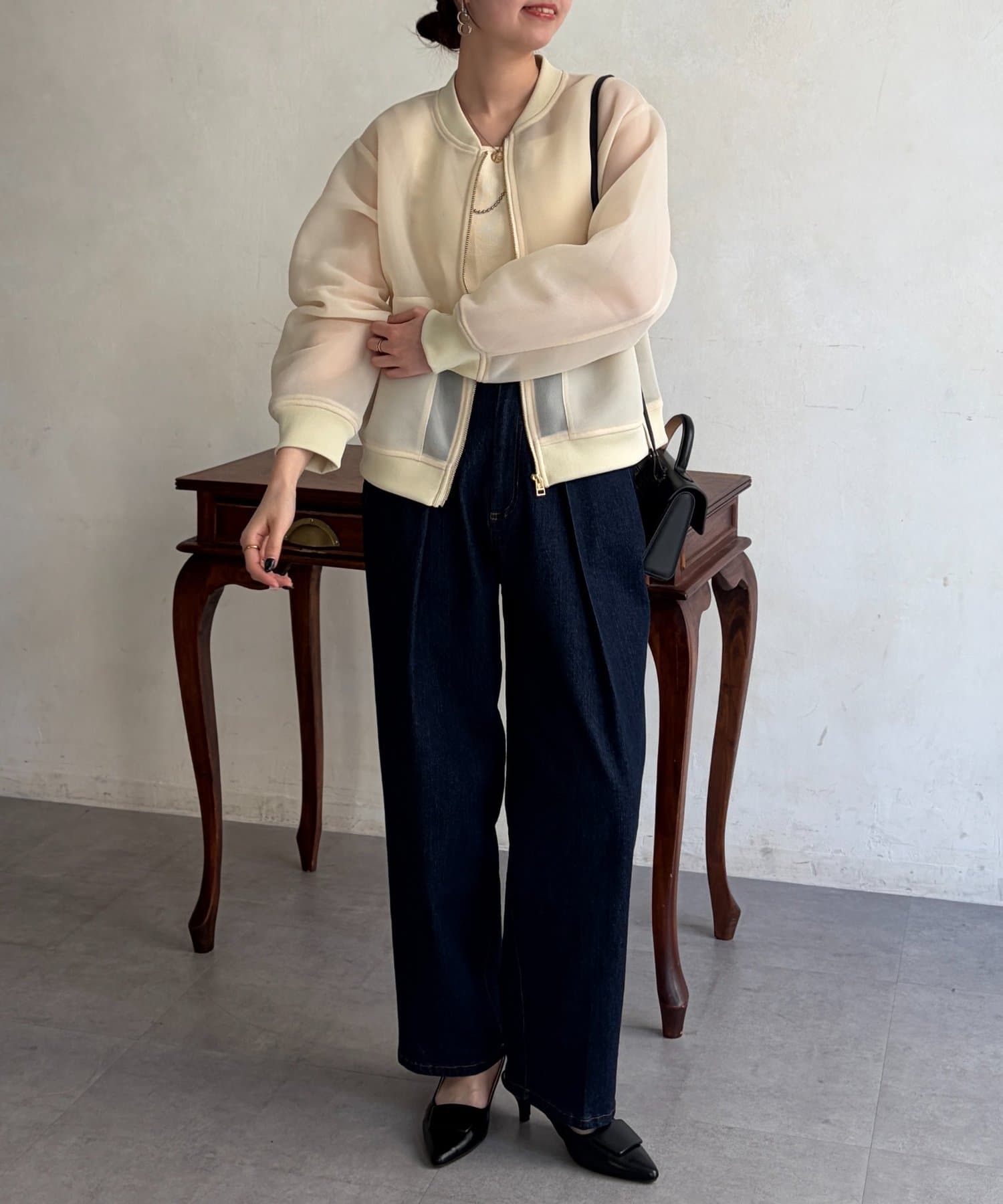 透けすぎない絶妙なシアー感が上品な印象を与えるブルゾン