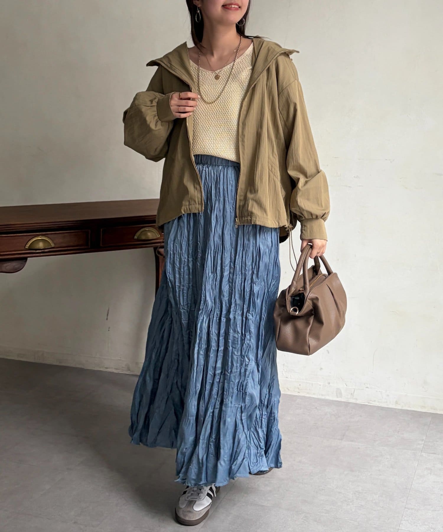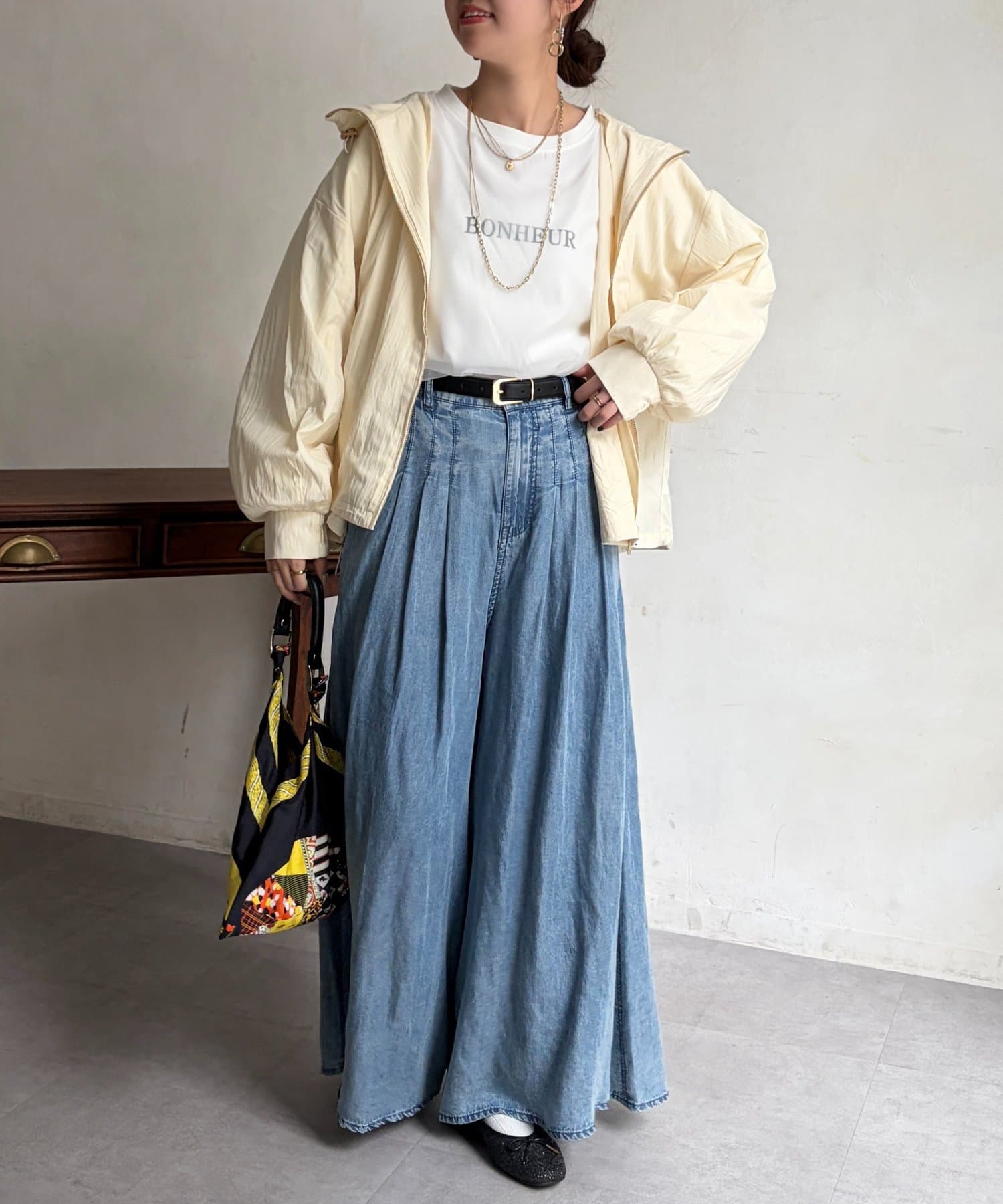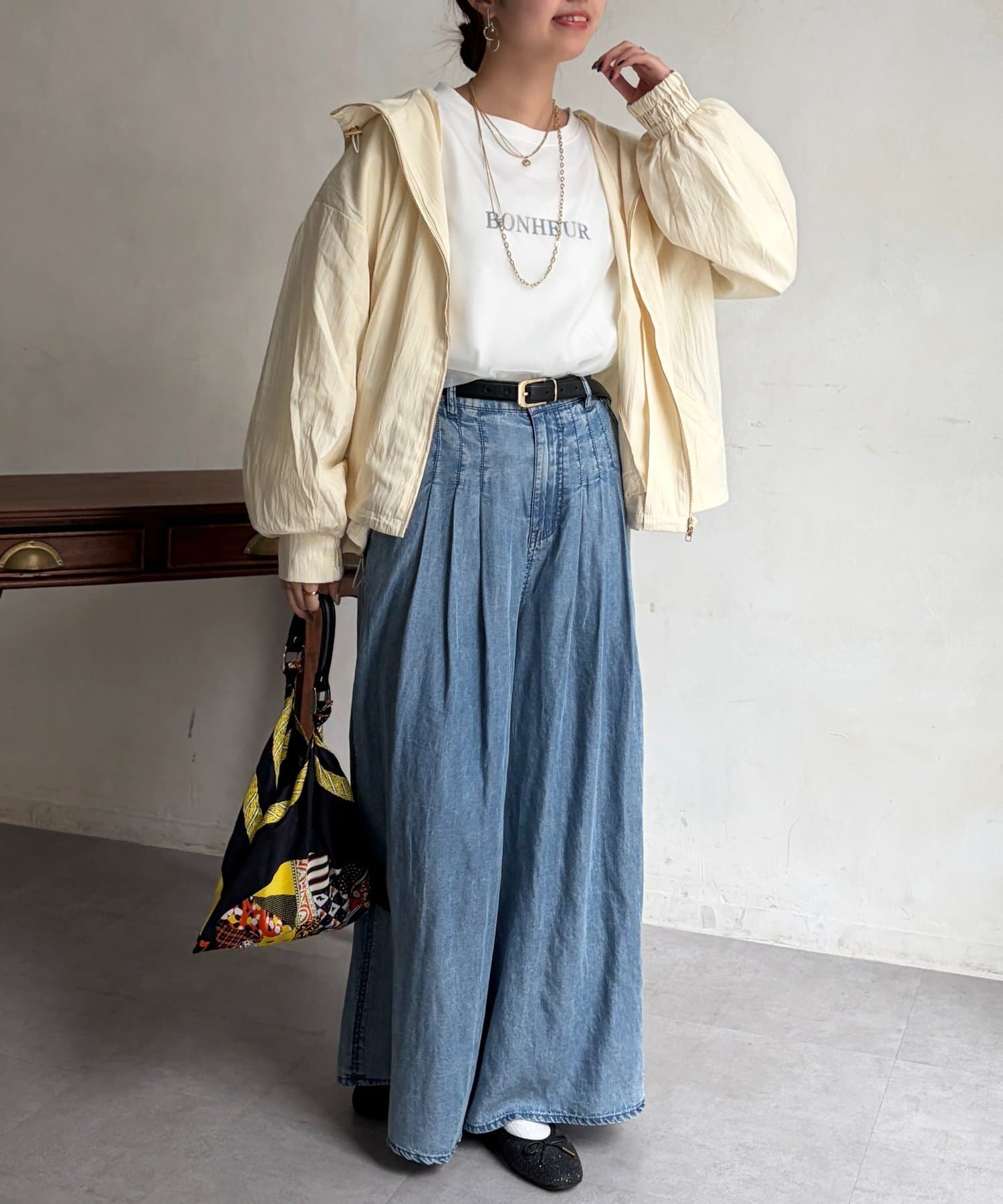 デニムはもちろん、スカートやワンピースなどフェミニンなアイテムとも相性◎