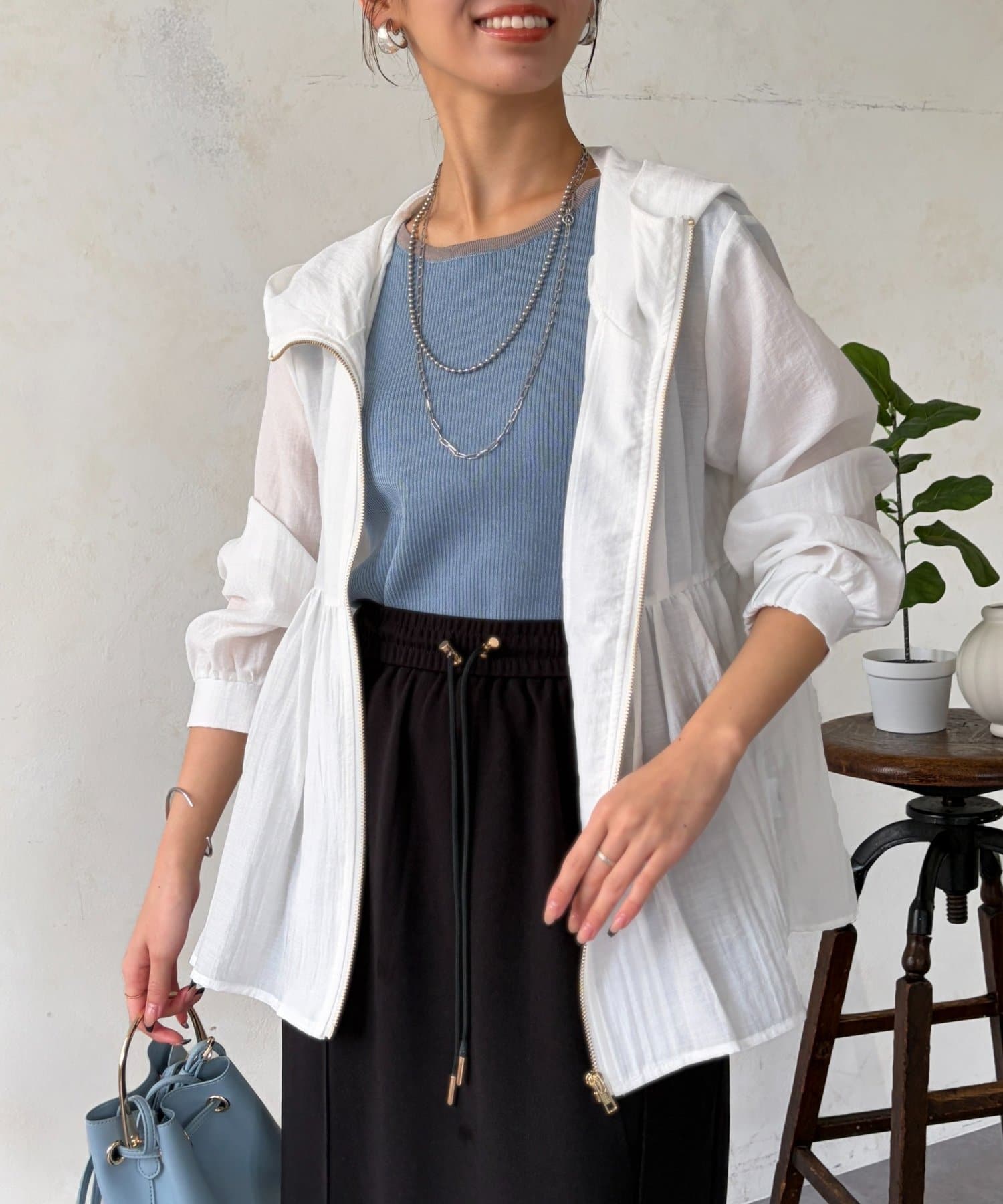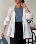 シアー感のある軽い素材なので真夏まで活躍する1着。