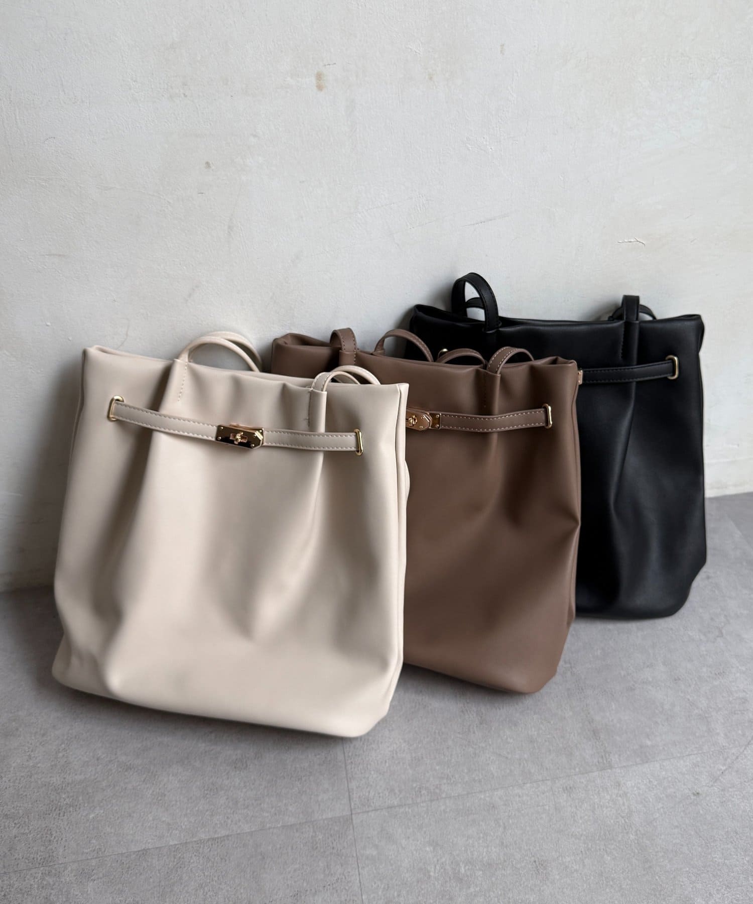 合皮グレイスフロントベルトトート