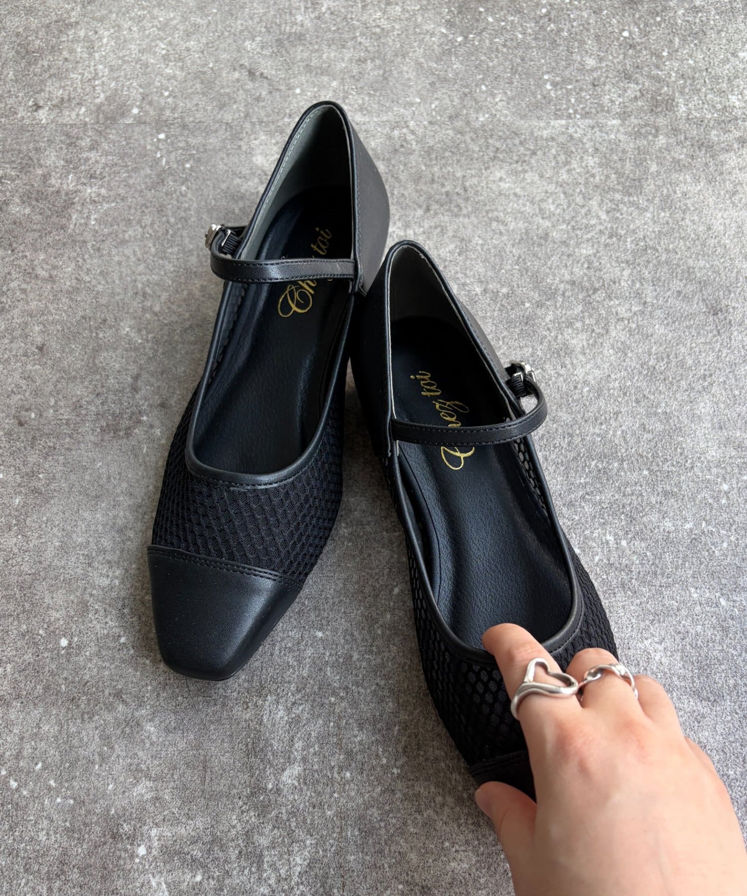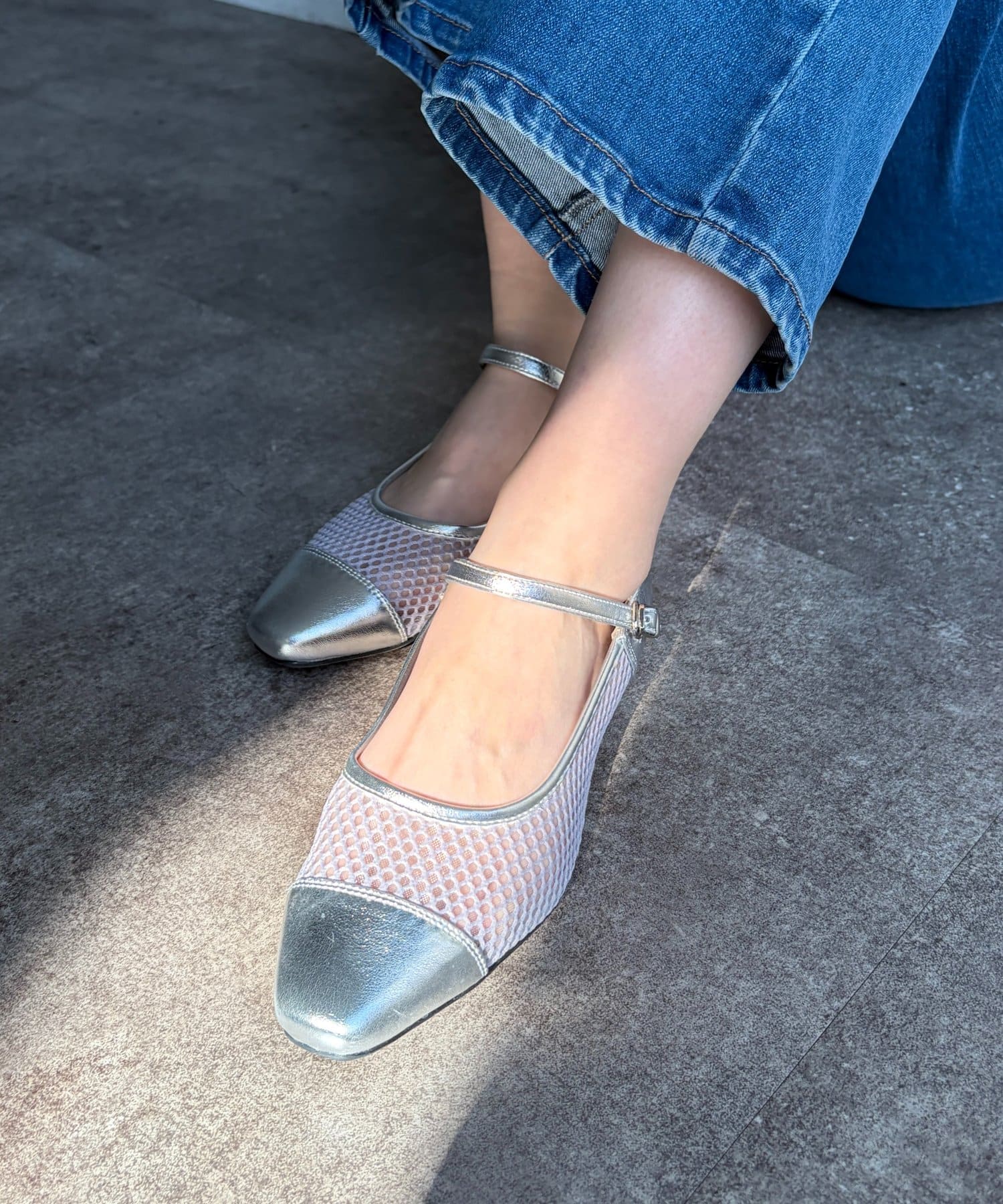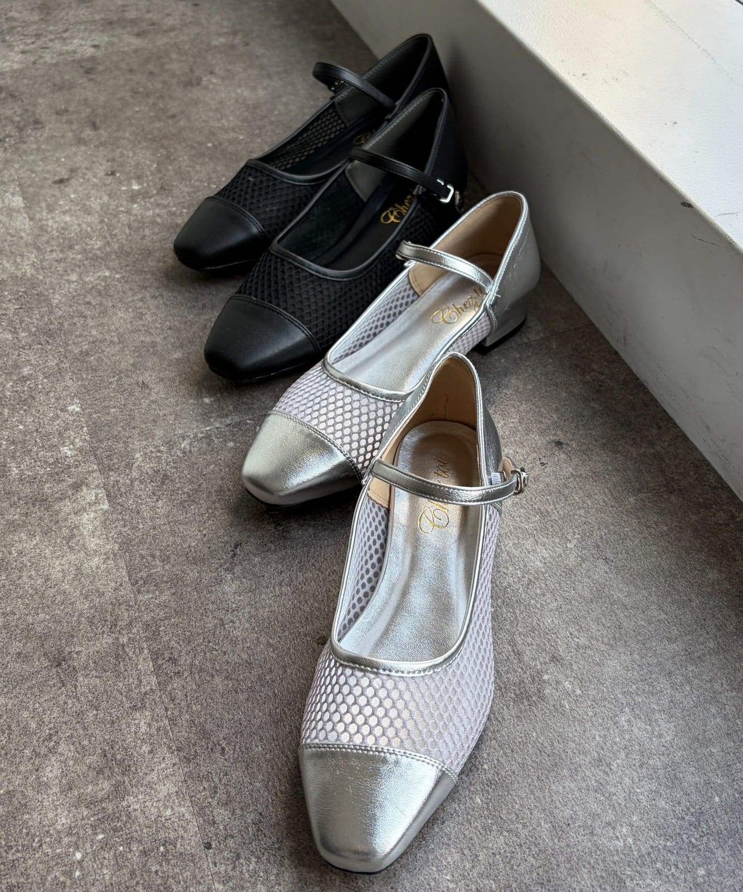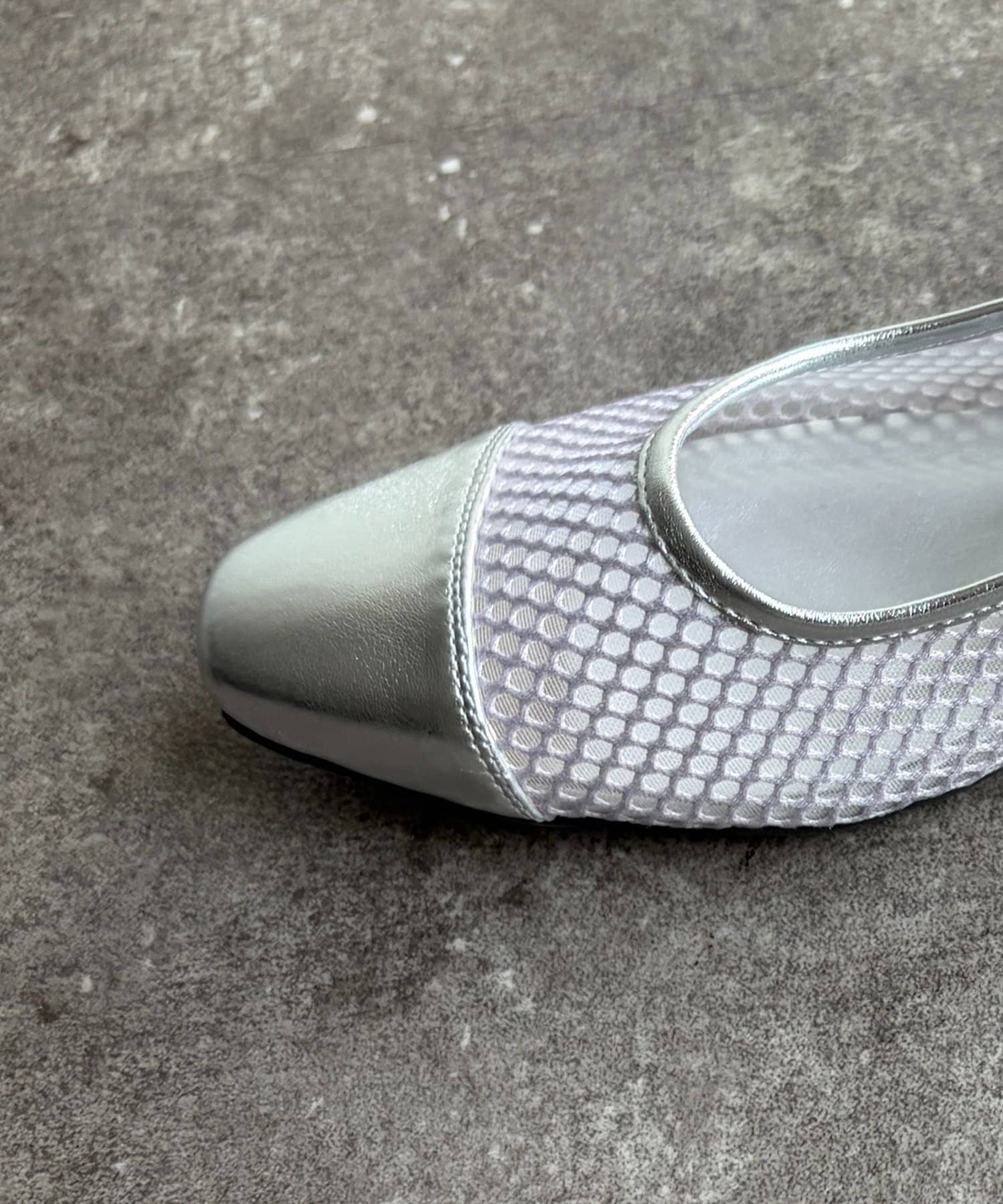 カラーバリエーションもブラックとシルバーで展開しており、さりげないシアー素材がトレンド感を引き立たせてくれる1足。