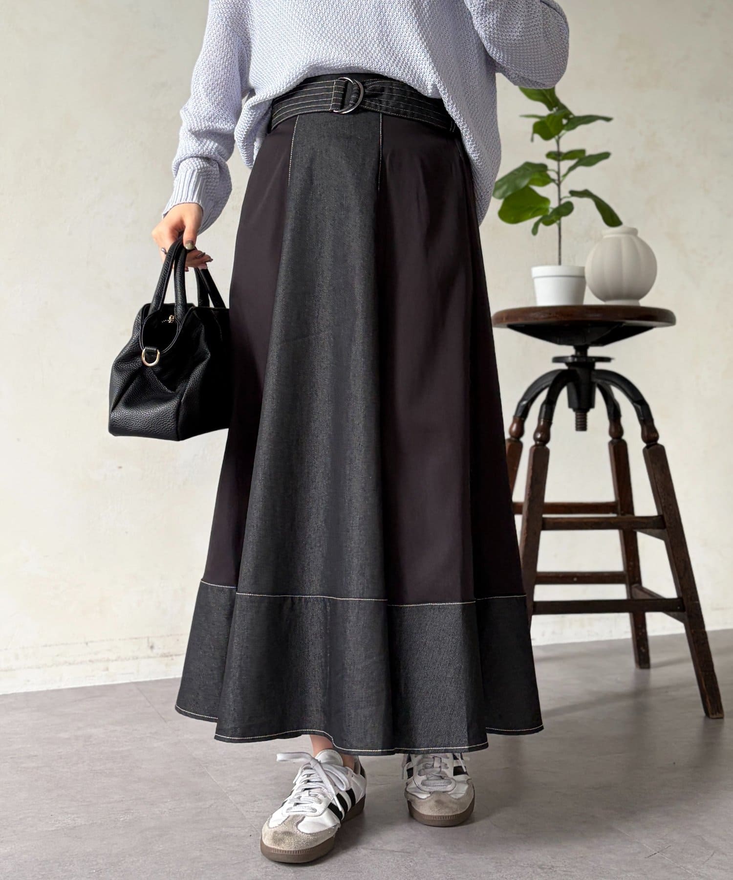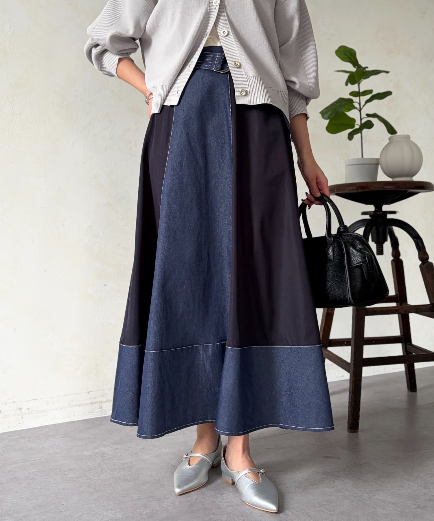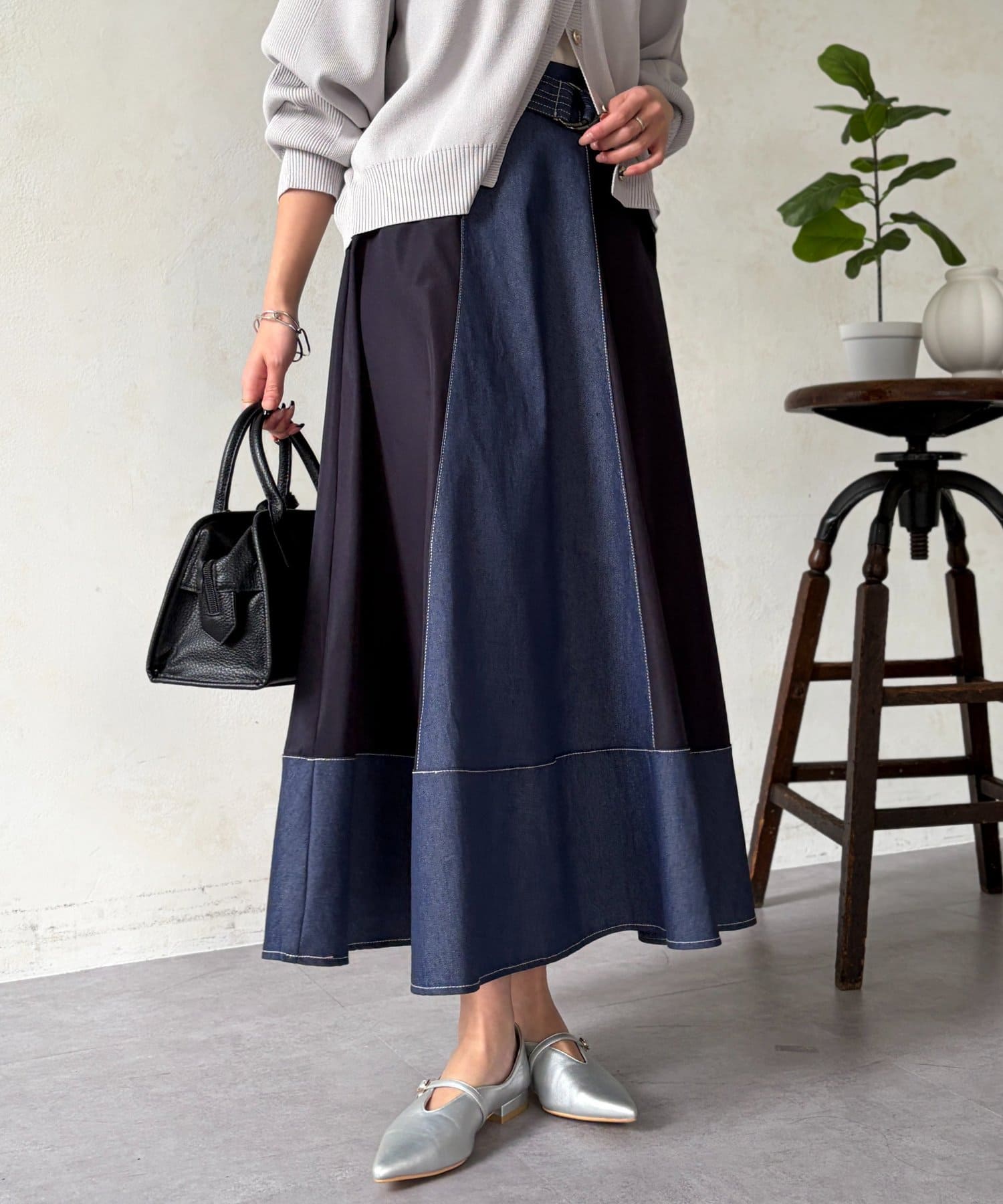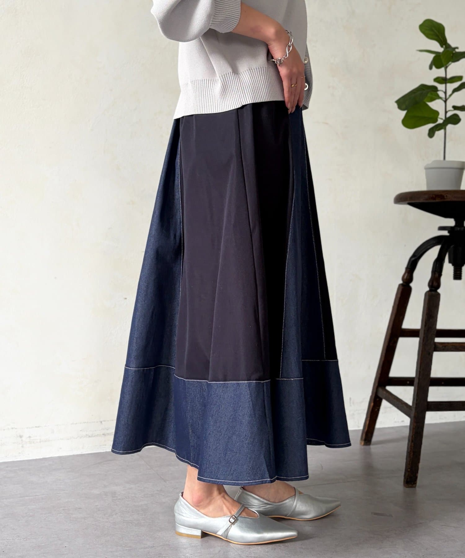 • Chez toi(シェトワ) デニム切替フレアスカート