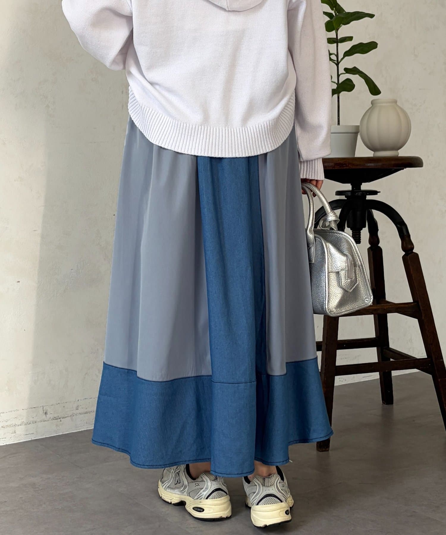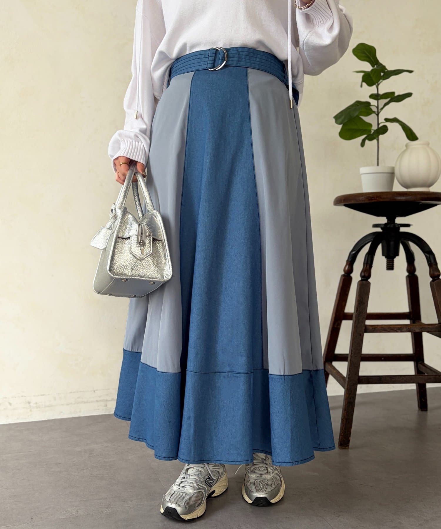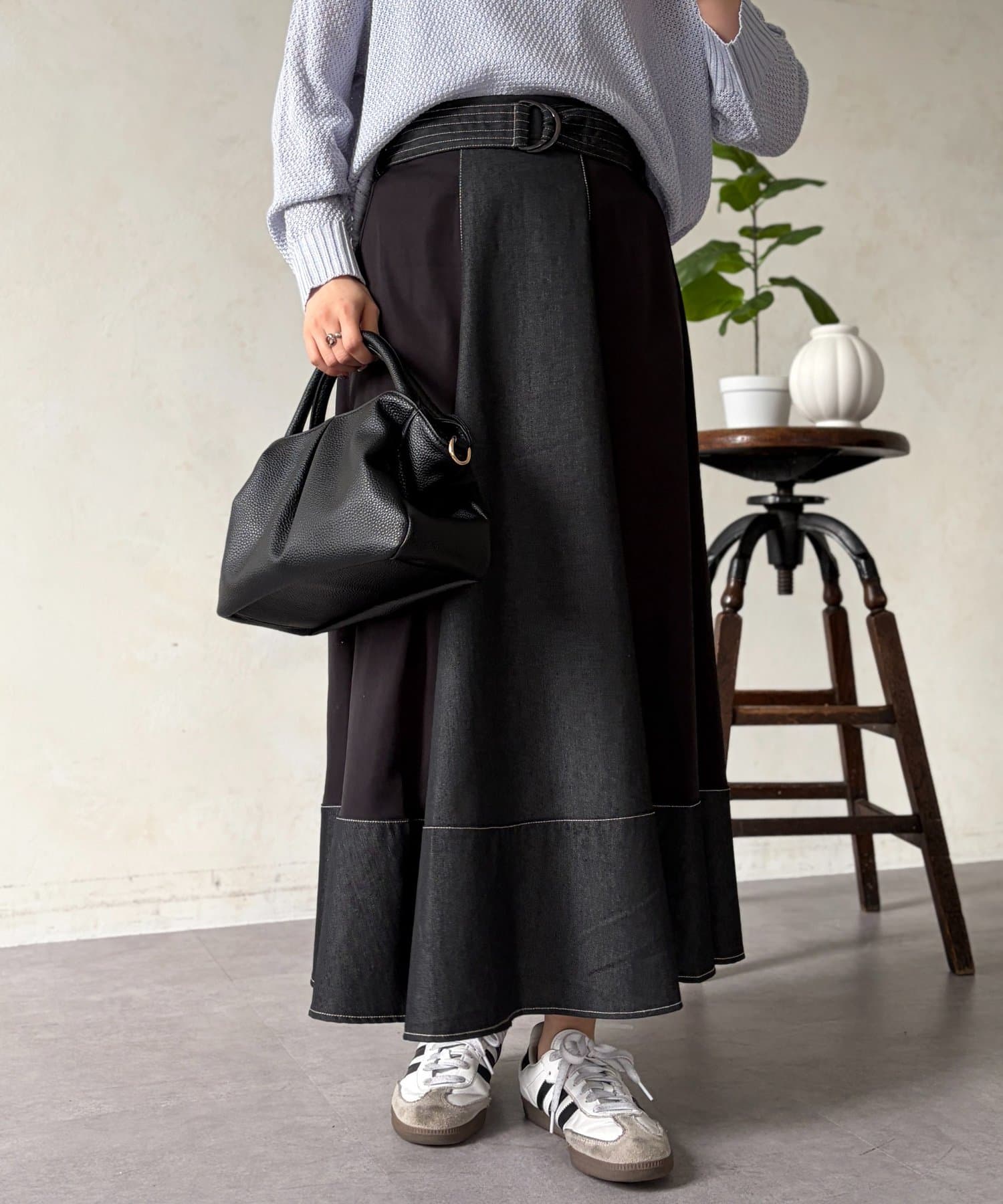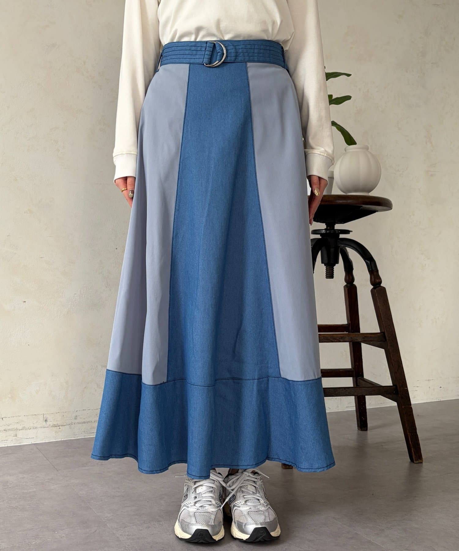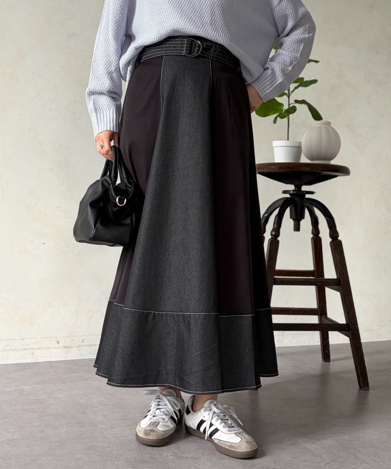 • Chez toi(シェトワ) デニム切替フレアスカート