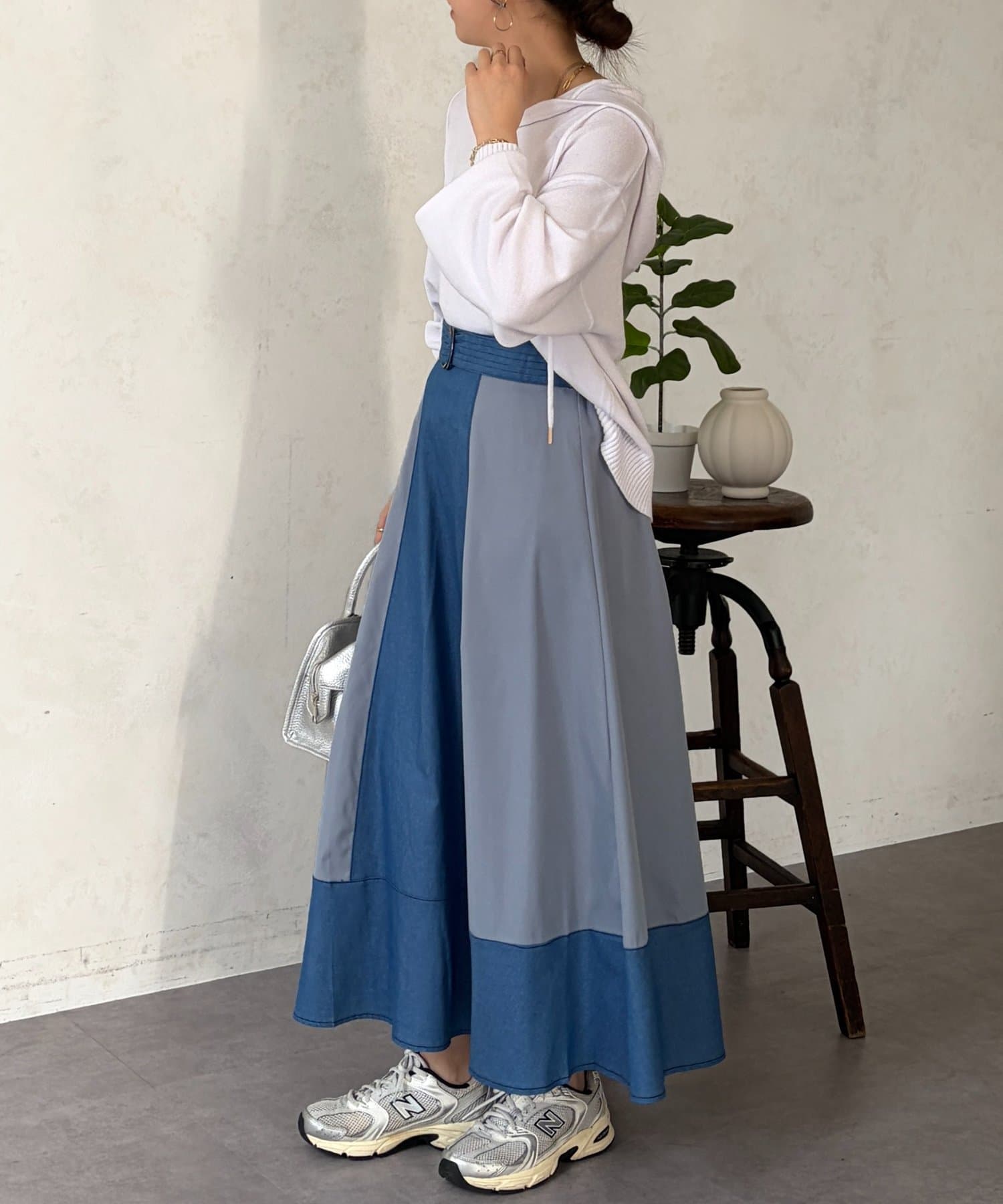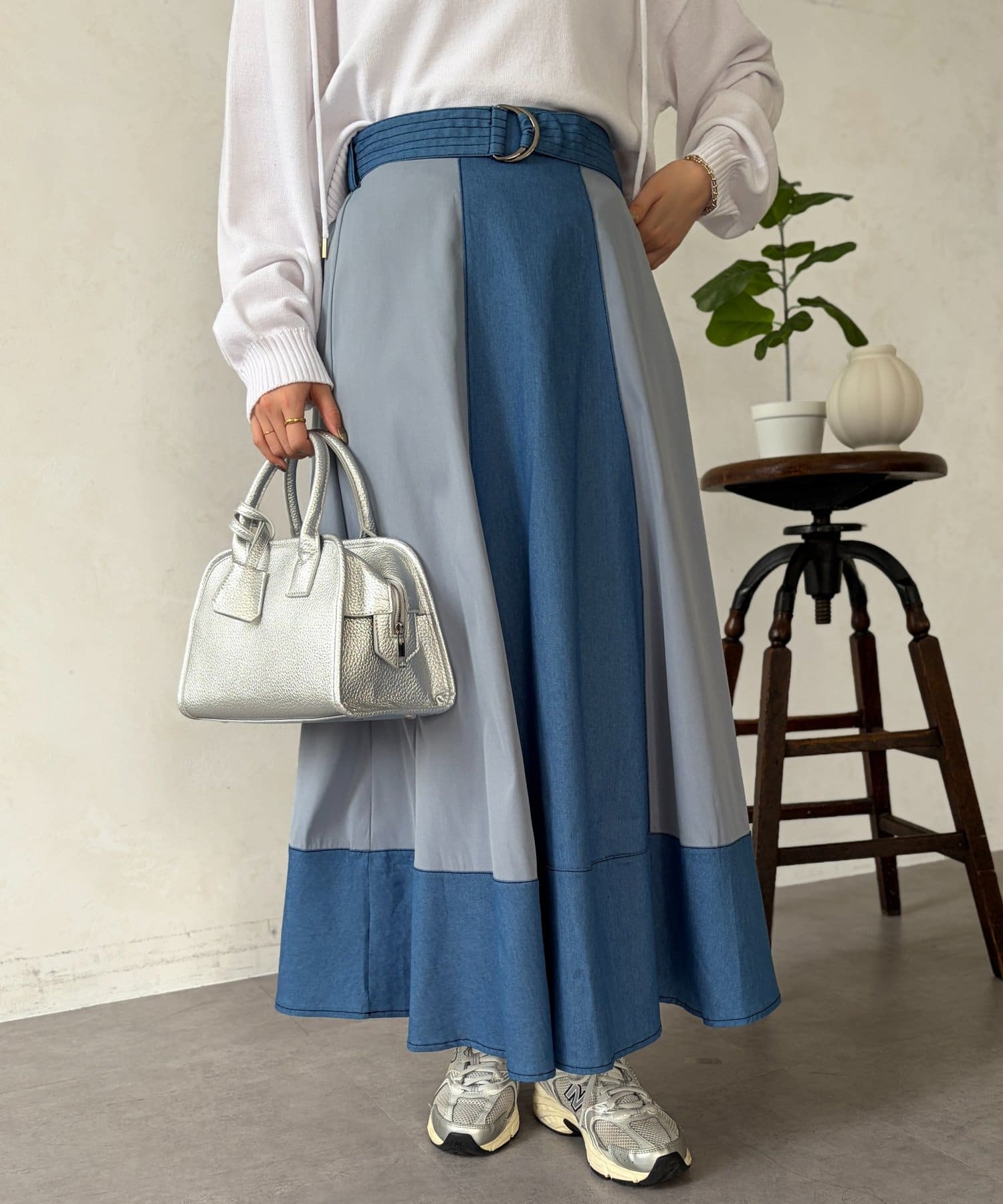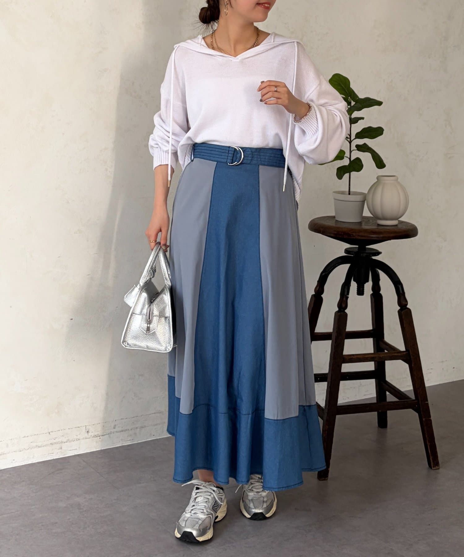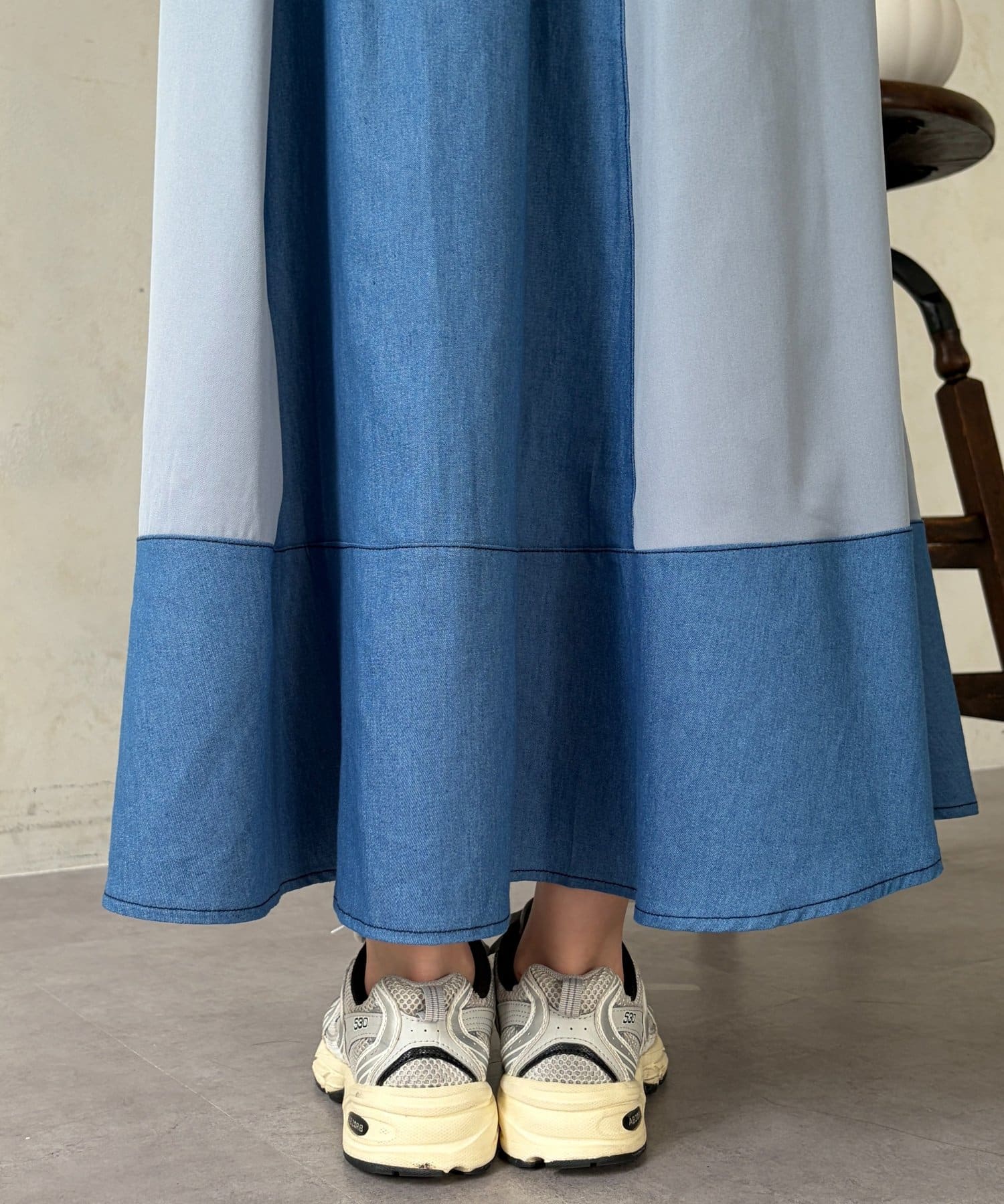 • Chez toi(シェトワ) デニム切替フレアスカート