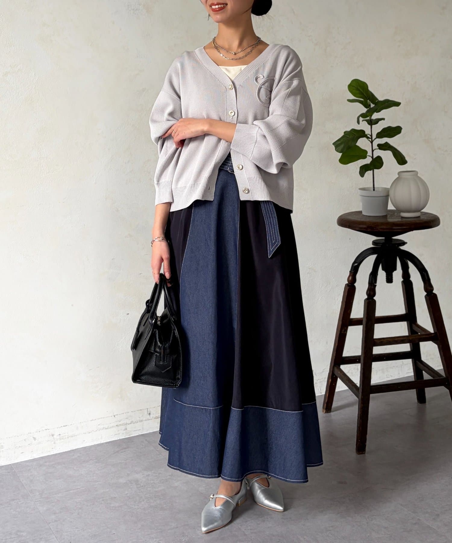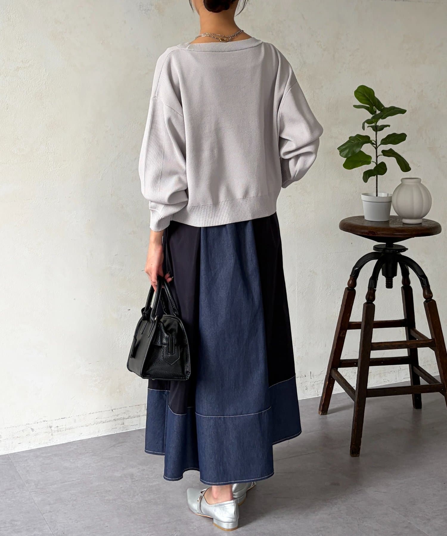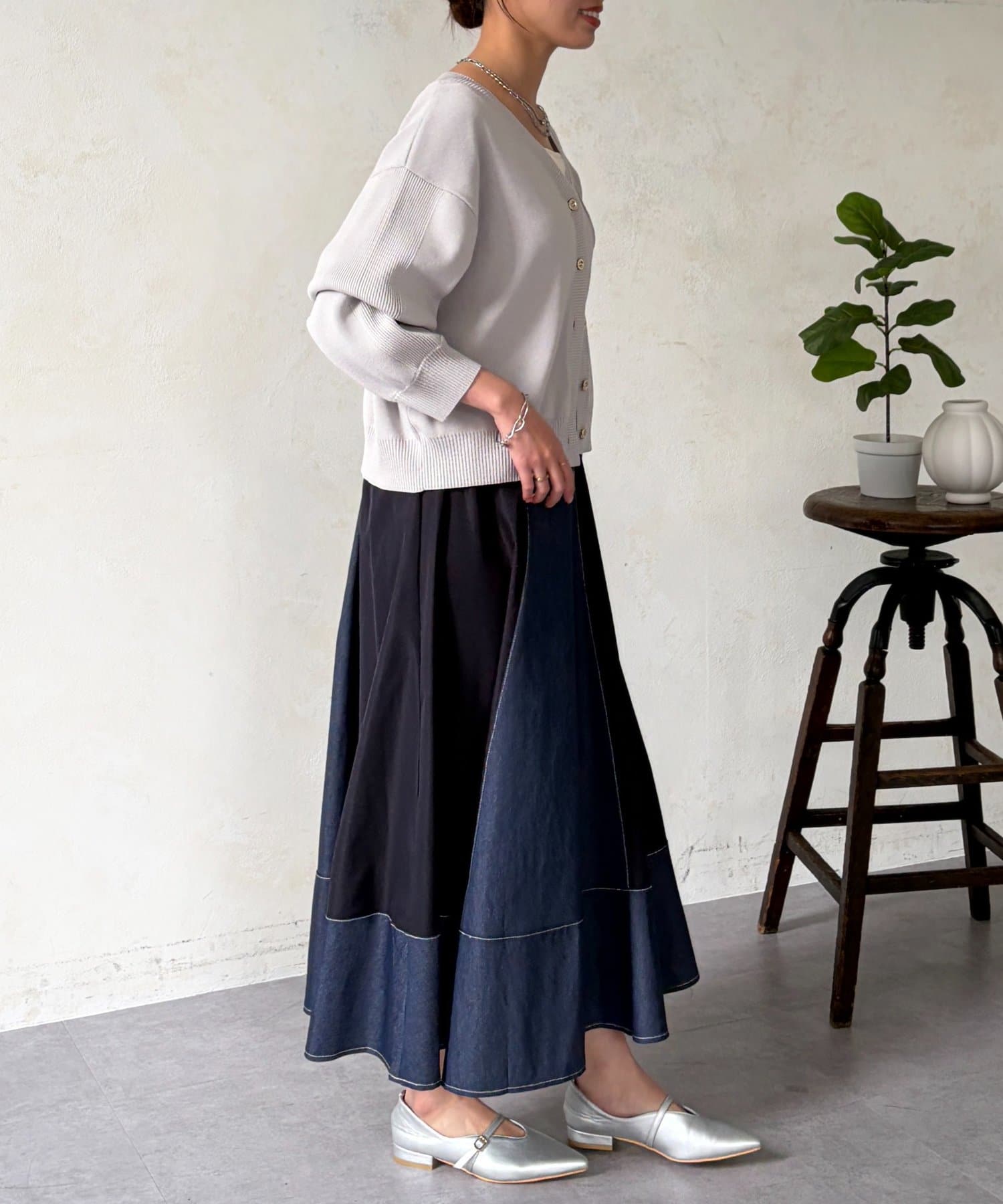 裾に向かって切替になっているので、程よくカジュアル、程よくフェミニンに見せていただける大人にぴったりのデザインです。