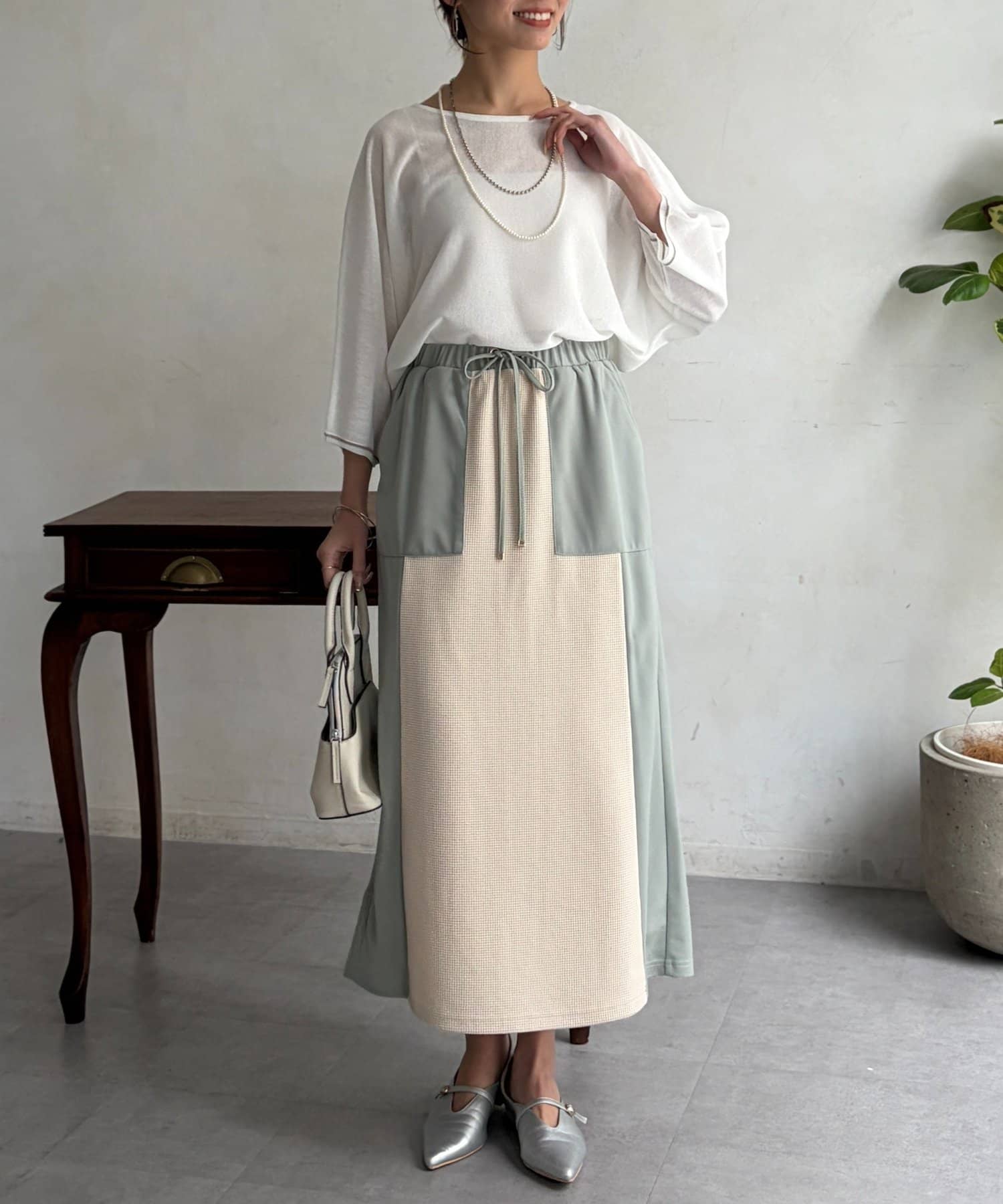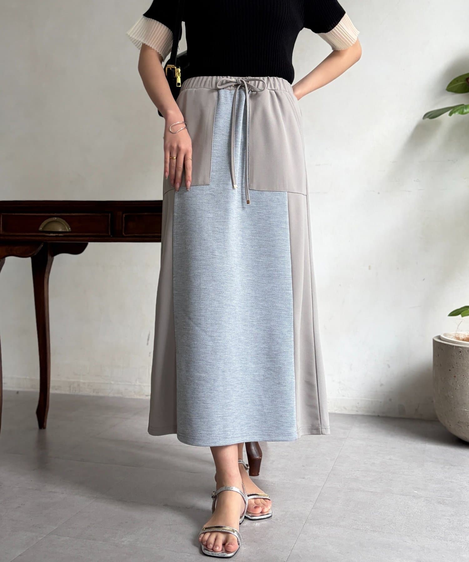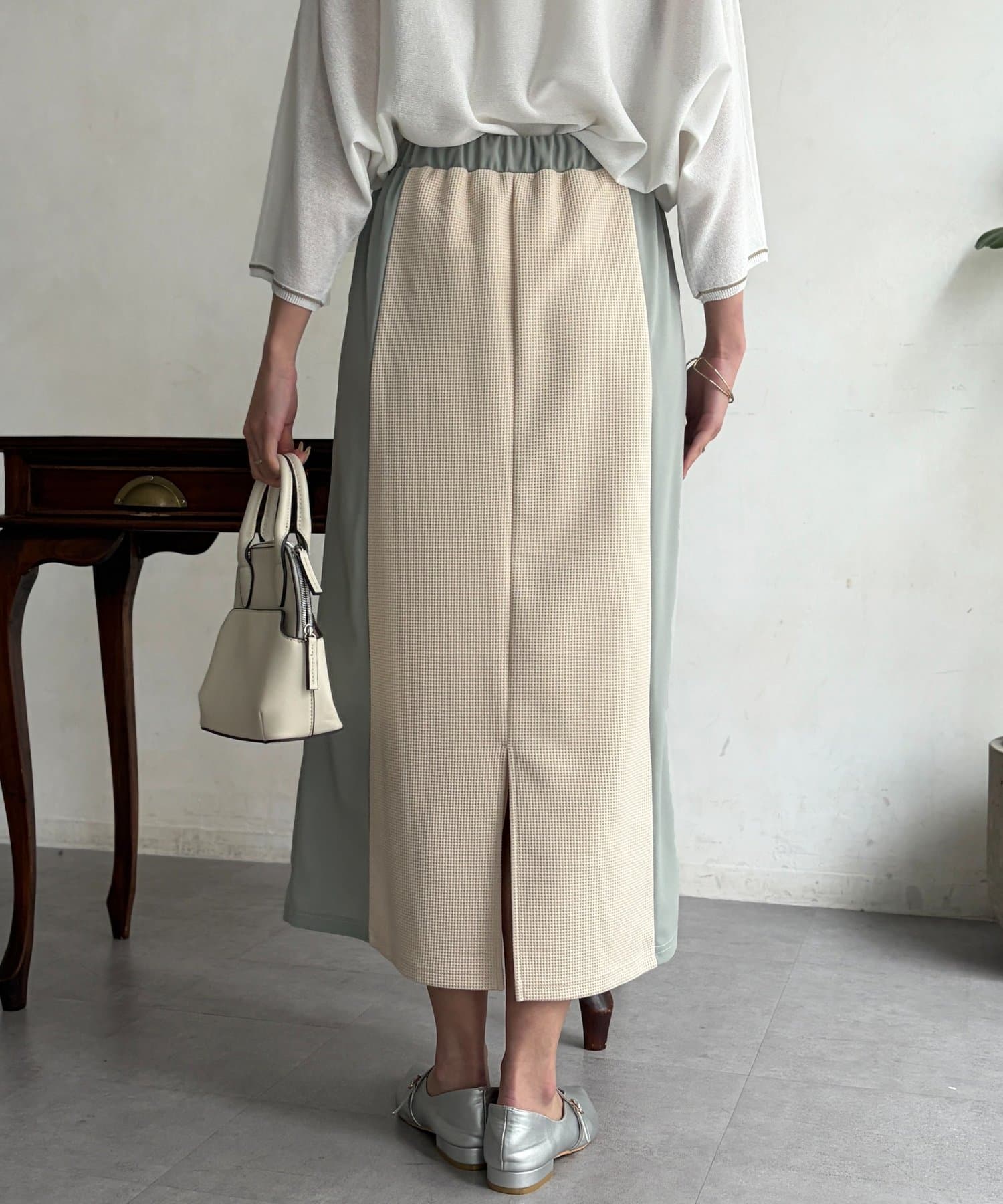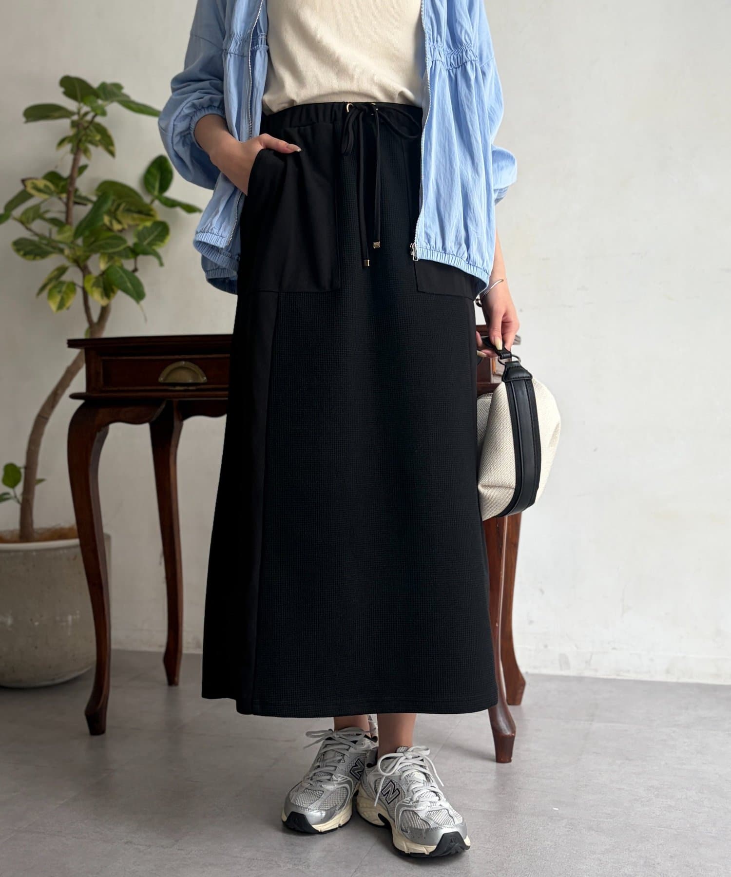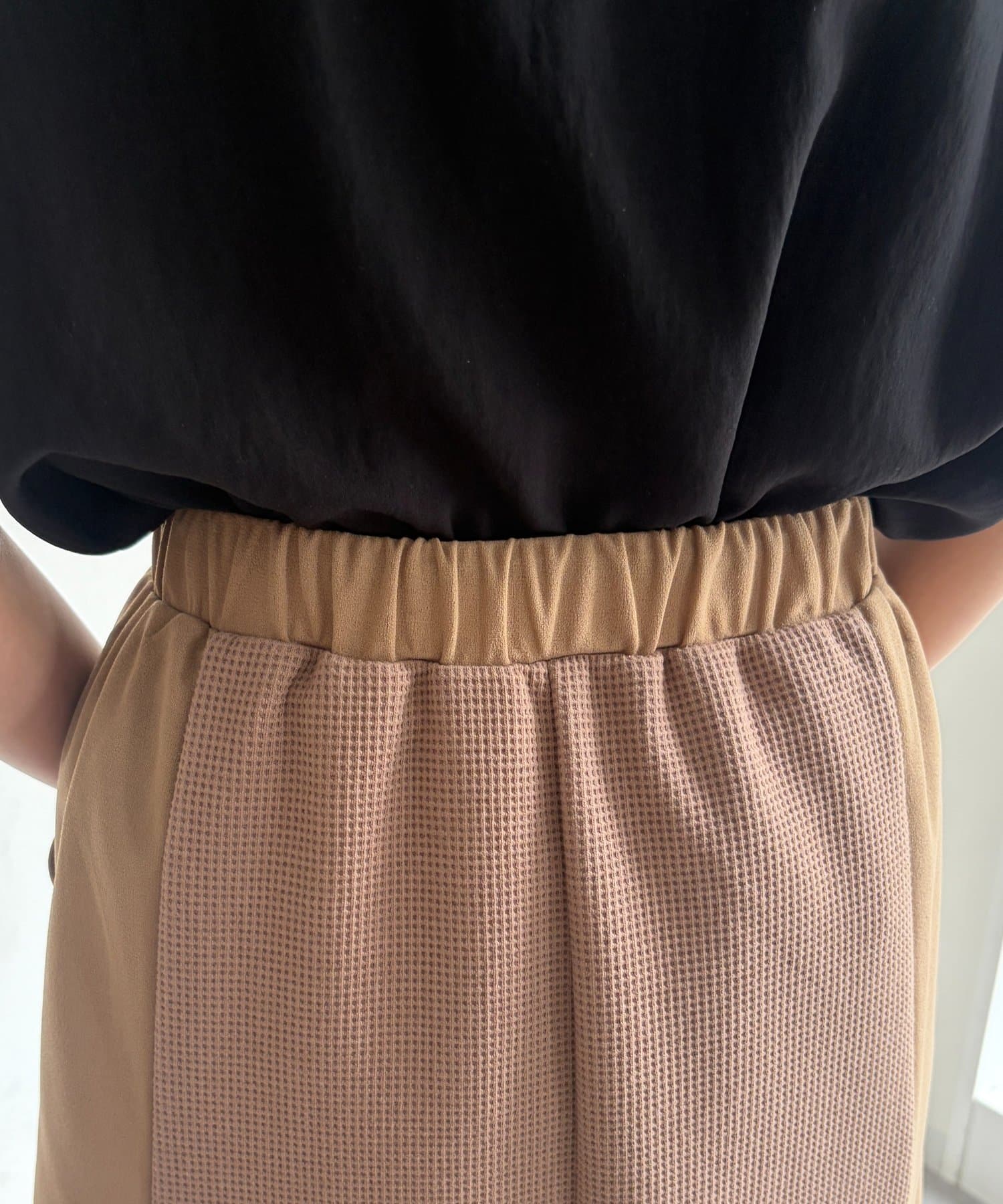 大人カジュアル派にピッタリ!!ワッフル生地の異素材ナロースカート