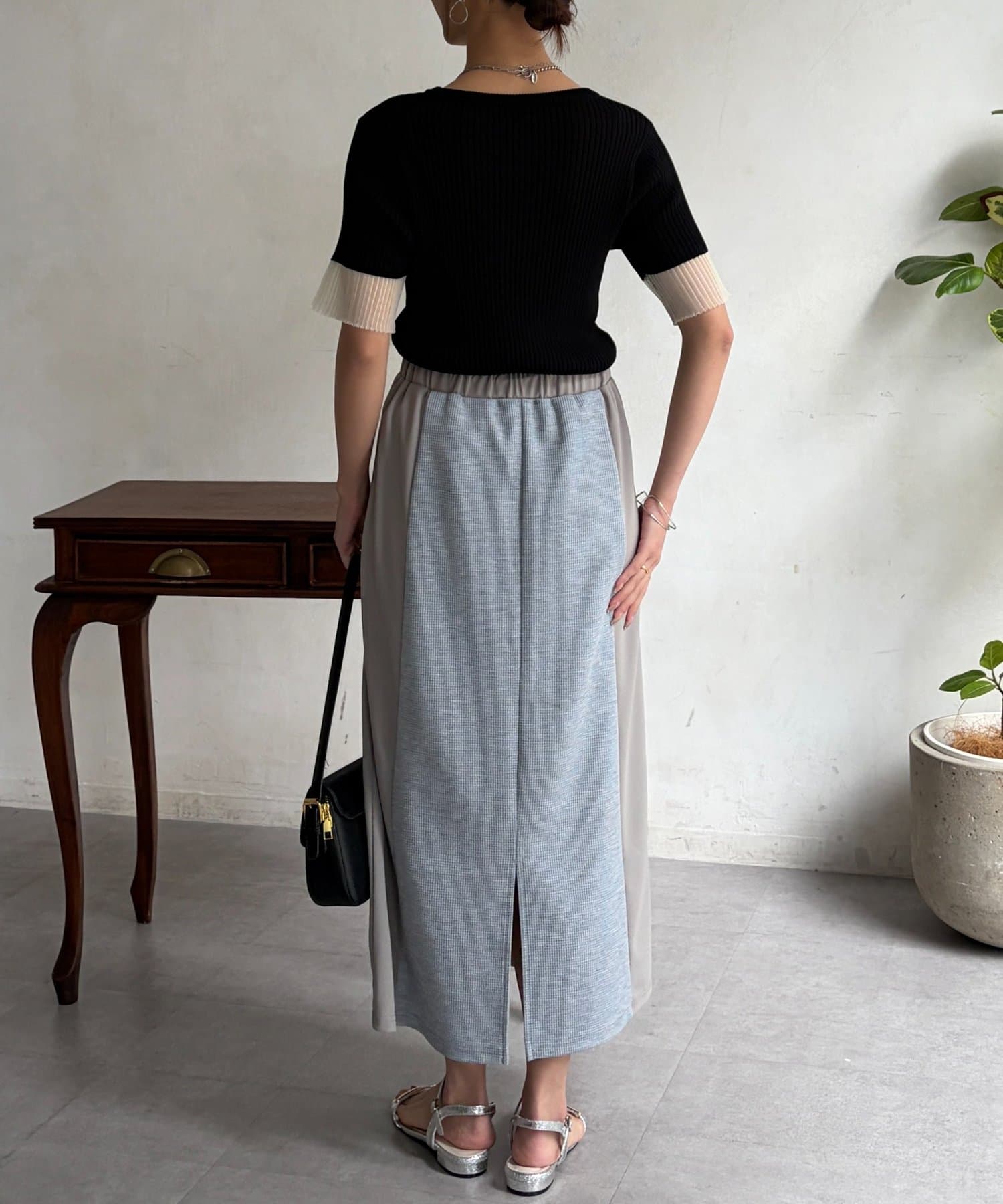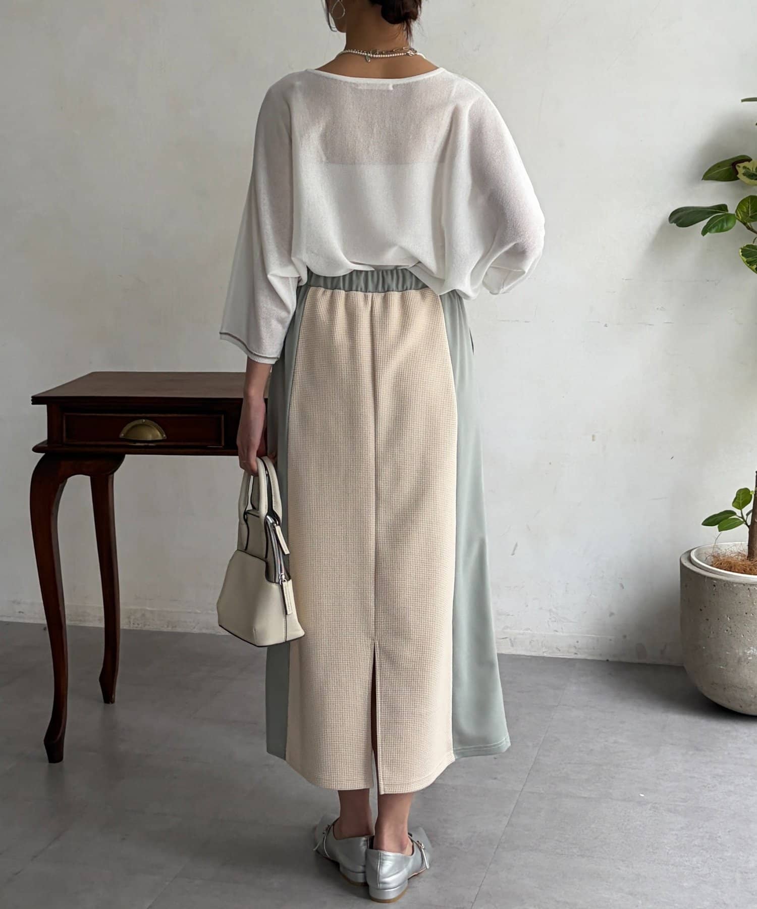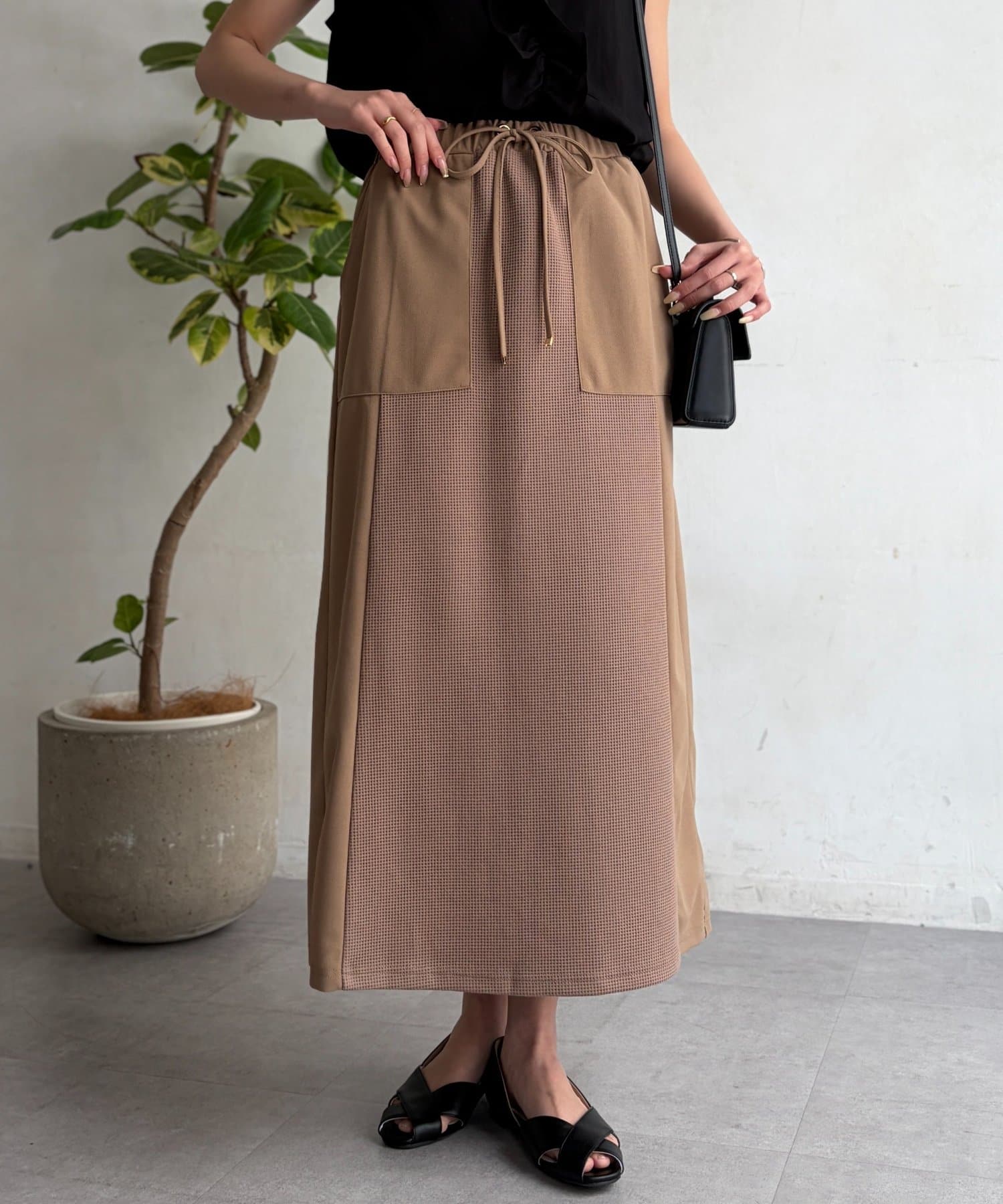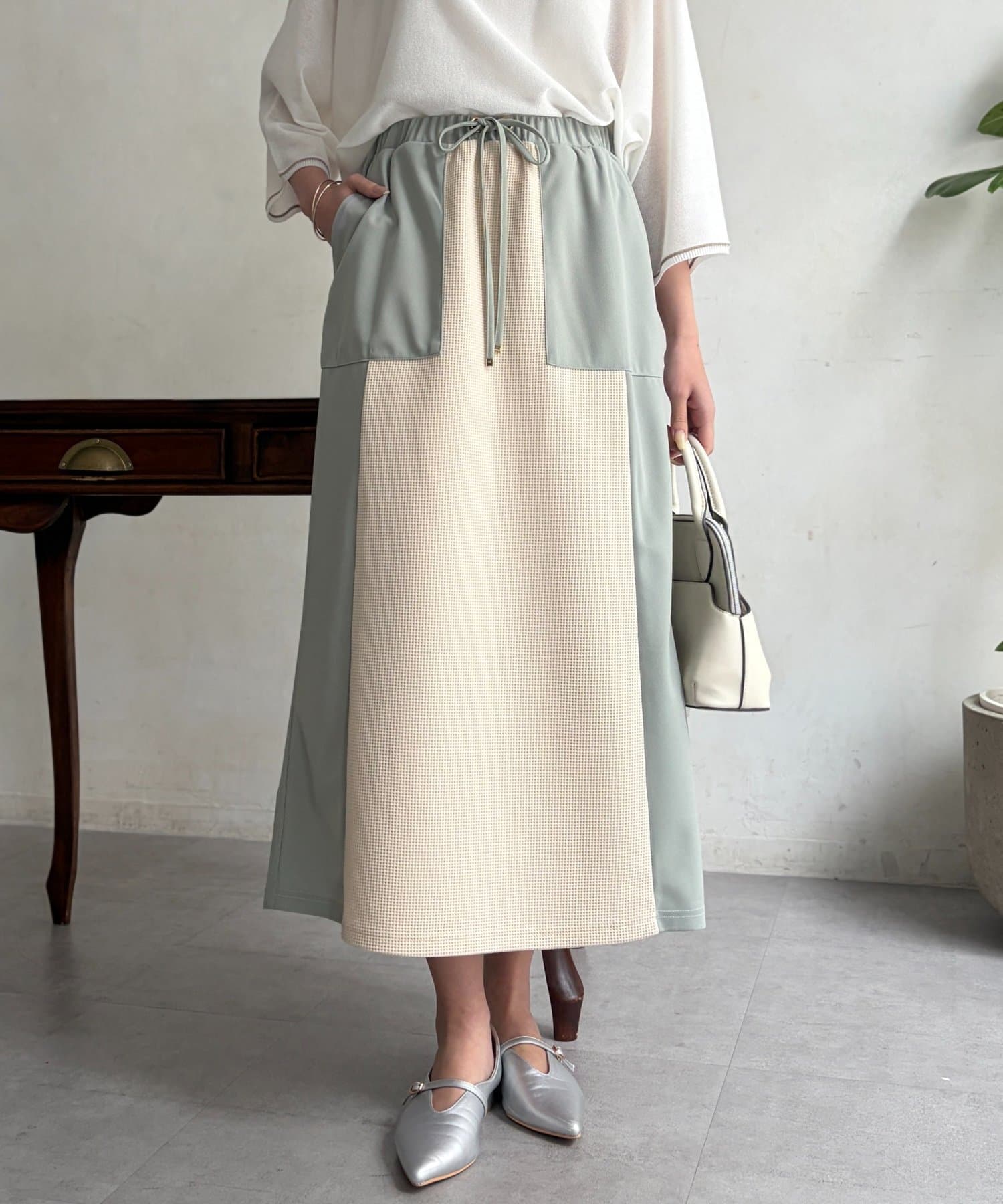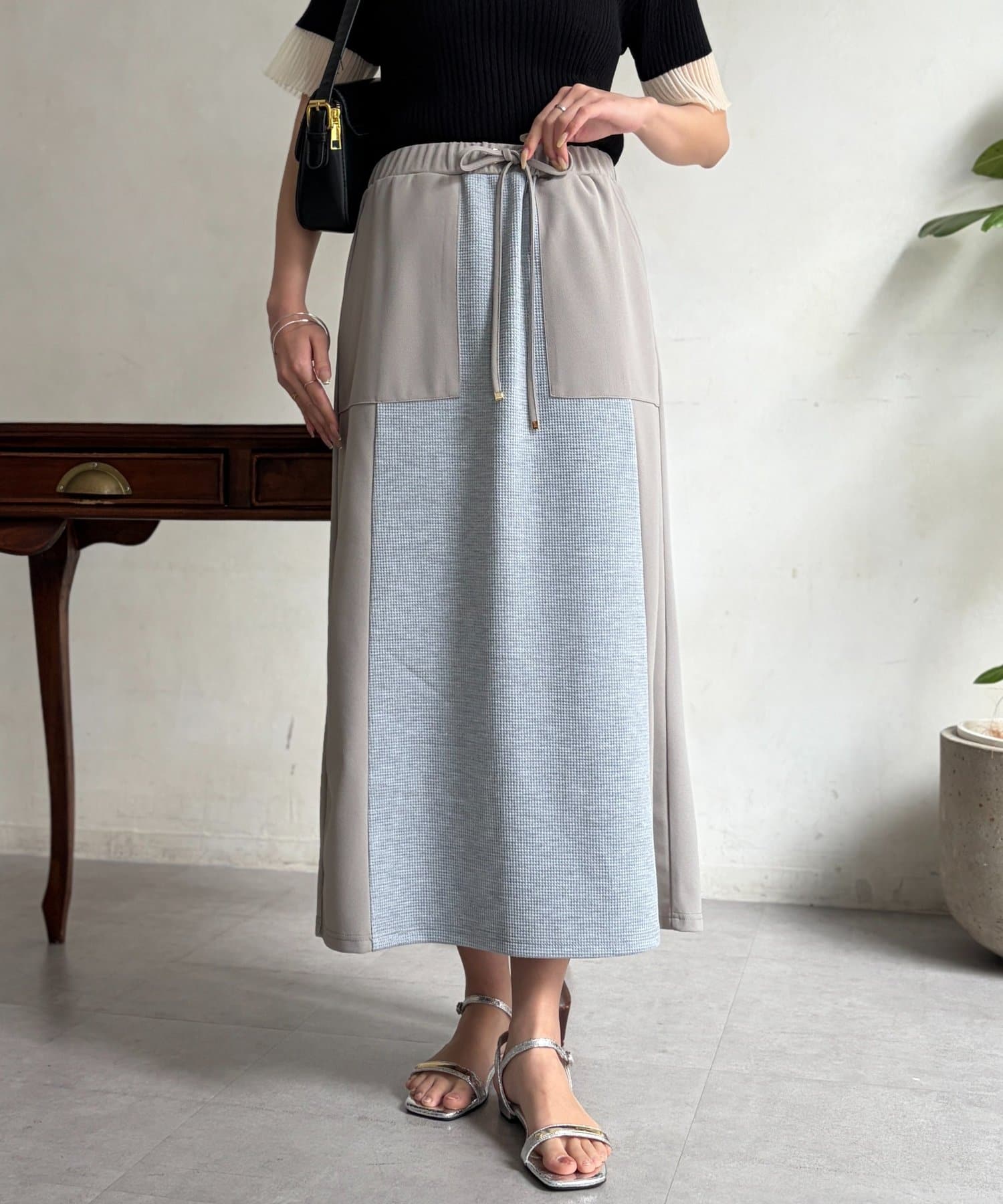 大人カジュアル派にピッタリ!!ワッフル生地の異素材ナロースカート