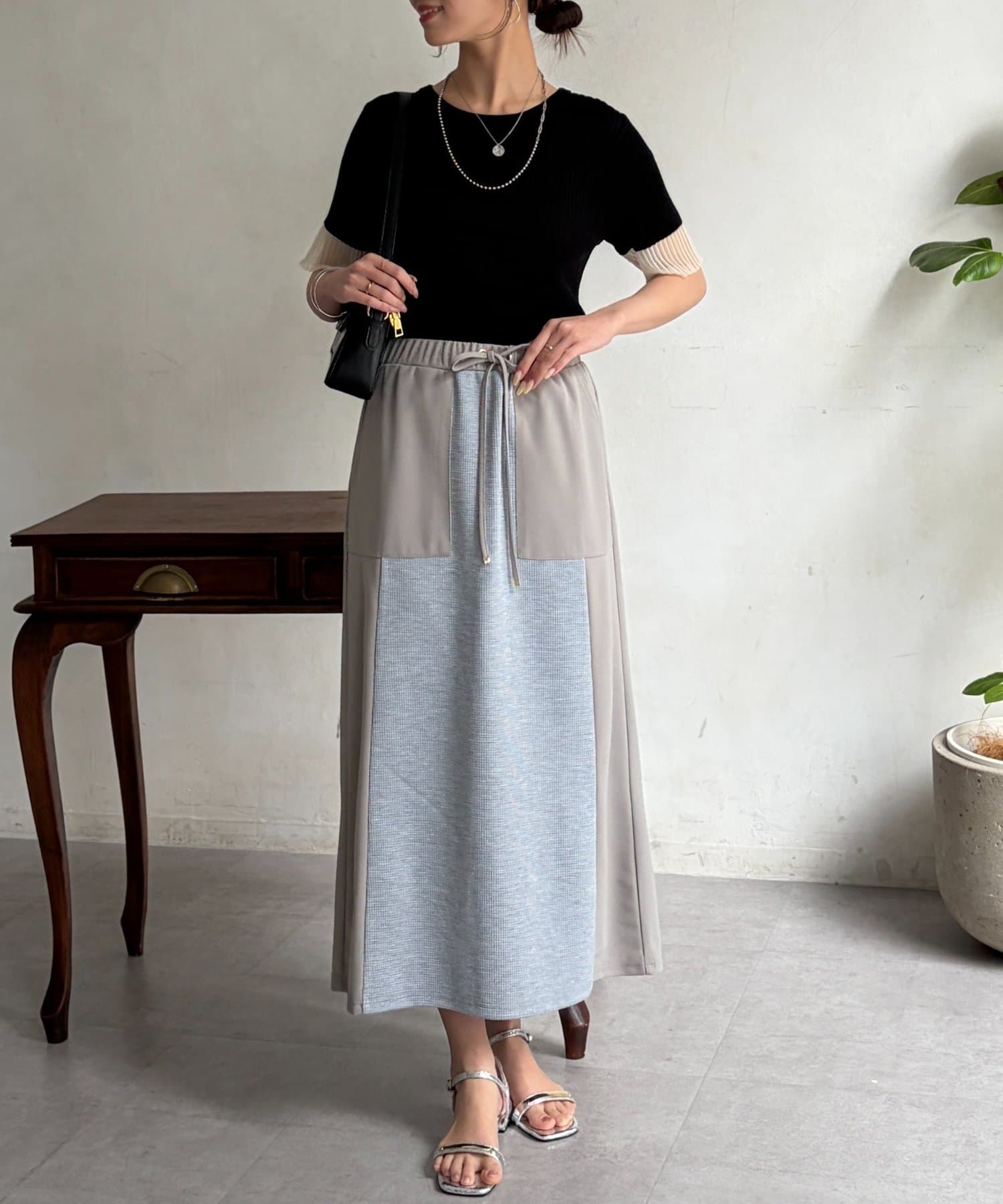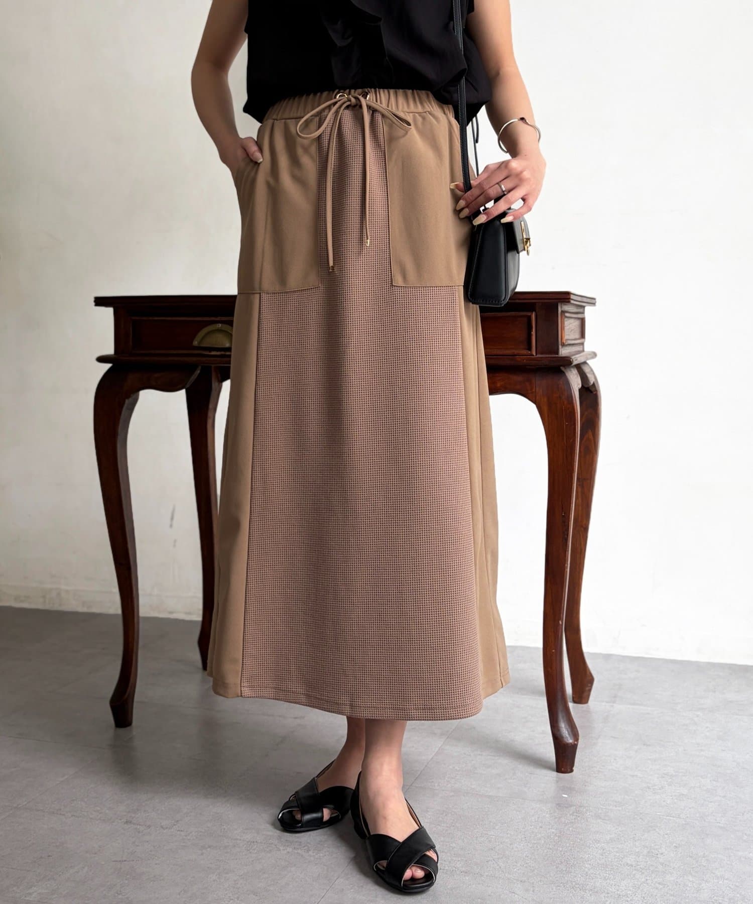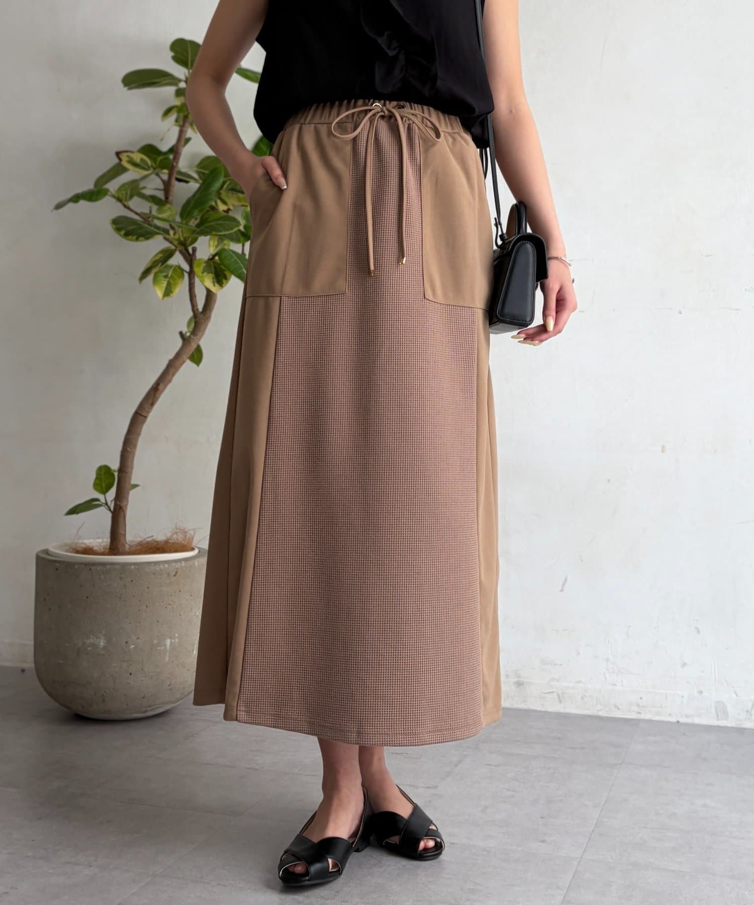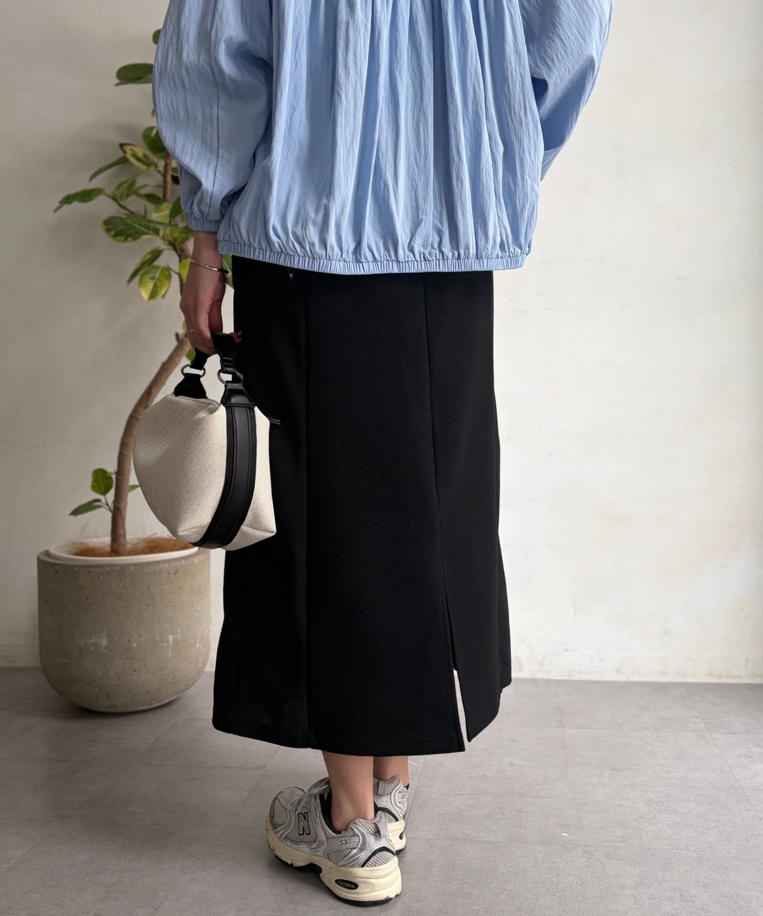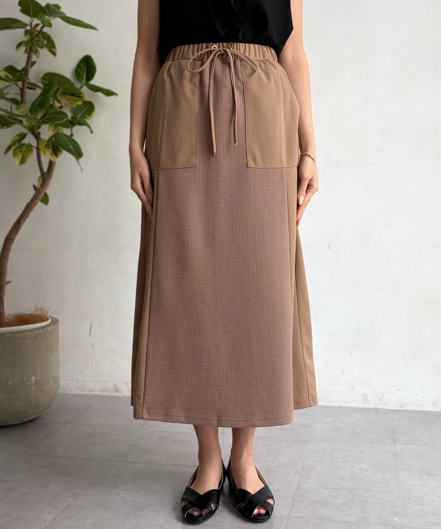 大人カジュアル派にピッタリ!!ワッフル生地の異素材ナロースカート
