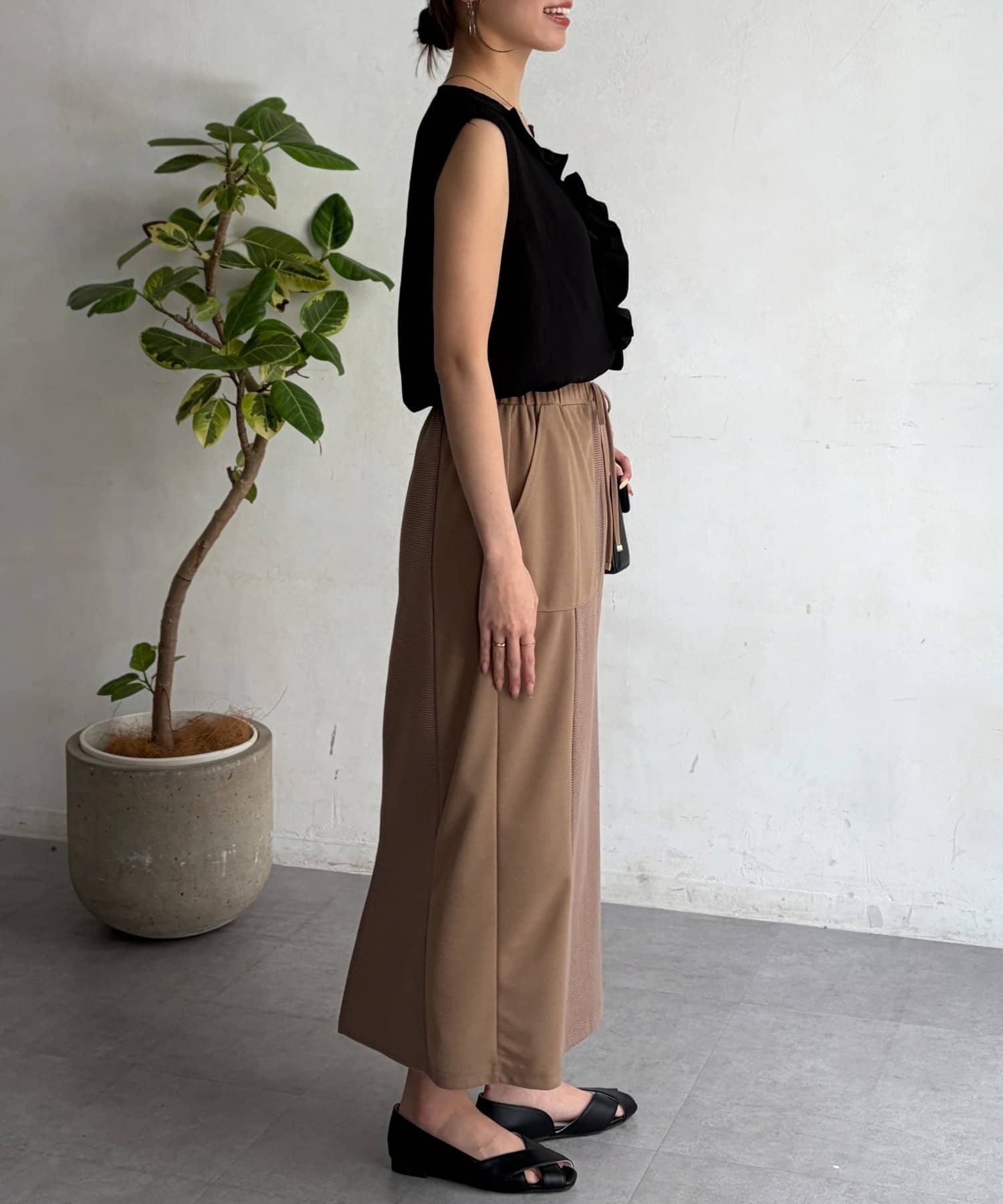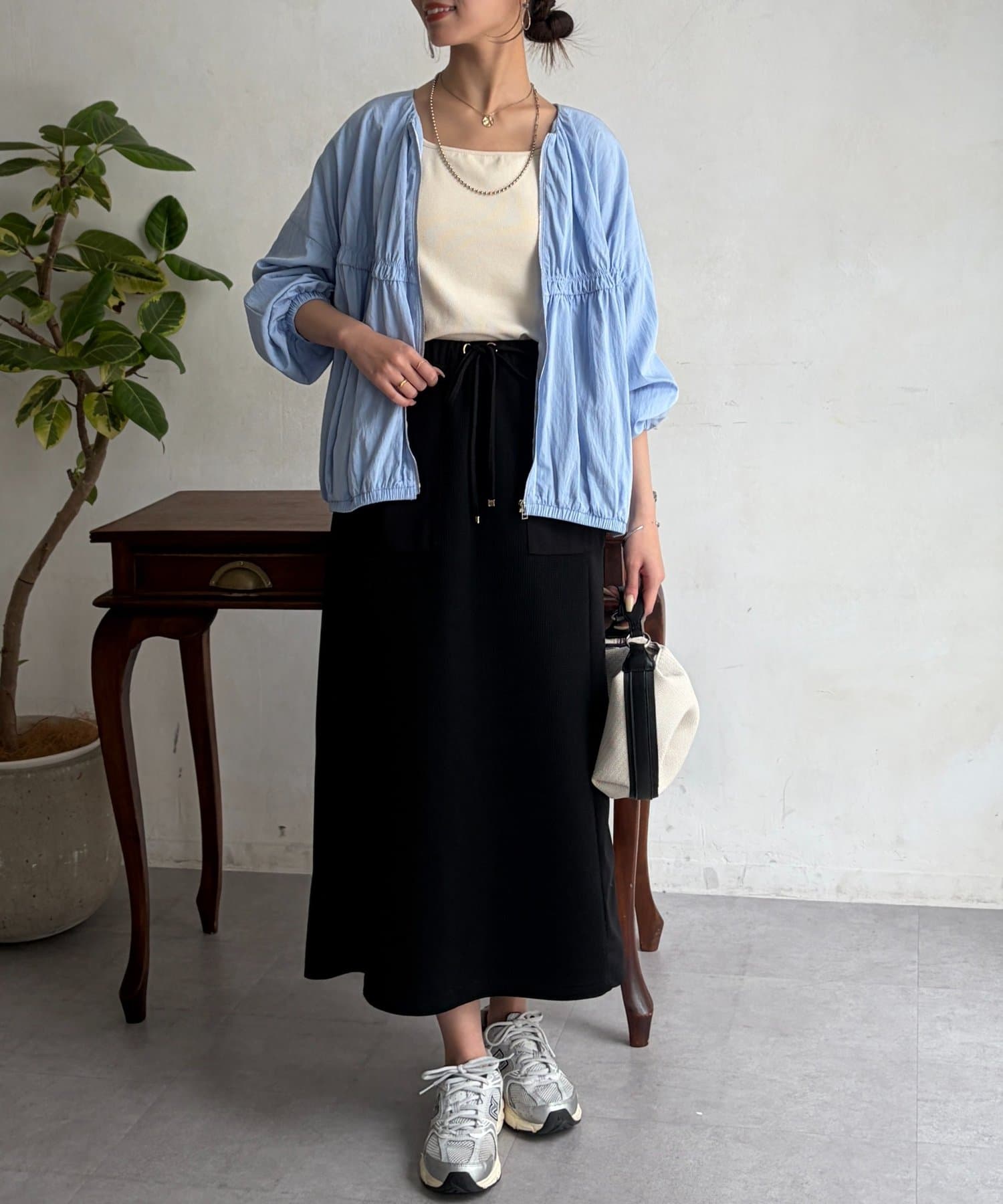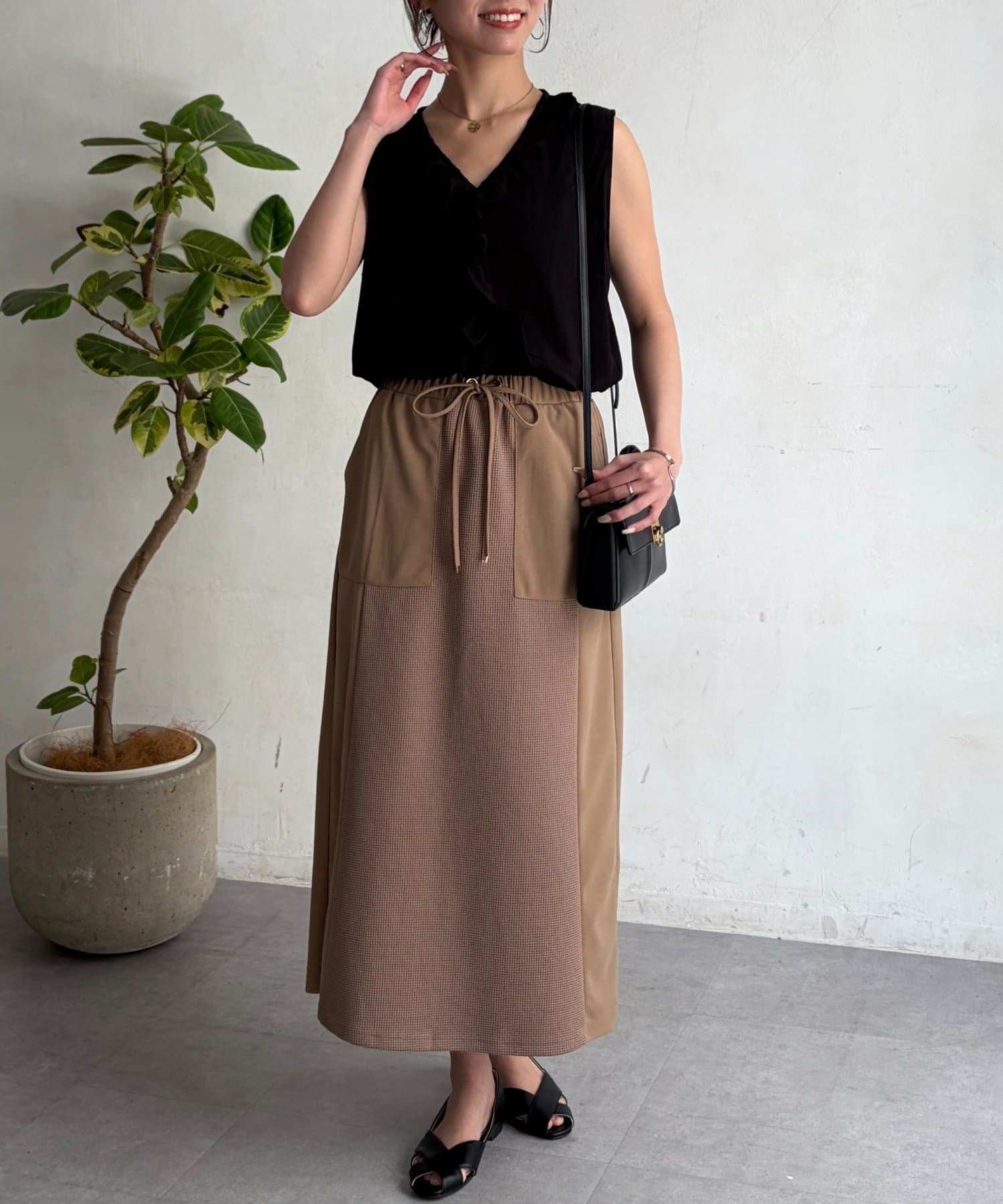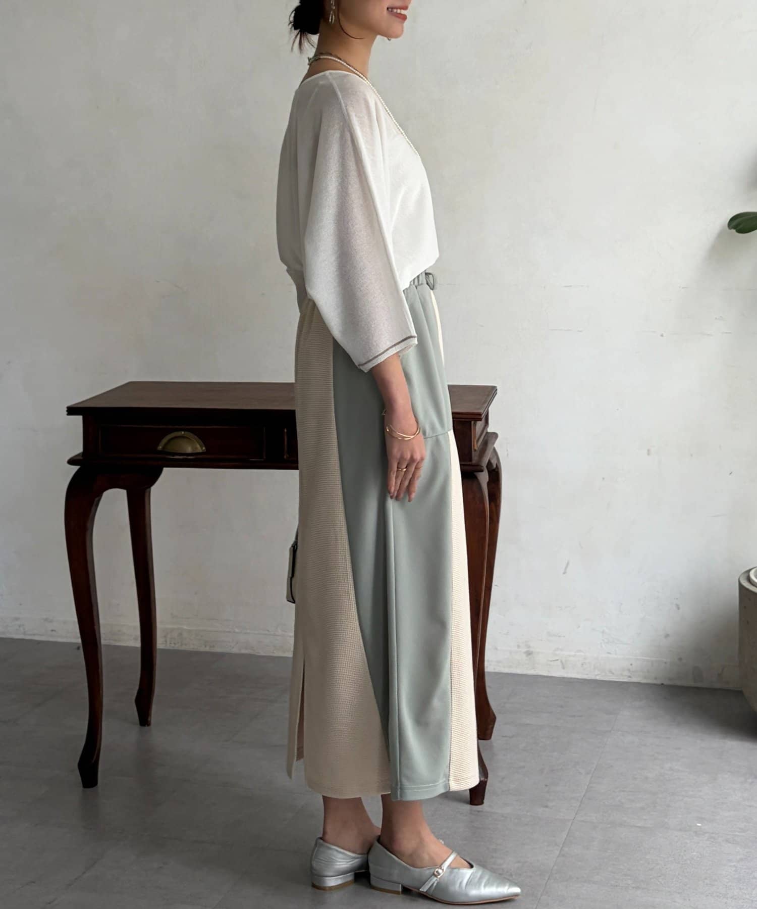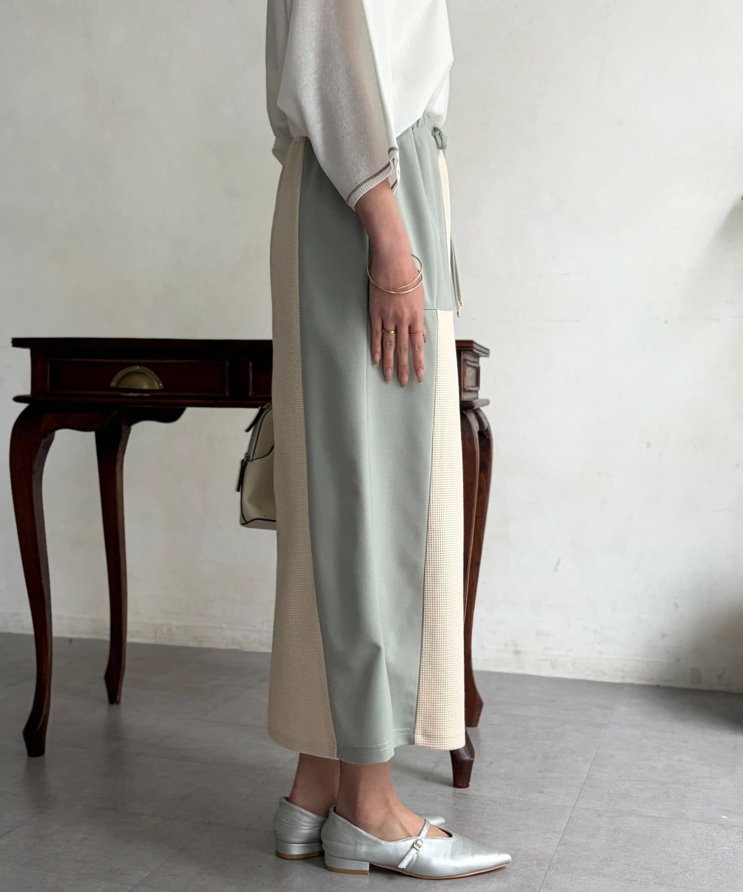 さらっとした異素材の生地を合わせカジュアルになりすぎない 大人のワッフルスカートです。