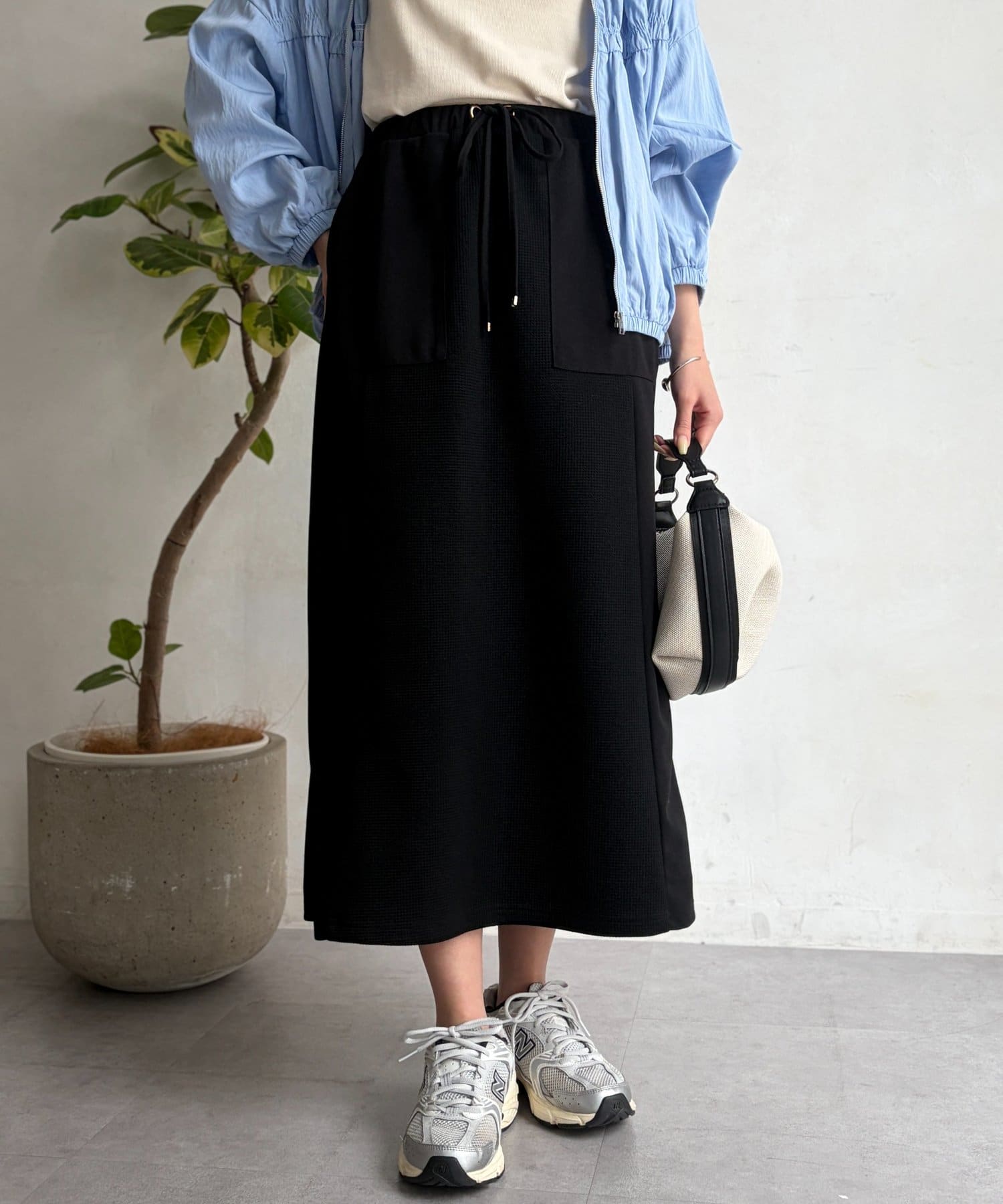 ロングシーズン着用可能な着回し抜群のワッフルナロースカート。