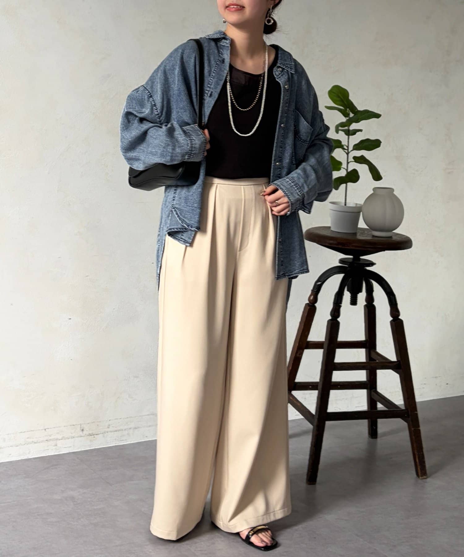 カジュアルになりすぎない上品な生地感で、オンオフ問わず活躍してくれること間違いなし。